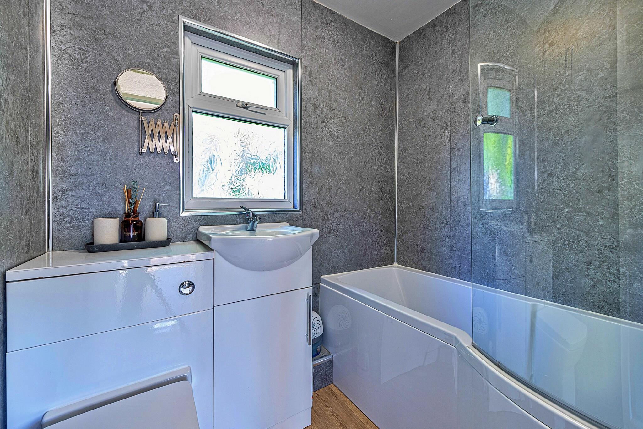 Flygt til de betagende landskaber i Snowdonia National Park og opdag en fortryllende feriehytte, perfekt designet til familier, der søger eventyr og afslapning. Dette idylliske tilflugtssted lover en uforglemmelig ferie, komplet med adgang til en række faciliteter i den charmerende Glan Gwna Country Holiday Park. Her kan du dase i solen ved den fælles udendørs swimmingpool, lade dine børn udforske det livlige legeområde eller kaste din line ved den maleriske fiskesø. Træd indenfor og bliv mødt af et varmt og indbydende interiør, hvor komfort møder stil. Den rummelige opholdsstue i åbent plan er badet i naturligt lys, udsmykket med smagfuld indretning, der inviterer dig til at slappe af. Det fuldt udstyrede køkken er klar til dine kulinariske eventyr, så du kan tilberede dejlige måltider til deling ved spisebordet, hvor der er plads til fem. For den ultimative madoplevelse, drag fordel af terrassen og nyd dine måltider al fresco, mens du nyder en fantastisk udsigt til solnedgangen. Hytten kan rumme op til fem gæster og har to charmerende soveværelser, der lover afslappende nætter. Det store soveværelse har en dobbeltseng, rigelig garderobeplads og et tv til afslappede aftener. Det andet soveværelse byder på en sjov køjeseng opsætning med en enkelt på toppen og en dobbelt under, hvilket gør det perfekt til familier med børn. Et moderne familiebadeværelse, komplet med bruser over badekar, toilet og håndvask, tilføjer til bekvemmeligheden. Glan Gwna Country Holiday Park ligger på en vidtstrakt 120 acres smukt anlagt grund, komplet med skovstier, fredfyldte søer og bugtende vandløb. Tag en afslappet spadseretur gennem parken for at fordybe dig i omgivelsernes ro, eller begiv dig videre for at udforske vidunderne i Anglesey, Snowdonia og Llyn-halvøen - alt sammen kun en kort køretur væk. Bemærk venligst poolens sæsonbestemte karakter, der er åben fra slutningen af ??maj til september, og tilgængeligheden af ??Wi-Fi er begrænset til baren/restaurantområdet på stedet. Du finder et let-at-administrere el-nøglekort-system under dit ophold, der holder dit energiforbrug effektivt, mens du nyder hjemmets komfort. Fisketilladelser kan købes i receptionen, og husk, engangsgrill er ikke tilladt i parken for at bevare det uberørte miljø.