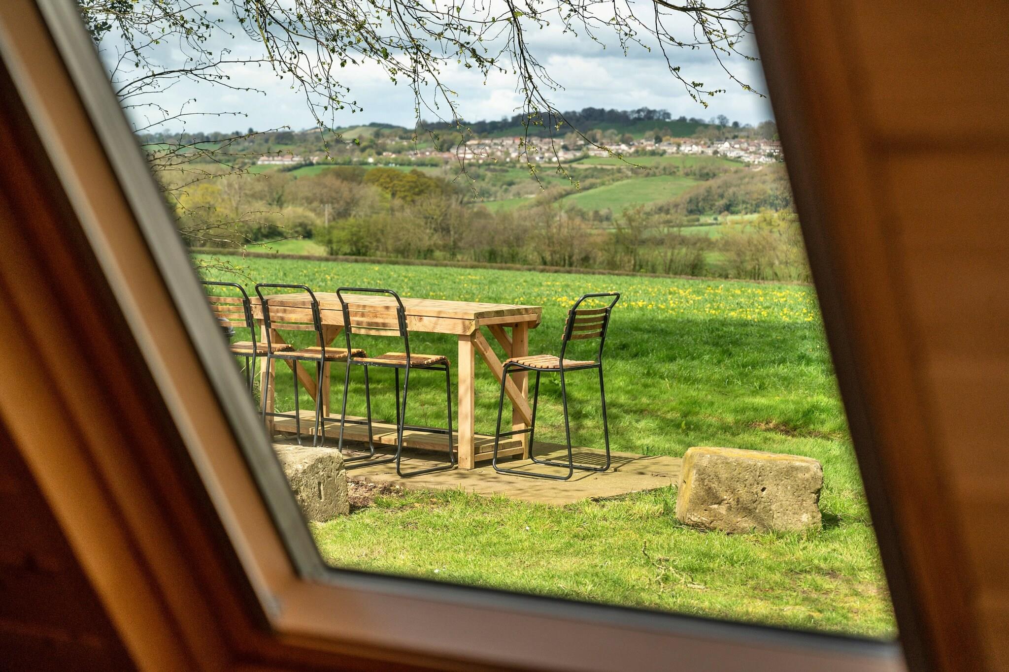 Beliggende midt i frodige grønne områder inviterer denne unikke glamping-oplevelse dig til at fordybe dig i naturen, mens du nyder hjemmets komfort. Omgivet af en betagende udsigt over dalen, kan du nyde din morgenkaffe eller slappe af med et aftenglas vin på den private terrasse, alt imens du trækker vejret i den friske landlige luft. Det fortryllende landskab, præget af lyden af ??raslende blade og kvidrende fugle, skaber et roligt tilflugtssted perfekt for dem, der søger et fredeligt tilflugtssted. Denne opsætning kan rumme op til fire gæster fordelt på to gennemtænkt designede sovepladser og er ideel til familier eller par, der er ivrige efter at udforske det fortryllende landskab i Somerset. Blot en kort køretur væk lokker de historiske byer Bath og Wells med deres rige arv, mens de charmerende kystbyer tilbyder en dejlig flugt til kysten. Med Fosse Way i nærheden er eventyr lige ved hånden, uanset om du leder efter fængslende vartegn eller panoramiske vandrestier, der snor sig gennem det maleriske landskab. Indeni har hovedpuden et hyggeligt soveværelse med dobbeltseng, en lille stue og et tekøkken udstyret til enkel tilberedning af måltider, hvilket sikrer, at dit ophold er både behageligt og bekvemt. Den ekstra dobbelte sovekabine, beliggende kun en kort gåtur væk, tilbyder en følelse af uafhængighed for eventyrlystne børn eller et privat tilflugtssted for voksne. Sæsonbestemte opgraderinger forbedrer den fælles oplevelse med et vejrbestandigt spiseområde, der giver dig mulighed for at forbinde dig med dine kære, mens du nyder de fantastiske naturlige omgivelser. Her er hvert øjeblik en invitation til at slappe af, udforske og værdsætte skønheden i det fri.