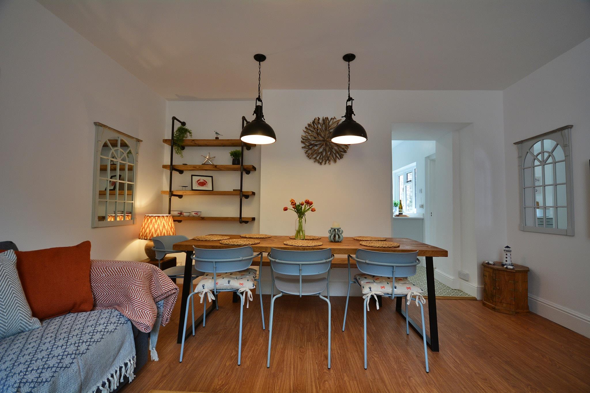 Beliggende i hjertet af Cawsand, er dette smukke georgianske hjem kun en kort gåtur fra sandstrandene og det pulserende landsbyliv. Den indhegnede have byder på en solrig oase til udendørs spisning og afslapning efter en dag ved havet. Indvendigt kombinerer ejendommen historisk charme med moderne luksus, og byder på fire rummelige soveværelser - to superkonger (en lynlås og link), en konge, en dobbeltseng og et dobbeltkøjeværelse - perfekt til at rumme op til 8 gæster. Stueetagen er ideel til at underholde, med en lys, indbydende stue/spisestue og et nyrenoveret køkken udstyret med alt det nødvendige, herunder en integreret kogeplade, ovn, køleskab, fryser, opvaskemaskine og vaskemaskine. Et praktisk toilet i underetagen og adgang til gårdhave og have gør det til et praktisk og stilfuldt rum for familier og venner. Ovenpå finder du tre soveværelser, inklusive en luksuriøs superkonge med ensuite, en anden superkonge (kan konverteres til to enkeltsenge efter anmodning) og et dobbeltværelse. Familiebadeværelset har badekar, hovedbruser, håndvask, håndklædetørrer og toilet, hvilket giver komfort og bekvemmelighed for alle gæster. Det dobbelte køjeværelse tilbyder et sjovt tilflugtssted for børn eller teenagere. Ejendommens gennemtænkte layout og charmerende tidstypiske træk skaber en hyggelig, men sofistikeret atmosfære, der fanger essensen af ??livet ved havet. Denne hytte er perfekt placeret på Armada Road, kun et par minutters gang fra Cawsands strande, butikker, caféer og pubber. Landsbyens parkeringsplads er i nærheden, hvilket gør det nemt at udforske den fantastiske kyst og nyde lokale lækkerier. Ejendommen er kæledyrsvenlig og byder velopdragne hunde velkommen mod et lille ekstra gebyr, så dine lodne venner kan deltage i hygge ved havet. Med Wi-Fi, frisk linned og en dejlig have til udendørsliv tilbyder dette kysttilflugtssted den perfekte base for en mindeværdig familie- eller vennersferie ved havet.