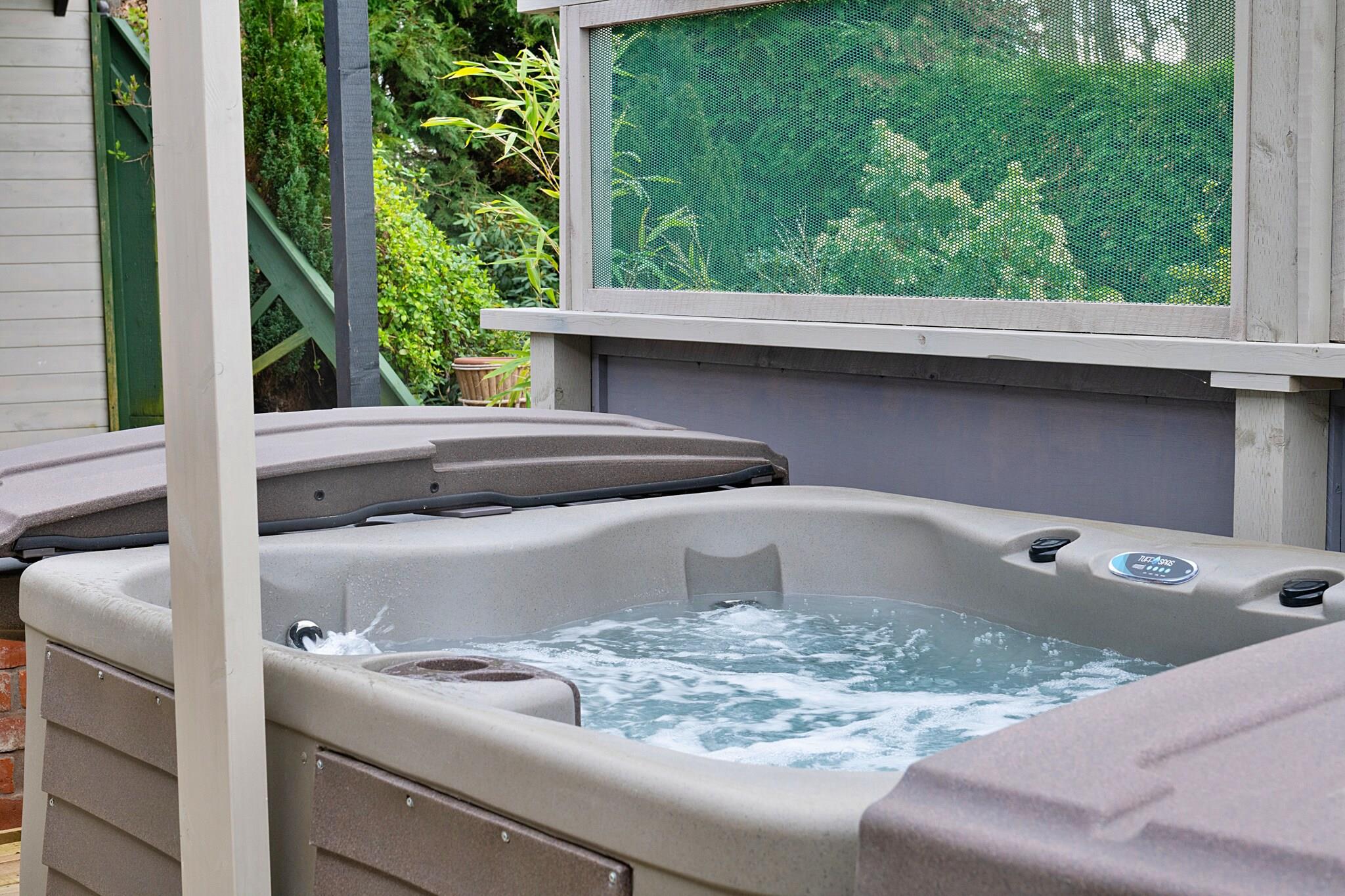 Velkommen til Garden Lodge, dit ultimative parferie i hjertet af Shropshire! Beliggende på den fredfyldte grund af ejernes hjem, kombinerer denne charmerende lodge moderne komfort med et strejf af rustik varme. Når du træder ind, bliver du mødt af et indbydende køkken og opholdsstue i åbent plan, prydet med hyggelige træpaneler og en storslået pejs, perfekt til romantiske aftener. Det fuldt udstyrede køkken sikrer, at I kan tilberede dejlige måltider, mens I nyder kvalitetstid sammen, og et praktisk bryggers bidrager til lodgens praktiske funktionalitet. Træd udenfor på den rummelige træterrasse, hvor dit private spabad venter, omgivet af frodige grønne områder. Forestil dig at ligge i blød under stjernerne med den beroligende lyd fra et nærliggende vandfald, der forstærker den rolige atmosfære. Terrassen er også et ideelt sted til udendørs spisning, uanset om du griller på grillen eller nyder morgenkaffe, når solen står op. Hver detalje i Garden Lodge er omhyggeligt udformet for at løfte din oplevelse, hvilket gør det til et fristed for afslapning og romantik. Beliggende kun 2,2 km fra Craven Arms og 11 km fra Church Stretton, er denne lodge perfekt beliggende for at udforske det betagende Shropshire-landskab. Oplev hyggelige lokale butikker, charmerende caféer og historiske vartegn såsom Stokesay Castle og Shropshire Hills Discovery Centre. Med privat off-road parkering og en elbil-oplader til elbiler er Garden Lodge klar til at være dit smarte tilflugtssted, hvor du kan genoprette forbindelsen, genoplade og skabe varige minder sammen.