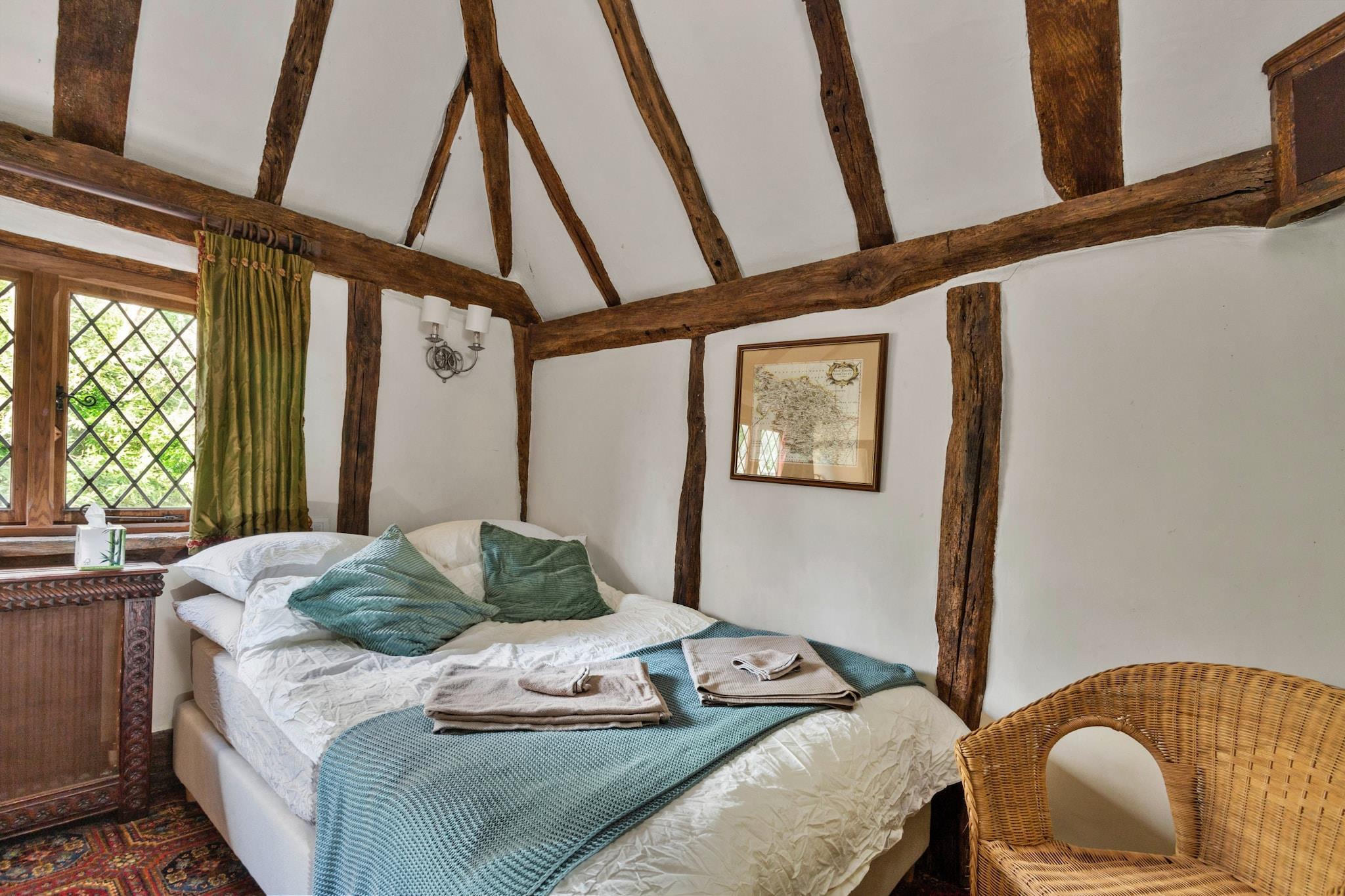 Denne karakterfulde hytte tilbyder et charmerende ophold med tre soveværelser med dobbeltsenge, komfortabelt med plads til op til seks gæster. Beliggende i et afsondret landskab, giver det et fredeligt tilflugtssted med et væld af moderne bekvemmeligheder. Ejendommen er ikke kæledyrsvenlig, hvilket sikrer en rolig atmosfære for alle gæster. Opholdsområdet har en hyggelig åben pejs (tilgængelig mellem oktober og april), og den rummelige grund omfatter et spabad (tilgængelig fra 18. september 2023) og en fælles tennisbane, perfekt til afslapning og rekreation. Sommerhuset inkluderer også parkering til to biler og en sikker gated indgang, der sikrer bekvemmelighed og privatliv. Beliggende i det maleriske landskab i Crawley Down, er hytten ideelt beliggende nær en række attraktioner. Gæster kan nyde den naturlige skønhed i High Weald Area of ??Outstanding Natural Beauty, med adskillige vandrestier, der starter fra hoveddøren. Landsbyen Crawley Down, kun en kort gåtur væk, byder på et udvalg af pubber, restauranter og butikker. I nærheden kan besøgende udforske National Trust-ejendomme såsom Standen, Sheffield Park og Nymans Gardens, eller tage en tur til Ashdown Forest, der er berømt for sin tilknytning til Winnie the Pooh. Ejendommen er også inden for rækkevidde af Gatwick Lufthavn og flere togstationer, hvilket gør den tilgængelig for rejsende. Hytten har et fuldt udstyret køkken, ideelt til at tilberede hjemmelavede måltider, og et familiebrusebadeværelse ovenpå. Ejendommen omfatter væsentlige faciliteter såsom en vaskemaskine, internetadgang, varme og inkluderet linned og håndklæder. Den store grund tilbyder også udendørs områder at udforske, med damme, græsgange og skov. Spabadet og tennisbanen giver ekstra fritidsmuligheder, mens det sikre parkeringsområde giver nem adgang.