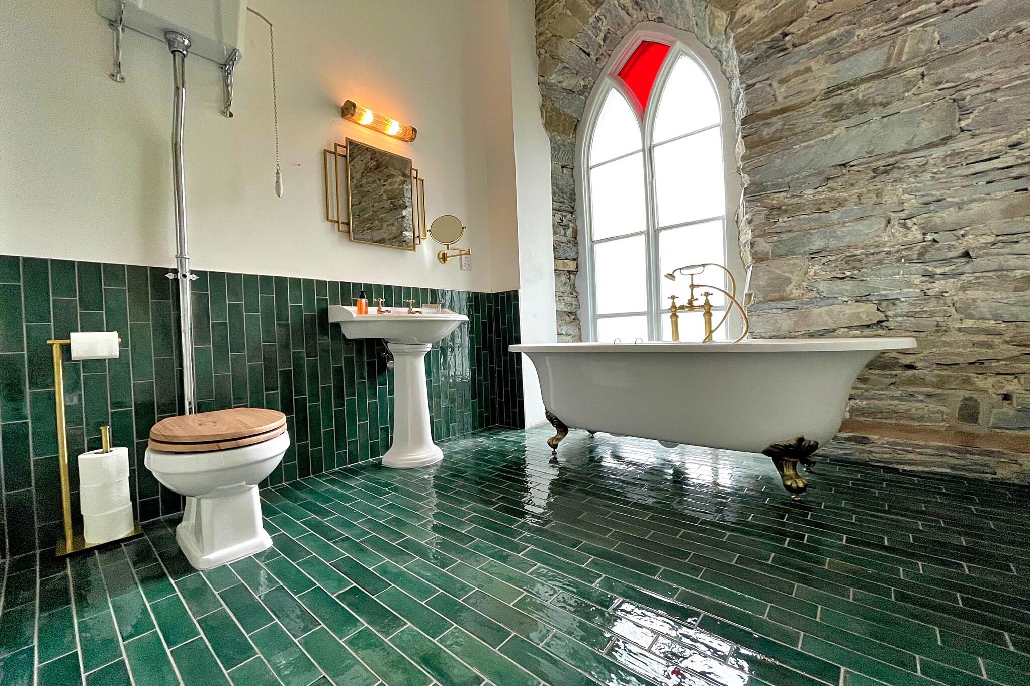 Dette unikke feriehus er et ombygget kapel med fem soveværelser, der komfortabelt kan rumme op til 12 gæster, hvilket gør det til et ideelt valg til store familiesammenkomster eller gruppeophold. Med fire soveværelser med dobbeltsenge og et køjeværelse i stueetagen med plads til fire, tilbyder det både charme og rummelighed. Gæsterne kan slappe af i det udendørs spabad, nyde spil som bordfodbold og pool i det dedikerede spillelokale eller hygge sig ved brændeovnen i det store opholdsområde. Kæledyr er velkomne, og der er også en barneseng, højstol og el-oplader. Gæsterne kan også nyde gratis adgang til alle faciliteter, herunder Wi-Fi og parkering. Beliggende i den naturskønne landsby Dinas Mawddwy på den sydlige spids af Snowdonia National Park, er hjemmet omgivet af rig naturlig skønhed og fascinerende historie. Kun en kort køretur fra Cader Idris og byen Dolgellau har besøgende nem adgang til vandrestier, lokale markeder og historiske vartegn. Landsbyens pub ligger kun et minuts gang væk, og tilbyder frisklavede, lokale retter, hvilket gør det både praktisk og behageligt at spise ude. Indvendigt har ejendommen bevaret meget af sin oprindelige charme med skyhøje lancetvinduer og synlige murværker, suppleret med moderne opdateringer. Det fuldt udstyrede køkken omfatter køleskab, ovn, mikroovn, opvaskemaskine, kaffemaskine og redskaber, perfekt til selvforplejning. Det store badeværelse i stueetagen har bruseniche og fritstående badekar. Sengelinned, håndklæder, slutrengøring og brug af boblebad er alt inkluderet, hvilket sikrer et behageligt og mindeværdigt ophold.