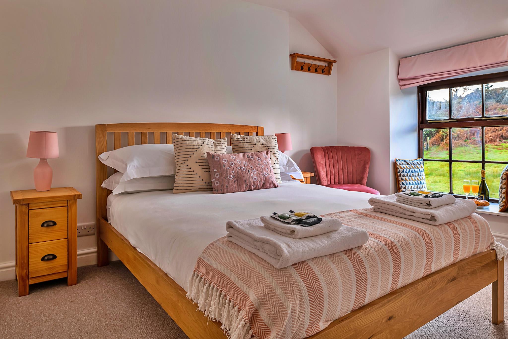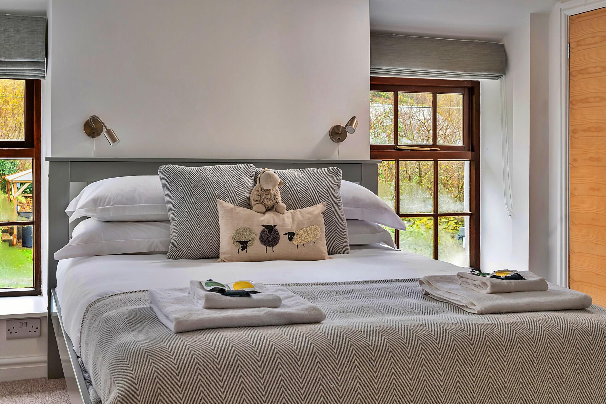 Oplev det perfekte tilflugtssted i dette charmerende walisiske sommerhus beliggende i den fredelige landsby Dolwyddelan i Snowdonia National Park. Omgivet af en betagende udsigt over Snowdon og Moel Siabod, tilbyder hytten en hyggelig, men moderne base for at udforske det fantastiske landskab. Nyligt opdateret og har et luksuriøst spabad under et træpavillon i den rummelige have, ideel til at slappe af efter udendørs eventyr. Ejendommen sover komfortabelt til fem på tværs af to soveværelser - det ene med en kingsize-dobbeltværelse og et enkeltværelse, og det andet med et dobbeltværelse - mens det stilfulde badeværelse inkluderer et brusekabine. Det fuldt udstyrede køkken åbner ud til haven med en spiseplads for familien, og et vandløb løber under haven, hvilket bidrager til de idylliske landlige omgivelser. Børn bør holdes under opsyn i nærheden af ??åen af ??sikkerhedsmæssige årsager. Indenfor blander hytten traditionel charme med moderne bekvemmeligheder, herunder en brændeovn, WiFi, brætspil og et widescreen-tv, hvilket skaber en varm, indbydende atmosfære. Opholdsområdet byder på en dejlig udsigt over græssende får på de tilstødende marker, hvilket forstærker den fredelige landskabsfølelse. Den rolige blind vej giver bekvem, gratis parkering kun få meter fra døren, hvilket gør adgangen let. Uanset om du går, cykler, rafter, surfer, zip-liner eller udforsker lokale seværdigheder, så fungerer denne hytte som en fremragende base for både eventyr og afslapning. Bemærk venligst, at spabadet har udgangsforbud kl. 21.00, og høj musik er ikke tilladt for at bevare roen i området. Gæster opfordres til at medbringe ekstra badehåndklæder eller badekåber, især i de køligere måneder. En startpakke med brænde og optænding leveres til brændeovnen, hvilket sikrer en hyggelig atmosfære. Med sin fantastiske udsigt, luksuriøse boblebad og nærhed til udendørs aktiviteter tilbyder denne hytte en mindeværdig flugt for alle, der søger fred, eventyr og naturlig skønhed i Snowdonia.