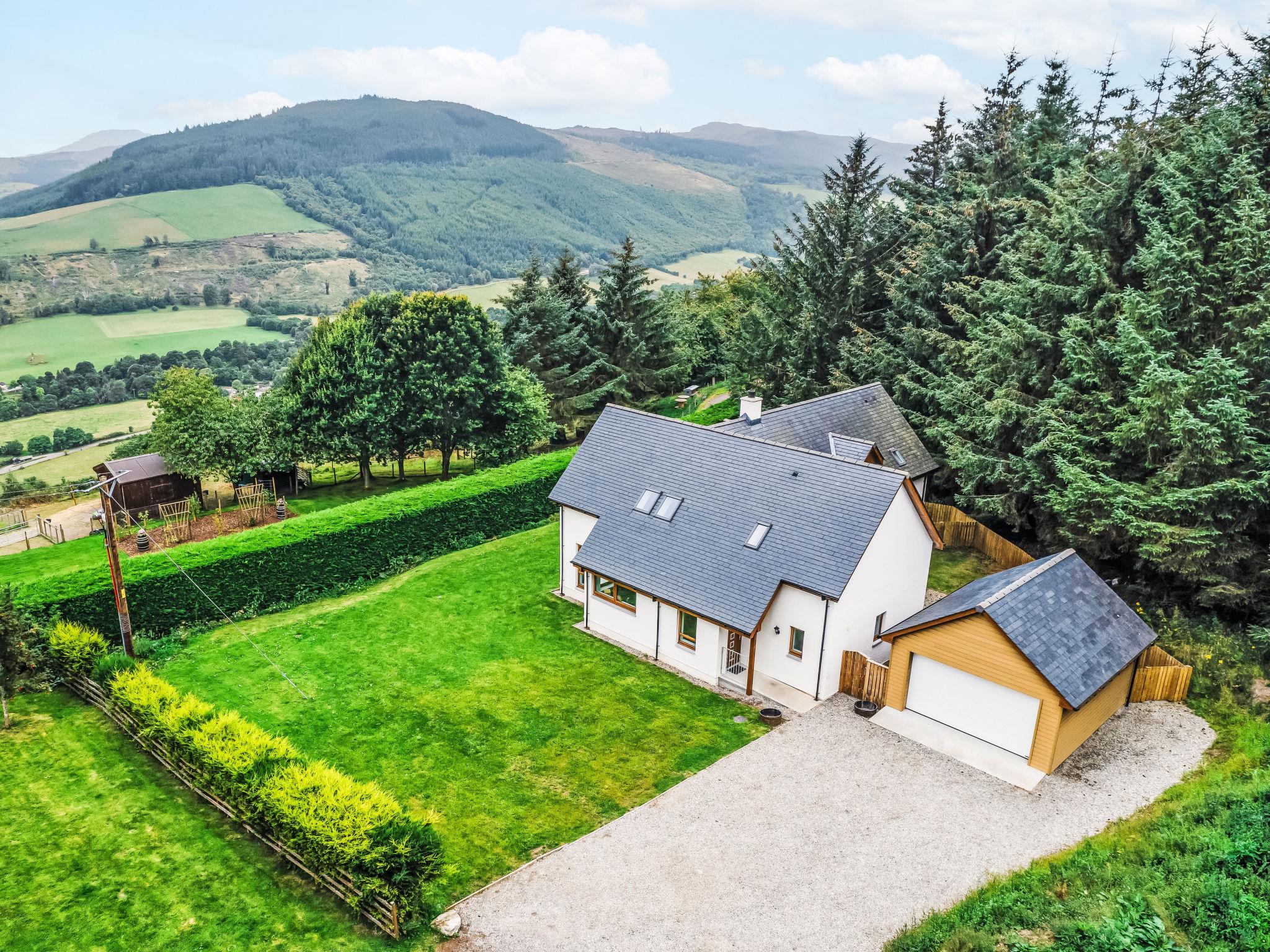 Modern, beautiful house "Springbank Lodge", 2 storeys, built in 2023. 2 km from the centre of Drumnadrochit, in a secluded, quiet position, 700 m from the lake. Private: large terraced garden with lawn. Pre-arrival grocery service. 4x4 car recommended in winter. Parking at the house. Shop 2 km, grocery 2 km, supermarket 20 km, shopping centre 20 km, restaurant, bar 900 m, bakery 2 km, café 1 km, bus stop "Post Office" 5 km. Golf course (18 hole) 20 km, riding stable 35 km. Nearby attractions: Urquhart Castle 4 km, Loch Ness Exhibition Centre 1 km, Plodda falls 30 km, Fort Augustus 30 km, Jacobite Boat Trips 5 km, Culloden Battlefield 33 km. Well-known lakes can easily be reached: Loch Ness 2 km, Loch Affric 42 km, Loch Meiklie 8 km. Hiking paths: Great Glen Way 1 km, Abriachan Forest 14 km, Meall Fuar-mhonaidh 20 km. Please note: car recommended. Suitable for families.