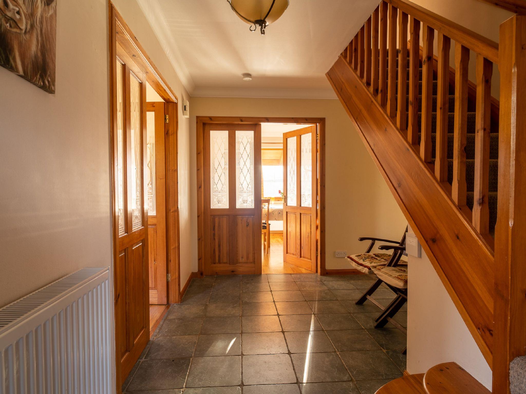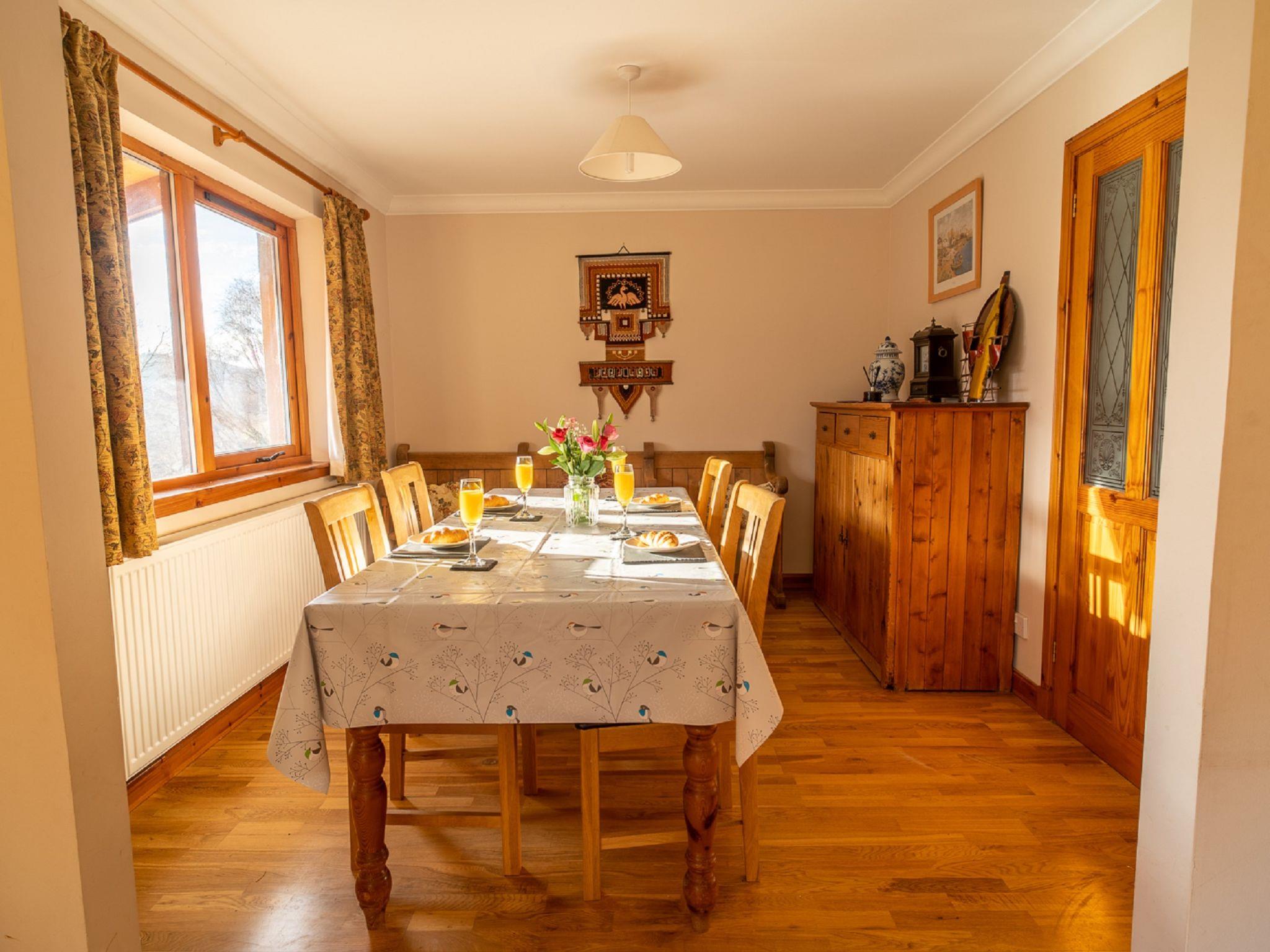 Very beautiful house "Ceilidhtail Cottage", 3 storeys, detached. On the outskirts, 2.5 km from the centre of Drumnadrochit, in a secluded, quiet position on top of a hill, 2 km from the lake. Private: natural garden. Patio, garden furniture. Pre-arrival grocery service. 4x4 car recommended in winter. Parking at the house. Shop 2.5 km, grocery 2.5 km, supermarket 20 km, shopping centre 20 km, restaurant 1.5 km, bar 2.5 km, bakery 2.5 km, café 2 km, 2 minute walk to the centre, bus stop 2 km, railway station 20 km. Golf course (18 hole) 20 km. Nearby attractions: Urquhart Castle 5 km, Loch Ness 2 km, Loch Ness Exhibition Centre 2 km, Fort Augustus 30 km, Jacobite Boat Trips 3 km, Culloden Battlefield 33 km. Well-known lakes can easily be reached: Loch Affric 29 km, Loch Meiklie 9 km. Hiking paths: Great Glen Way 1 km, Abriachan Forest 10 km, Glen Affric 29 km. Please note: car recommended. Suitable for families.