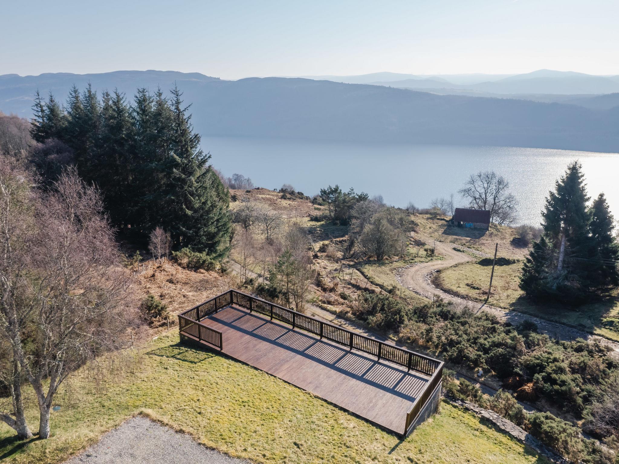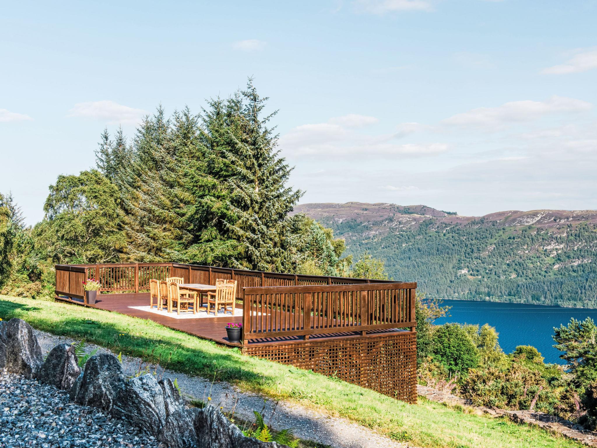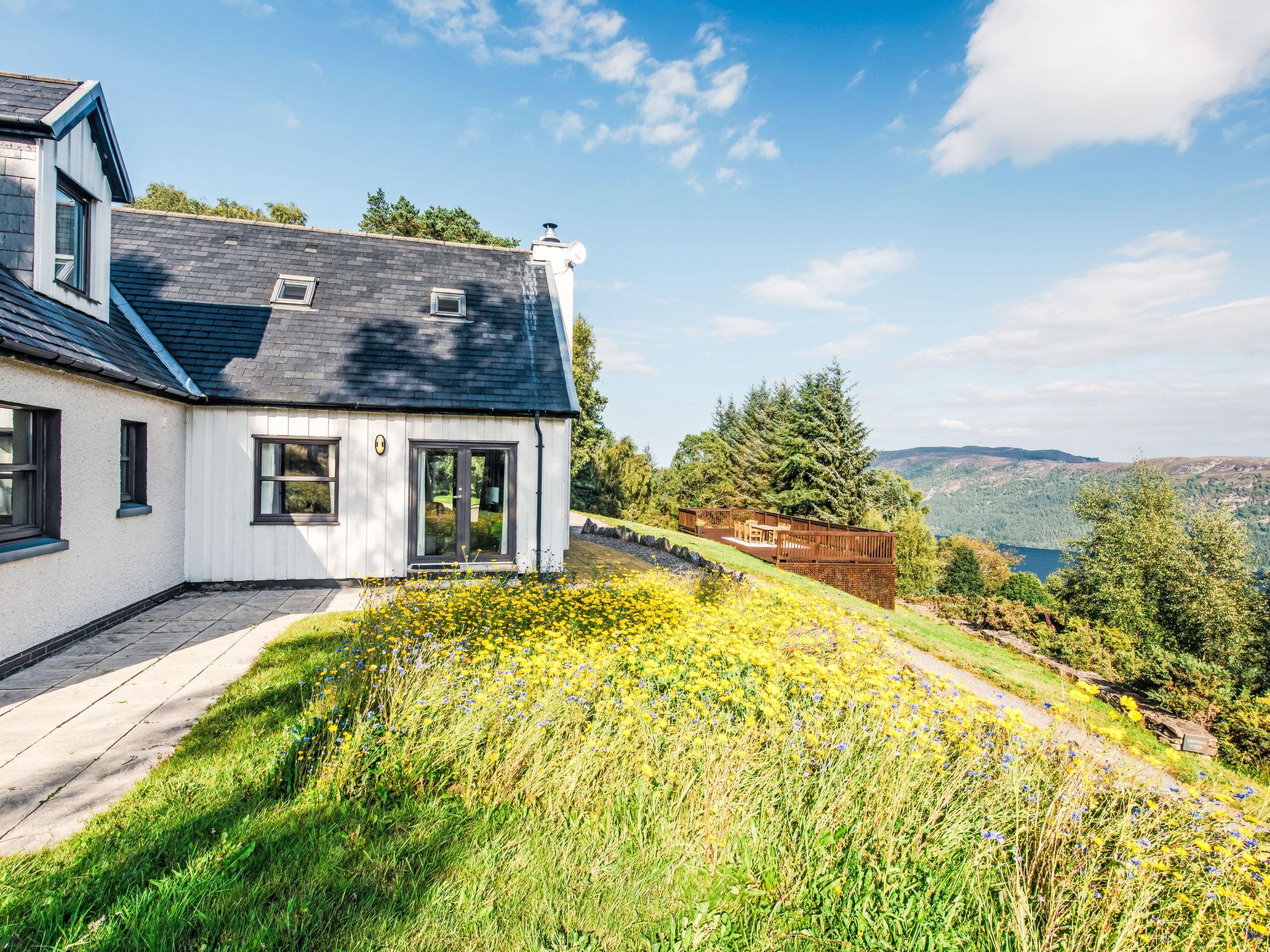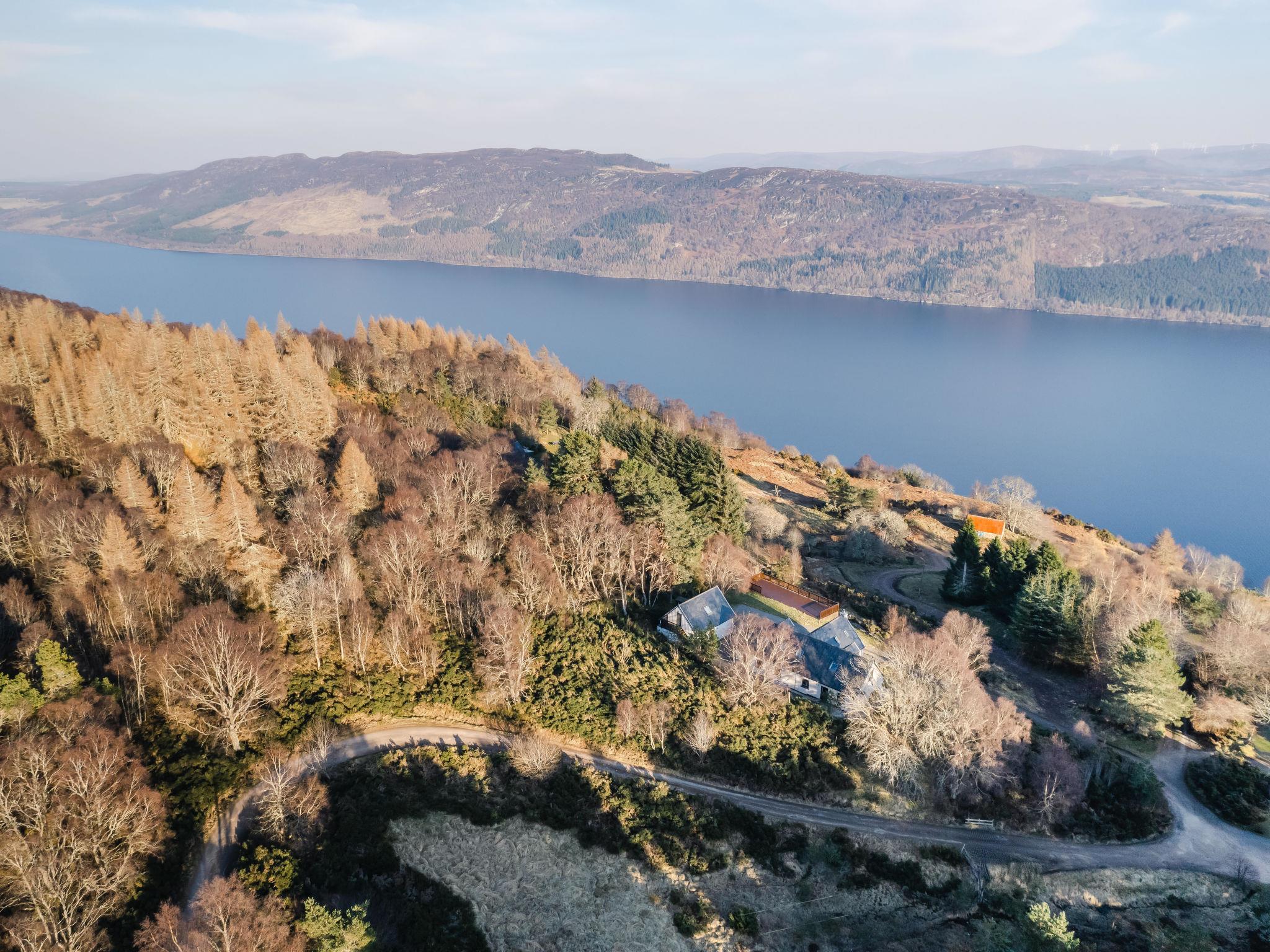 Beautiful, luxurious villa "Drover's Lodge", 2 storeys, detached, surrounded by trees and meadows. On the outskirts, 3.5 km from the centre of Drumnadrochit, in a secluded, quiet, elevated position on top of a hill, 3.5 km from the lake. Private: large garden (not fenced) lawn. Patio, terrace, garden furniture. Pre-arrival grocery service. 250 m long narrow motor access. 4x4 car recommended in winter. Parking at the house. Shop 4 km, grocery 4 km, supermarket 25 km, shopping centre 25 km, restaurant 3 km, bar 3 km, bakery 1 km, café 4 km, bus stop "Loch Ness Inn" 3 km. Golf course (18 hole) 20 km. Nearby attractions: Urquhart Castle 5 km, Loch Ness 3 km, Loch Ness Exhibition Centre 4 km, Fort Augustus 30 km, Jacobite Boat Trips 4 km. Hiking paths: Great Glen Way 100 m. Please note: car recommended.