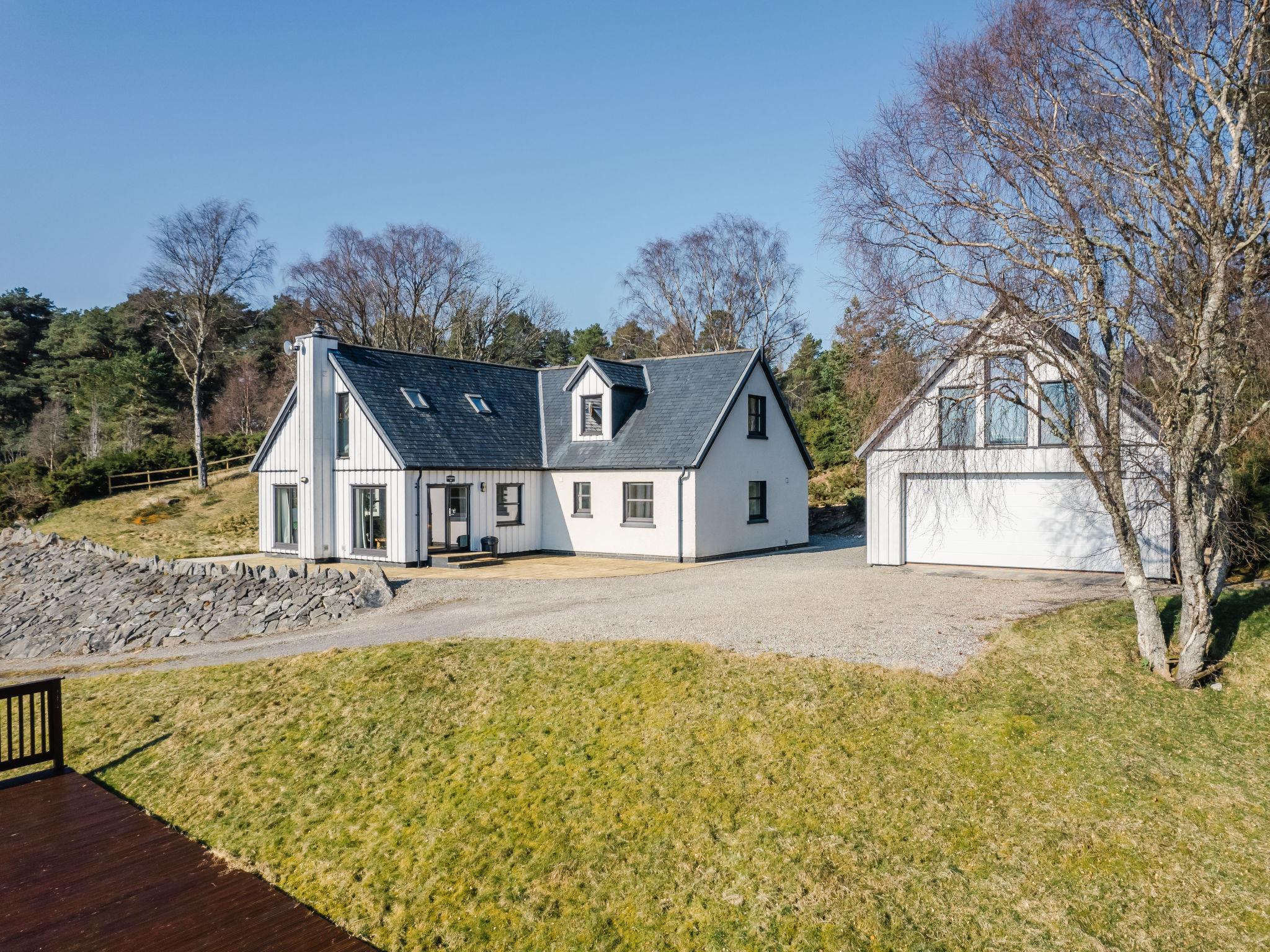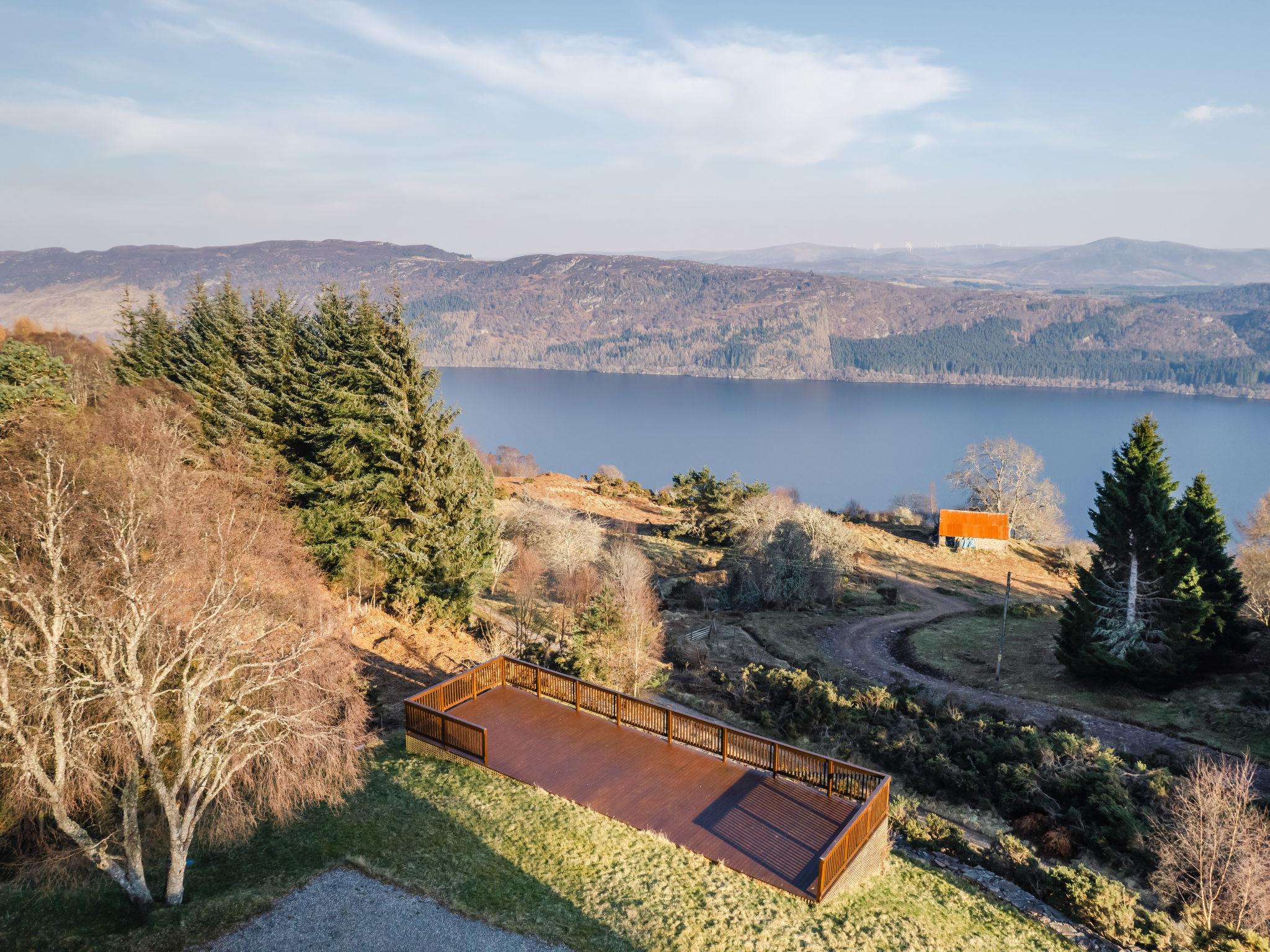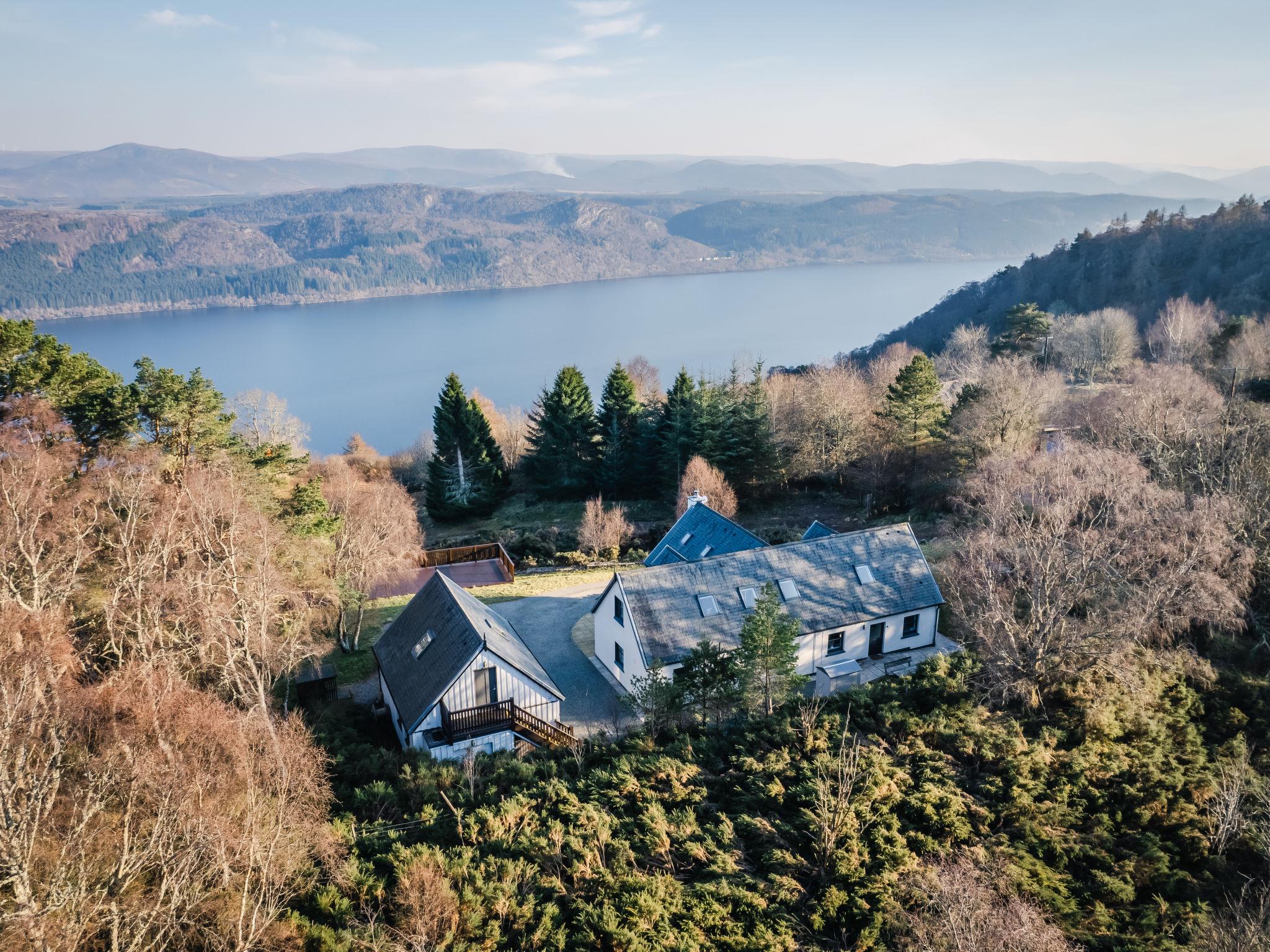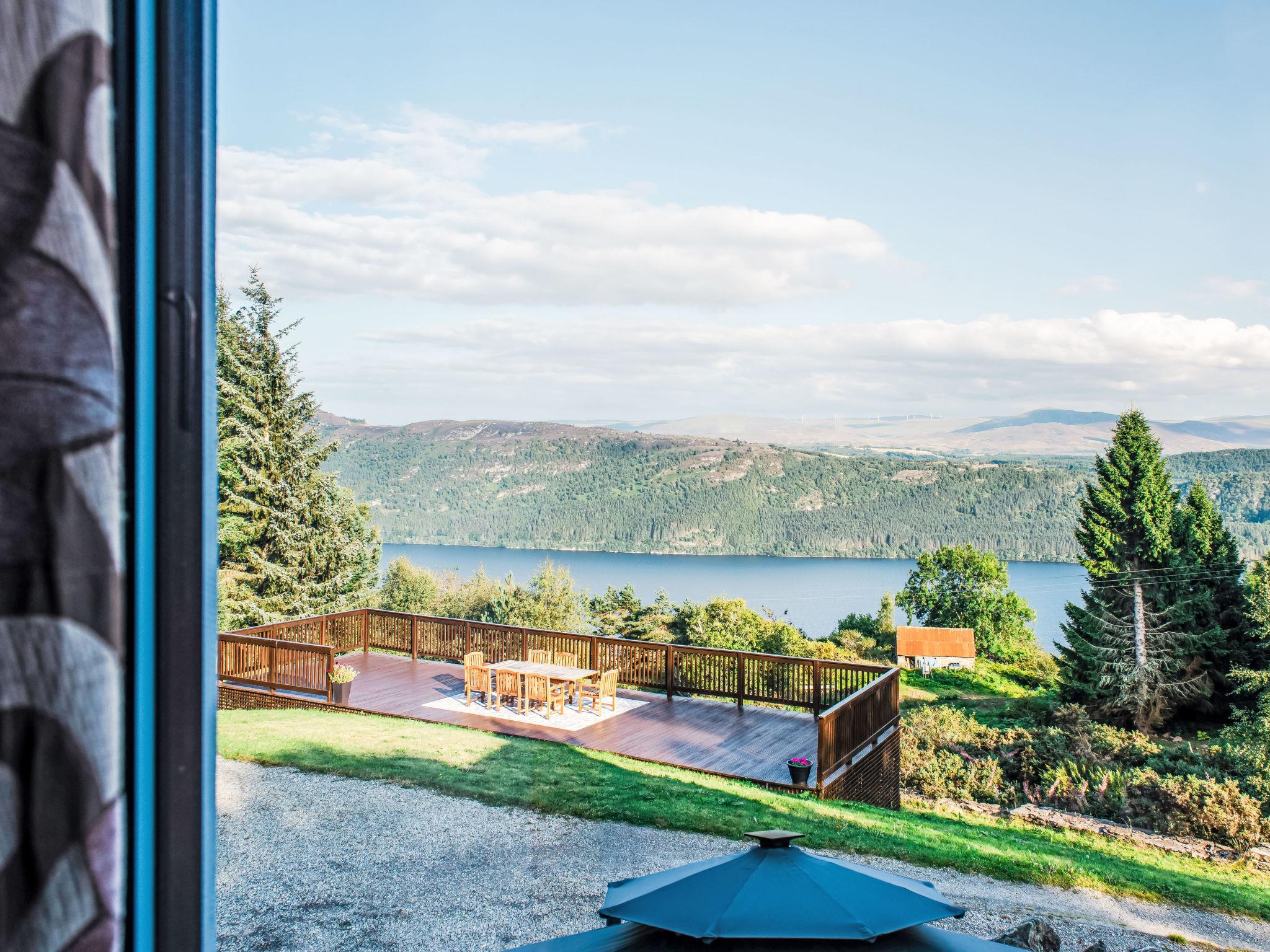 Beautiful, luxurious villa "Drover's Lodge", 2 storeys, detached, surrounded by trees and meadows. On the outskirts, 3.5 km from the centre of Drumnadrochit, in a secluded, quiet, elevated position on top of a hill, 3.5 km from the lake. Private: large garden (not fenced) lawn. Patio, terrace, garden furniture. Pre-arrival grocery service. 250 m long narrow motor access. 4x4 car recommended in winter. Parking at the house. Shop 4 km, grocery 4 km, supermarket 25 km, shopping centre 25 km, restaurant 3 km, bar 3 km, bakery 1 km, café 4 km, bus stop "Loch Ness Inn" 3 km. Golf course (18 hole) 20 km. Nearby attractions: Urquhart Castle 5 km, Loch Ness 3 km, Loch Ness Exhibition Centre 4 km, Fort Augustus 30 km, Jacobite Boat Trips 4 km. Hiking paths: Great Glen Way 100 m. Please note: car recommended.