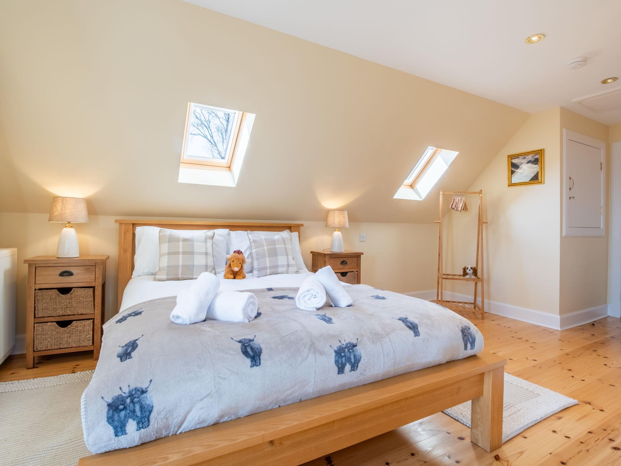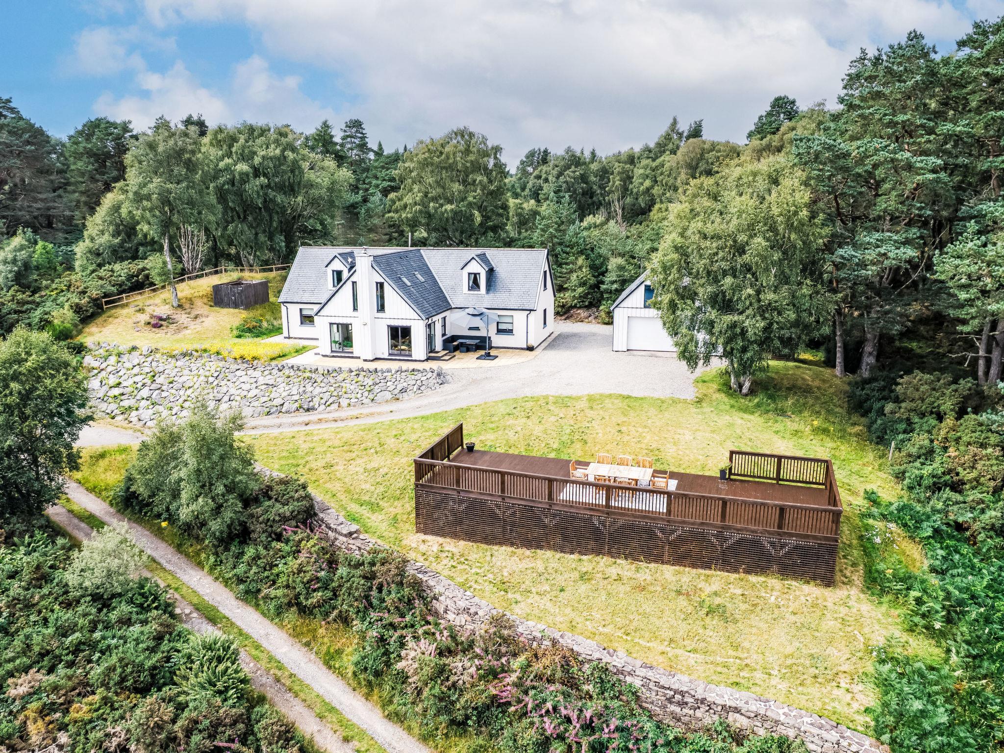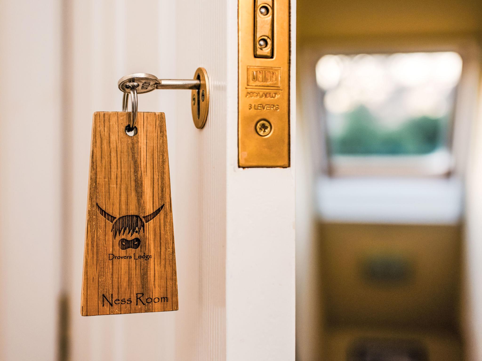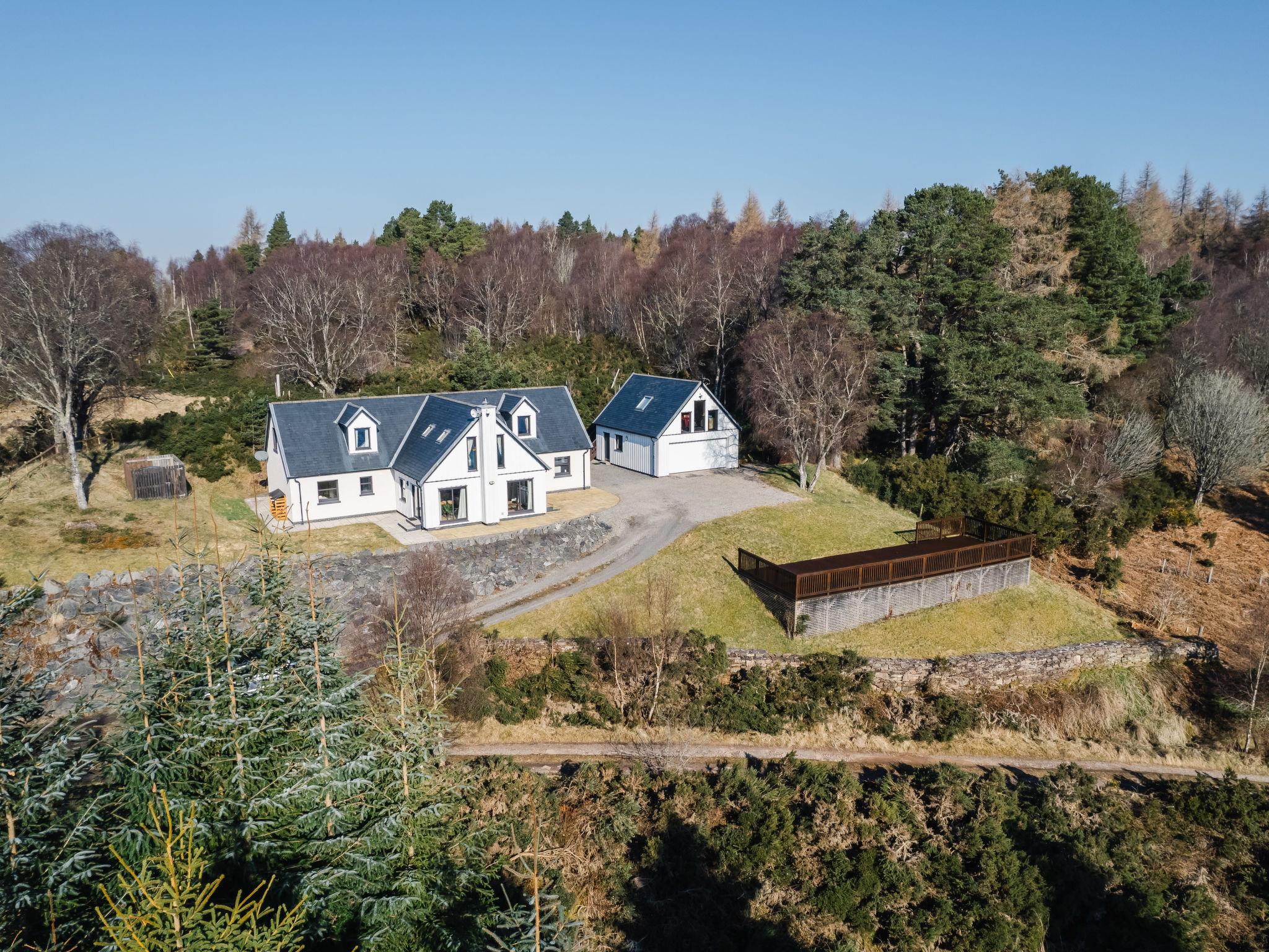 Beautiful, luxurious villa "Drover's Lodge", 2 storeys, detached, surrounded by trees and meadows. On the outskirts, 3.5 km from the centre of Drumnadrochit, in a secluded, quiet, elevated position on top of a hill, 3.5 km from the lake. Private: large garden (not fenced) lawn. Patio, terrace, garden furniture. Pre-arrival grocery service. 250 m long narrow motor access. 4x4 car recommended in winter. Parking at the house. Shop 4 km, grocery 4 km, supermarket 25 km, shopping centre 25 km, restaurant 3 km, bar 3 km, bakery 1 km, café 4 km, bus stop "Loch Ness Inn" 3 km. Golf course (18 hole) 20 km. Nearby attractions: Urquhart Castle 5 km, Loch Ness 3 km, Loch Ness Exhibition Centre 4 km, Fort Augustus 30 km, Jacobite Boat Trips 4 km. Hiking paths: Great Glen Way 100 m. Please note: car recommended.