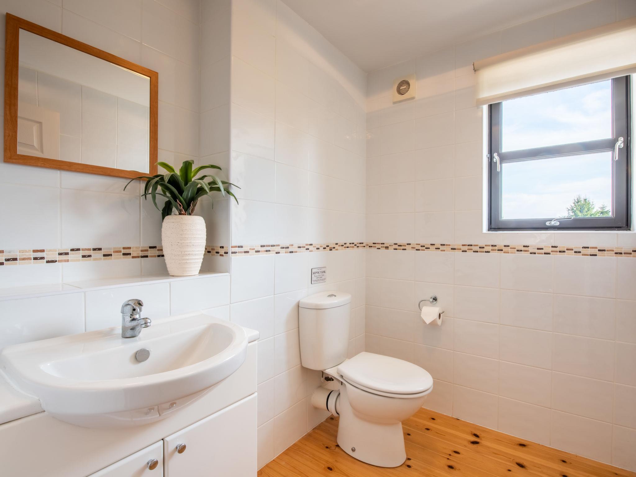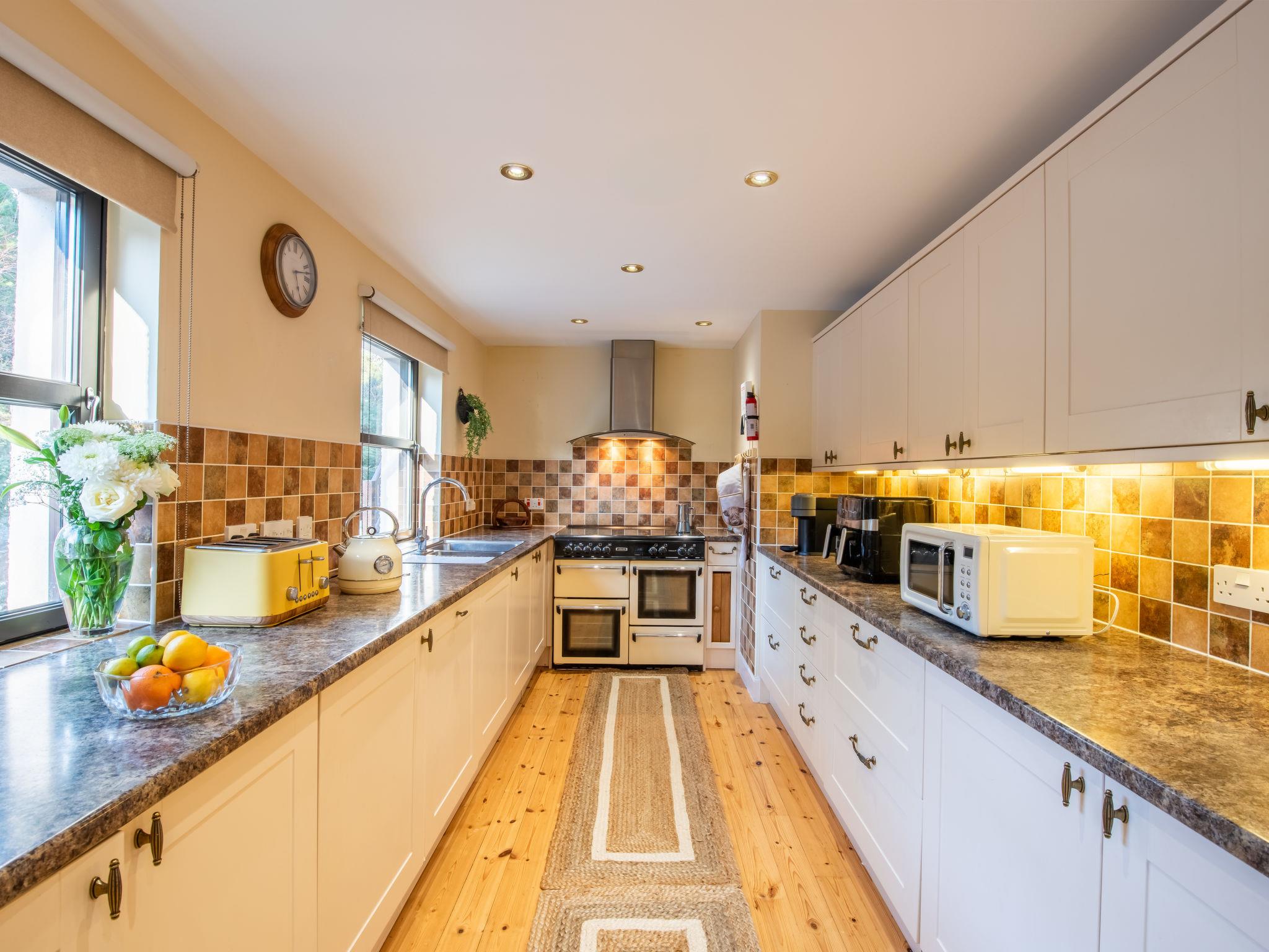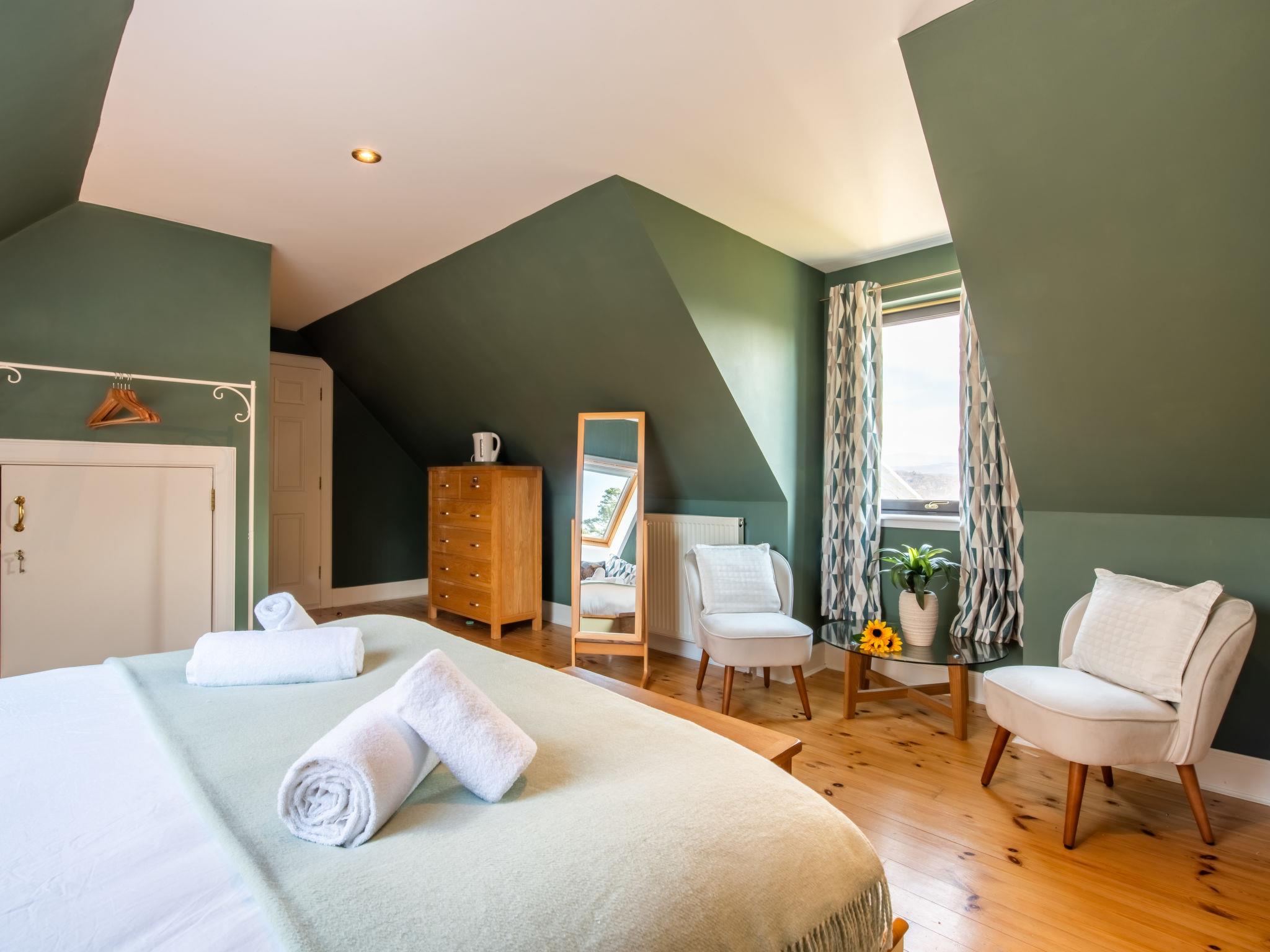 "Drover's Lodge", 6-room villa 228 m2 on 2 levels. Spacious and bright, modern and tasteful furnishings: open living/dining room with dining table and wood-burning stove. Exit to the garden, to the terrace, to the patio. Lounge with TV (flat screen). Exit to the garden. 1 double bedroom with bath/shower/WC. Kitchen (oven, dishwasher, Gas stove, 5 gas rings, toaster, kettle, microwave, freezer). Sep. WC. Upper floor: 1 double bedroom with bath/shower/WC. 2 double bedrooms, each room with shower/WC. Oil heating. Wooden floors. Large terrace, large patio, large garden, lawn. Terrace furniture, balcony furniture. Very beautiful view of the lake and the countryside. Facilities: washing machine, dryer, hair dryer, logs (extra). Internet (WiFi, free). Parking at the house. Please note: not suitable for children under 11 years. Non-smoking house. TV only EN. Smoke alarm, fire extinguisher. Games room above the garage with pool table TV with Xbox, two consoles, Xbox kinect, 30 games and multiple DVD's with seating and WC below. Please note:- Garage not for use of guests.
