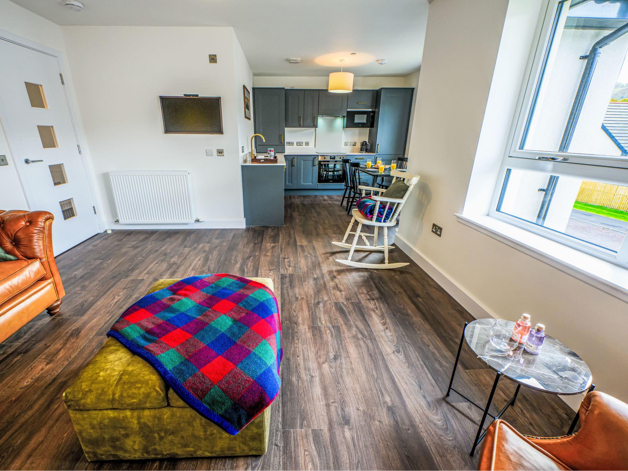 Modern, comfortable apartment block "Craigmonie Apartment", built in 2024. In the centre of Drumnadrochit, in a central position, 2 km from the lake. Pre-arrival grocery service. Parking at the house. Shop 500 m, grocery 1 km, supermarket 20 km, shopping centre 20 km, restaurant, bar, bakery, café 500 m, 2 minute walk to the centre, bus stop "Loch Ness Inn" 500 m. Golf course (18 hole) 20 km. Nearby attractions: Urquhart Castle 3 km, Loch Ness 2 km, Loch Ness Exhibition Centre 1 km, Fort Augustus 30 km, Jacobite Boat Trips 2 km. Hiking paths: Great Glen Way 1 km. Please note: suitable for families, baby equipment on request.