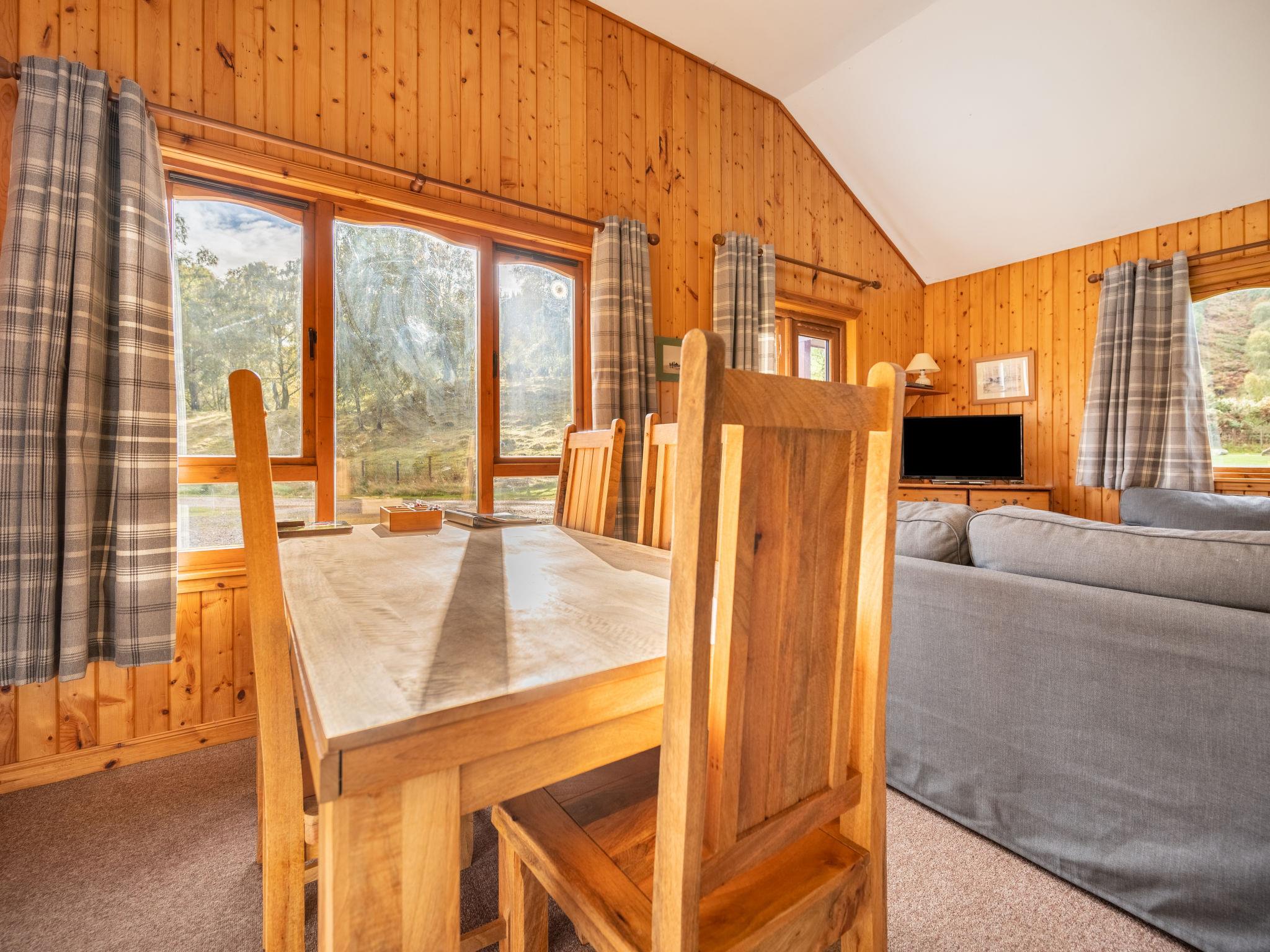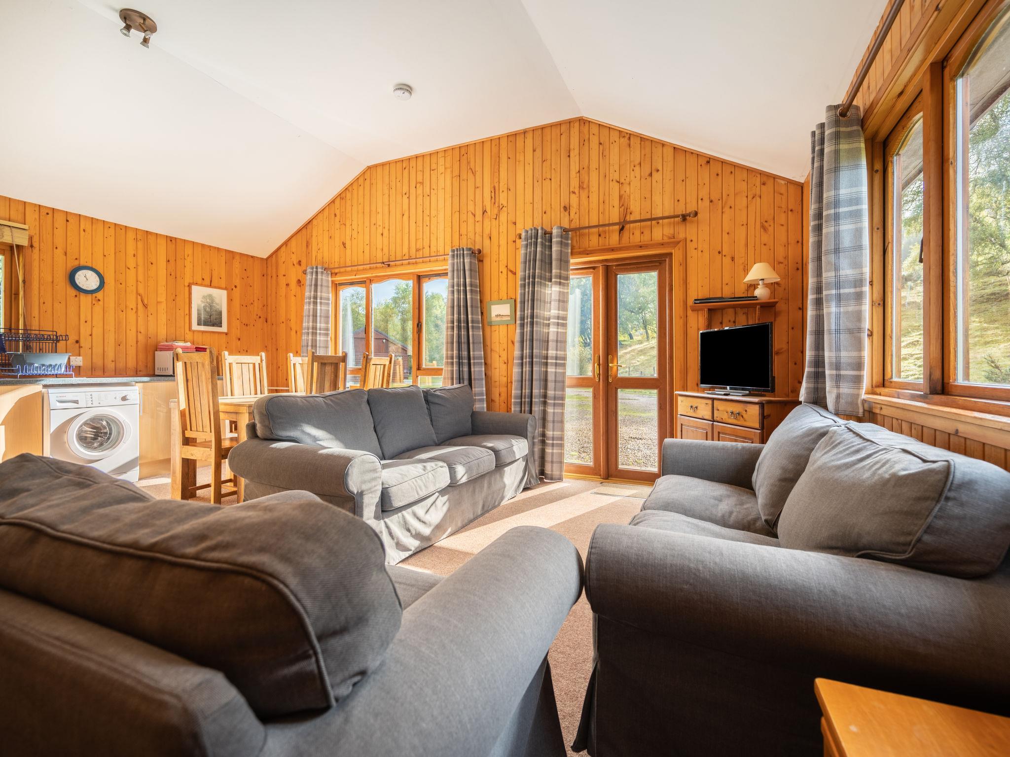 Balnain 8 km from Loch Ness: Cosy, comfortable chalet "Loch Meiklie 3 bed", detached. On the outskirts, 8 km from the centre of Drumnadrochit, in a quiet, sunny position, 8 km from the lake, 50 m from the river. In the house: tumble dryer (for shared use). Parking (for 2 cars) at the house. Shop 8 km, grocery 8 km, supermarket 25 km, restaurant 8 km, bar 8 km, bus stop "Loch Ness Inn" 9 km, railway station "Inverness" 31 km. Golf course (18 hole) 31 km, riding stable 8 km. Nearby attractions: Urquhart Castle 11 km, Glen Affric 22 km, Loch Ness Monster exhibition 8 km. Well-known lakes can easily be reached: Loch Ness 8 km. Hiking paths: Great Glen Way - Inverness 34 km. Please note: car recommended. Suitable for families, suitable for seniors baby equipment on request (included).
