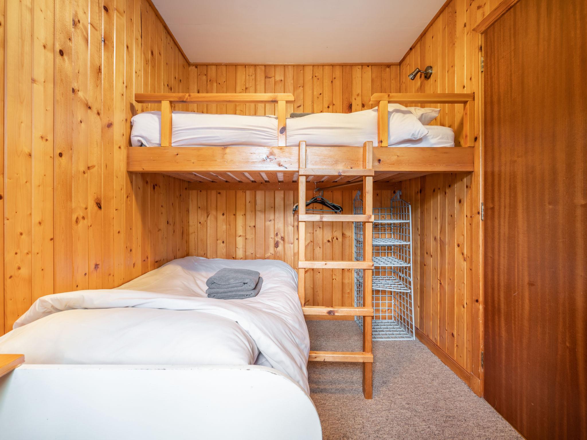 4-room chalet 63 m2. Simple and cosy furnishings: open living/dining room with dining table and TV (flat screen), DVD. 1 double bedroom with 1 double bed. 1 double bedroom with 2 beds. 1 room with 1 x 2 bunk beds. Open kitchen (4 hot plates, oven, microwave). Bath/shower/WC. Electric heating. Facilities: washing machine, children's high chair, baby cot for up to 2 year olds (extra). Internet (WiFi, free). Parking (2 cars) at the house. Please note: suitable for families. Non-smoking house. Maximum 2 pets/ dogs allowed. TV only EN. Heating and hot water are payable with a coin operated meter. Occupancy is for 4 people, any additional must book the extra beds. HI-50159-F