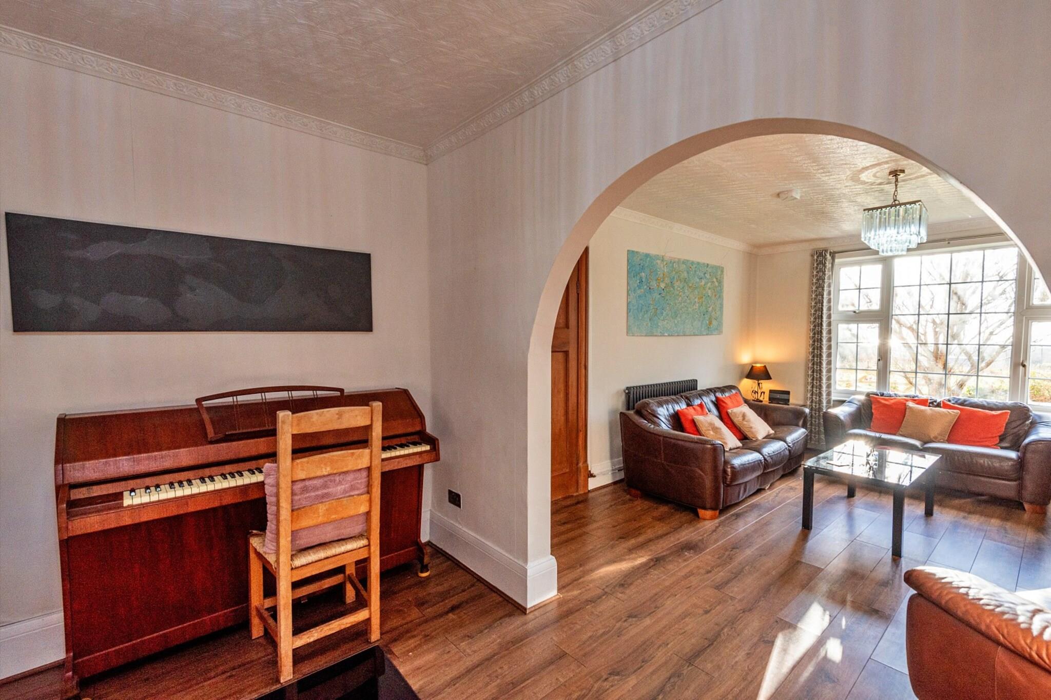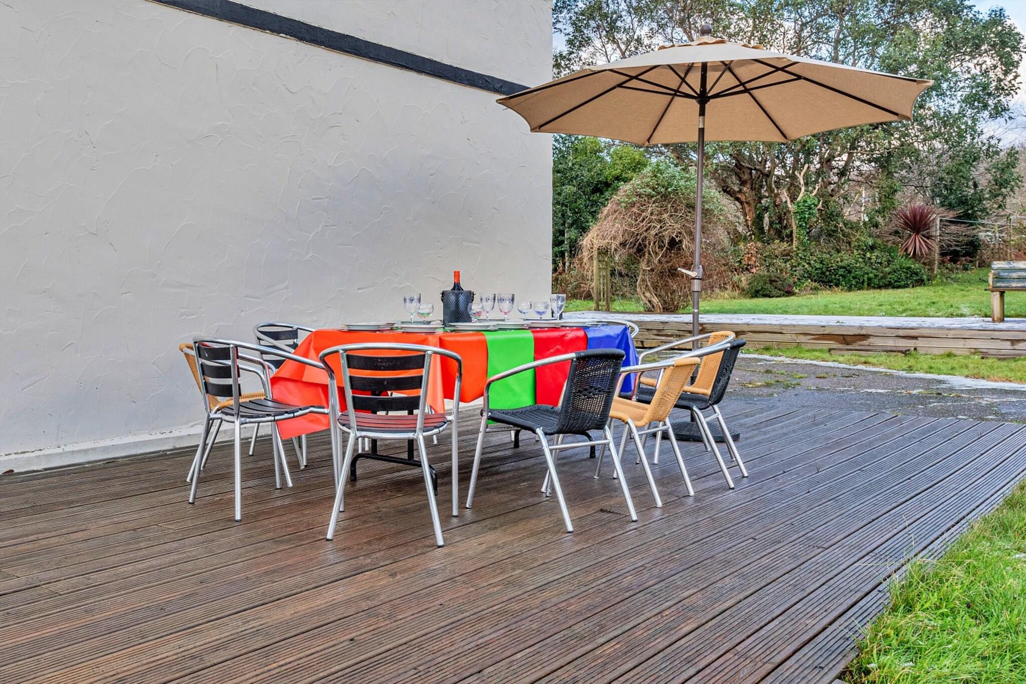 Dette rummelige tre-etagers landsted tilbyder et perfekt tilflugtssted for familier og grupper. Huset kan rumme op til 12 gæster fordelt på seks soveværelser, herunder to dobbelte en-suiter med badekar og brusere, et enkelt soveværelse og yderligere dobbeltværelser med fælles faciliteter. Det giver en hyggelig atmosfære med to stuer, hver med brændeovn og elektrisk ild til varme. Ejendommen ligger i hjertet af Snowdonia Nationalpark og giver nem adgang til naturlige attraktioner og udendørs aktiviteter. Gæsterne kan tage på naturskønne vandreture til Cors y Gedol eller slappe af på den nærliggende Benar-strand. Den charmerende Barmouth Beach med dens berømte Barmouth Bridge er en kort køretur væk, mens den fortryllende landsby Portmeirion byder på haver, et fyrtårn og en fantastisk udsigt over flodmundingen. Snowdonias dramatiske landskaber byder på uendelige muligheder for udforskning, hvad enten det er til fods eller på cykel. Inde i huset er komfort og bekvemmelighed prioriteret, med to fuldt udstyrede køkkener, inklusive moderne apparater, og rigelig plads til at alle kan samles og spise. Ejendommen inkluderer alle nødvendige faciliteter såsom varme, internetadgang, vaskemaskine og håndklæder. En barneseng og barneseng er til rådighed for familier med små børn. Ejendommen er også velegnet til dem, der ønsker at nyde en fredelig ferie, mens de er tæt på lokale attraktioner og det betagende landskab i det nordlige Wales.