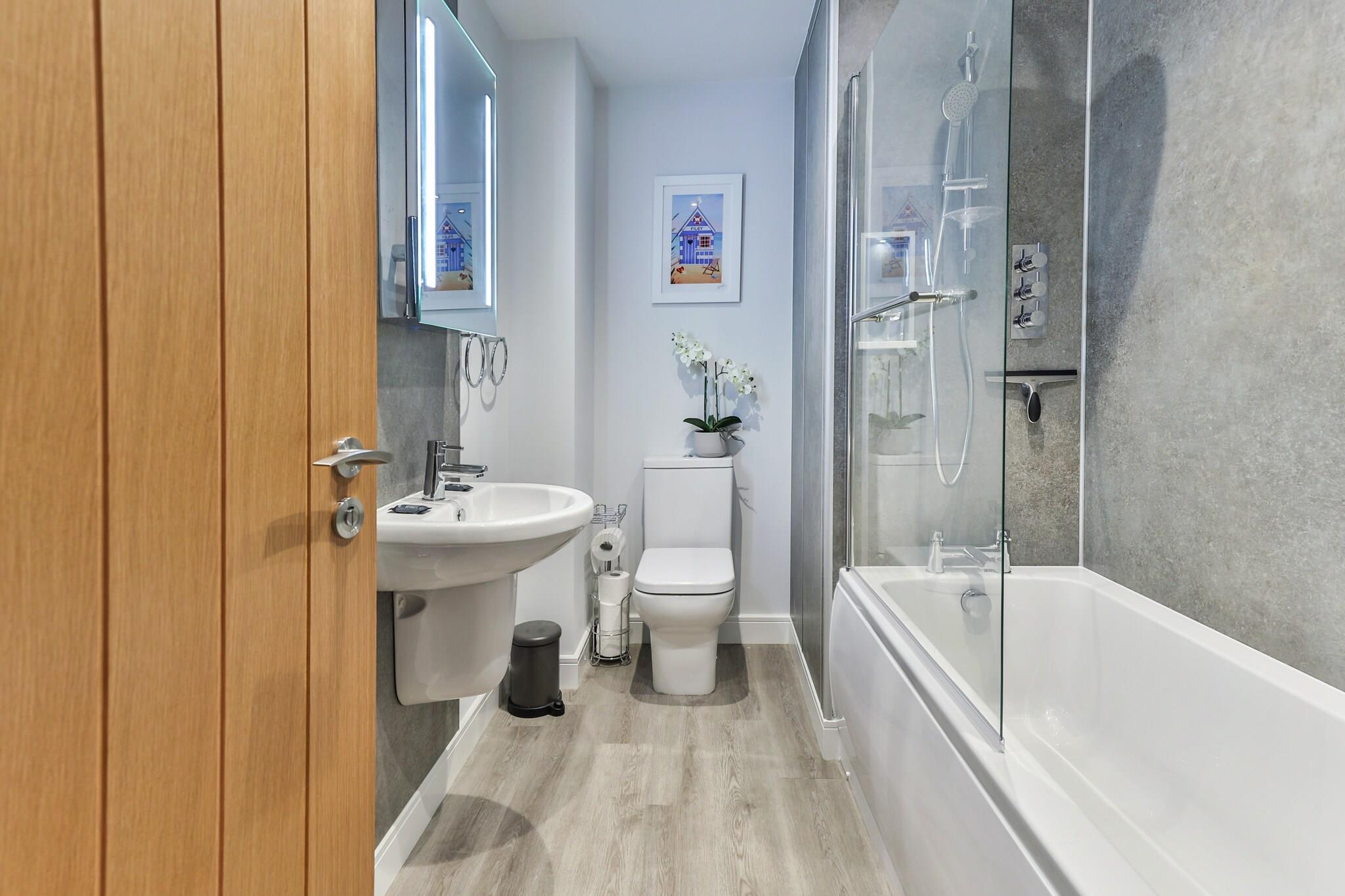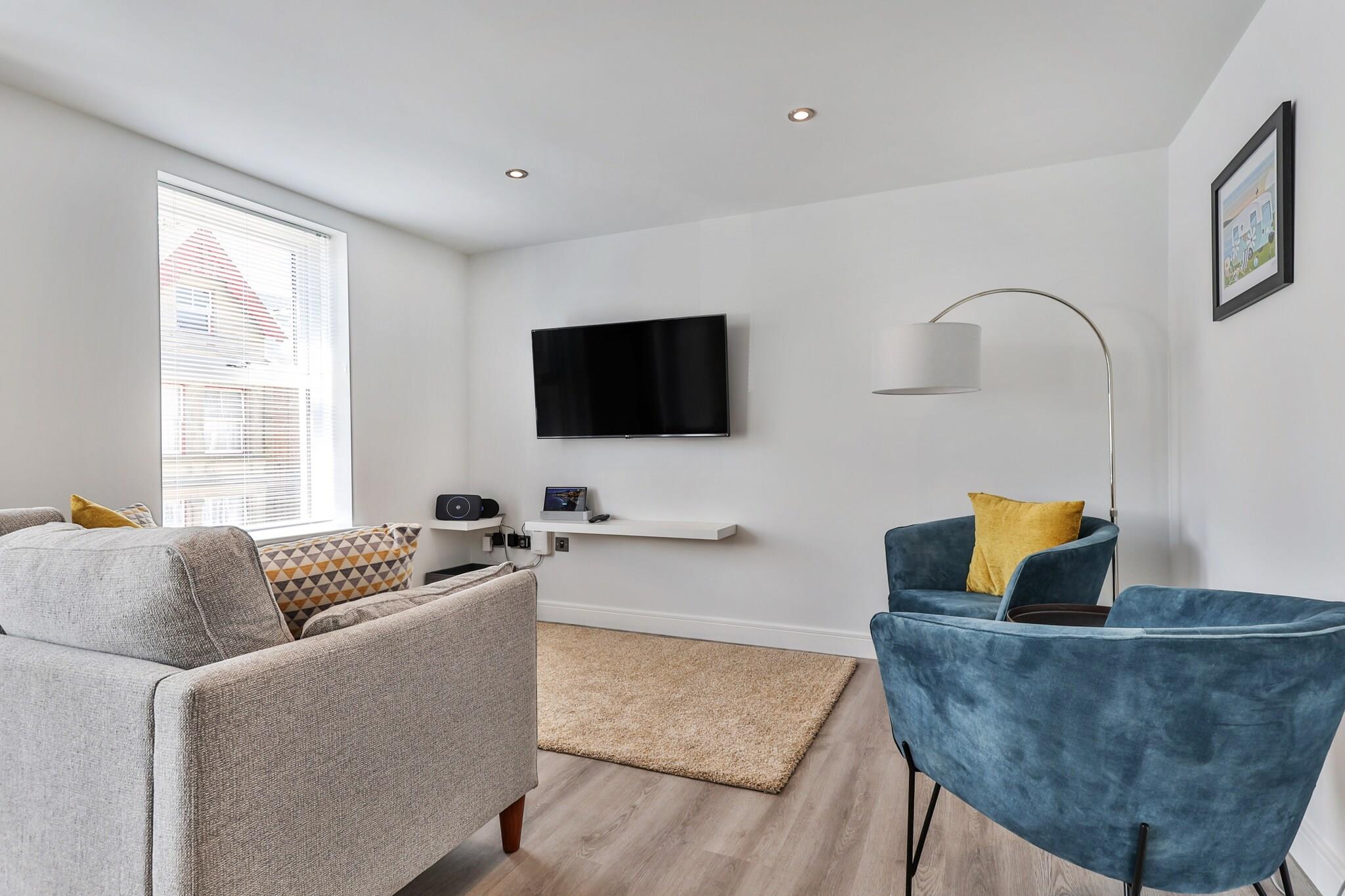 Beliggende i hjertet af Filey, kun en kort gåtur fra stranden, er denne nyrenoverede lejlighed på første sal den perfekte base for din ferie ved havet. Uanset om du udforsker lokale butikker, caféer eller nyder den rolige kystlinje, tilbyder denne kæledyrsvenlige lejlighed alt hvad du behøver for et behageligt ophold. Opholdsstuen i åbent plan er lys og rummelig og byder på komfortable sofaer, et vægmonteret fladskærms-tv og et udvalg af brætspil til familiesjov efter en dag på stranden. Det veludstyrede køkken indeholder alle moderne bekvemmeligheder, såsom en Nespresso-maskine, opvaskemaskine, mikroovn, ovn og mere for at sikre, at du føler dig hjemme. Det store soveværelse har en king-size seng, rigelig opbevaring og et en-suite brusebad, mens det andet soveværelse har to enkeltsenge, perfekt til børn eller venner. Det primære familiebadeværelse inkluderer et luksuriøst badekar med bruser over, håndklædetørrer og et baggrundsbelyst spejl for at forbedre dit ophold. Træd udenfor for at udforske Filey's kystcharme, hvor stranden kun ligger 0,5 km væk. Glen Gardens, adventure golf og Flamborough Headland Heritage Coast er alle i nærheden, perfekt til udendørsentusiaster. Plus, Scarborough er kun 20 minutters kørsel væk for endnu flere attraktioner. Denne lejlighed er ideel til familier, par eller små grupper, der leder efter en afslappende flugt med bekvemmeligheden ved at være tæt på stranden og lokale attraktioner, med gratis tildelt parkering og kæledyrsvenlig indkvartering.