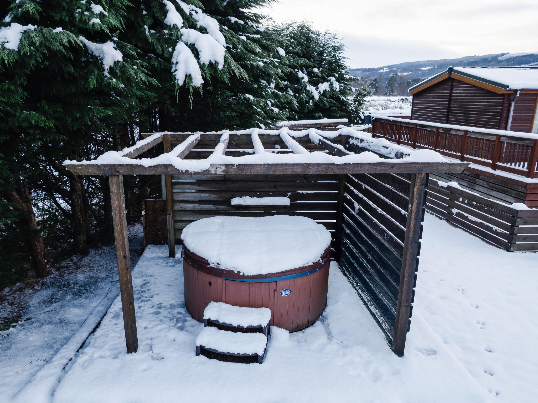 Cosy, comfortable mobile home "ScottishHighlands.LochNess", detached, surrounded by trees. On the outskirts, 1 km from the centre of Fort Augustus, in a secluded, quiet position, 1 km from the lake, 1 km from the canal. Private: hot tub, patio, parking at the house. Shop 1.1 km, grocery 1.1 km, supermarket 55 km, restaurant 1.1 km, bus stop "Tourist information" 1.3 km. Golf course (9 hole) 10 m. Nearby attractions: Fort Augustus Abbey 1.2 km, Inverness 56.4 km, Isle of Skye 131 km, Caledonia Canal 3.4 km, Fort William 52 km. Well-known lakes can easily be reached: Loch Ness 1 km. Hiking paths: Great Glen Way. Please note: suitable for families, baby equipment on request.