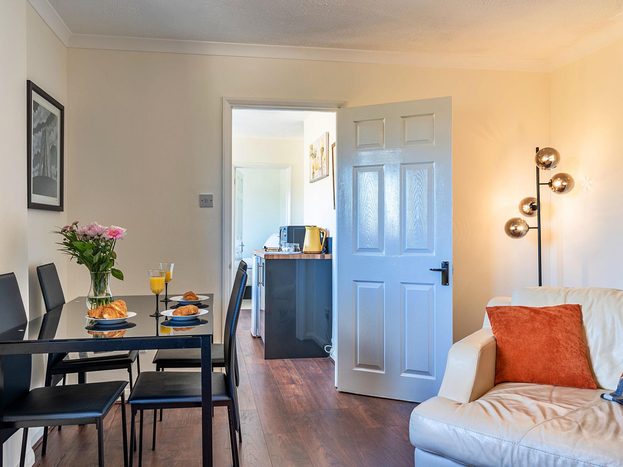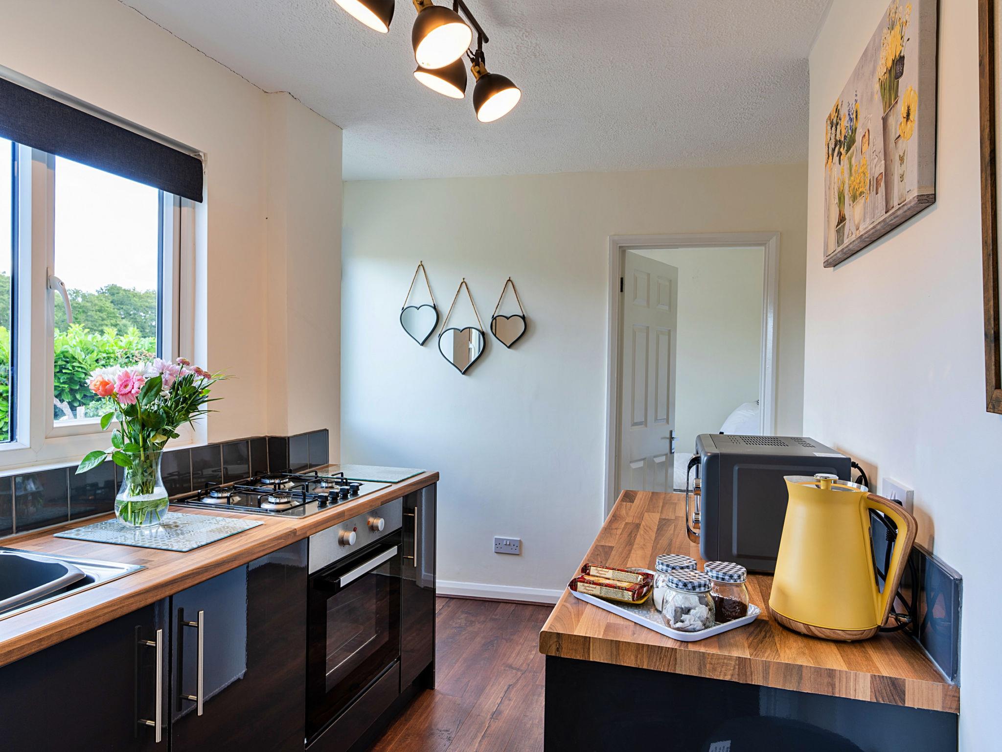 "The Annexe at Rosebud Cottage", 3-room house 100 m2. Object suitable for 4 adults. Living room with TV. 1 room with 1 double bed. 1 room with 1 french bed. Kitchen (oven, toaster, kettle, microwave, freezer). Shower/WC. View of the garden. Facilities: iron, hair dryer. Internet (WiFi, free). Parking (2 cars). Please note: non-smokers only. Smoke alarm.