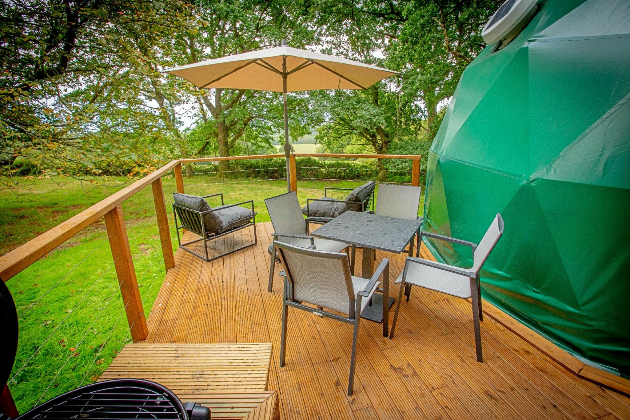 Dette luksuriøse glamping-tilflugtssted er en fredfyldt, kæledyrsvenlig kuppel i chalet-stil, og tilbyder en fredelig flugt ud i naturen, perfekt for par eller små familier. Indkvarteringen kan sove op til fem gæster med to kingsize-senge og en ekstra seng og har et rummeligt interiør i åbent plan med spiseplads, en sækkestol og et privat forhøjet dæk komplet med omgivende aftenbelysning og naturskøn udsigt over landskabet. Kæledyr er velkomne, med de omkringliggende græsarealer og skove giver en naturlig legeplads for firbenede ledsagere - selvom kæledyr ikke må efterlades uden opsyn. Beliggende privat i de kentiske skove, tilbyder kuplen en fordybende udsigt over "The Garden of England", med udsigt over åbne marker fra dens solbeskinnede dæk. Beliggende kun 8 minutter fra Chiddingstone Castle, Hever Castle og Penshurst Place, er ejendommen godt placeret for besøg i den lokale kulturarv. Yderligere attraktioner som Royal Tunbridge Wells, Groombridge Place og Sissinghurst Castle er også i nærheden. Med London under en time væk i bil eller tog, og Gatwick Lufthavn kun 35 minutter væk, er det både fjerntliggende og let tilgængeligt. Kuppelen er designet til komfort året rundt og inkluderer et kompakt tekøkken til selvforplejning, et privat badeværelsesanlæg lige ved siden af ??og en hyggelig indendørs brændeovn til køligere aftener. Ekstra bekvemmeligheder inkluderer en Wi-Fi-hub, mediekonsol til trådløs opladning, spiseplads og omklædningsrum med opbevaring. Sengelinned, håndklæder og parkering er alt inkluderet, hvilket sikrer en veludstyret boutique-glamping-oplevelse midt i naturlig ro.