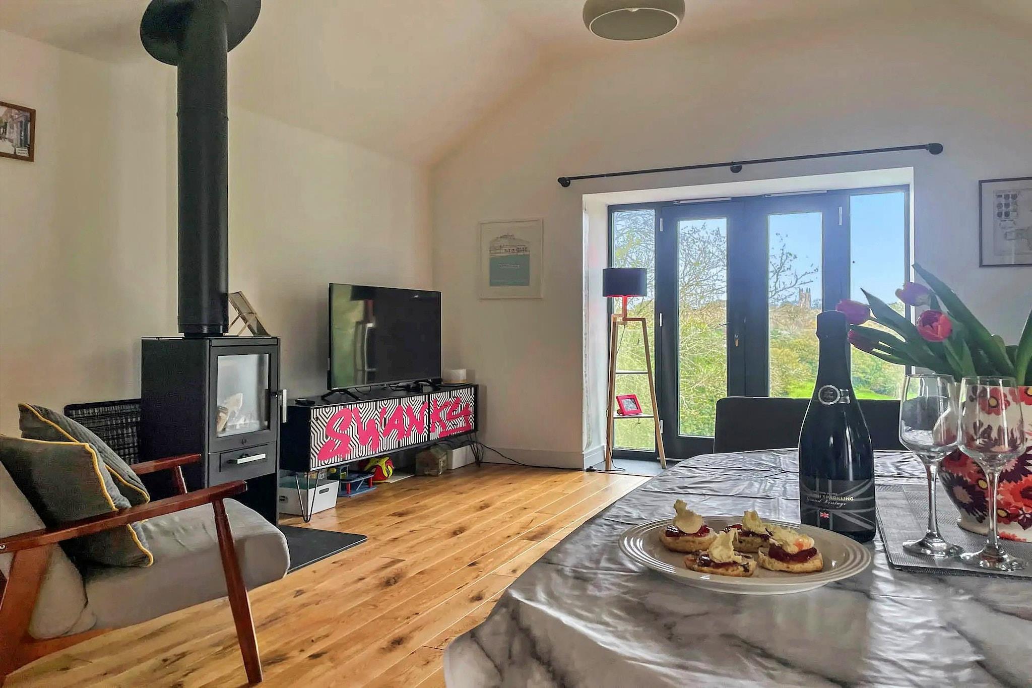 Denne bolig har et omhyggeligt designet layout, der understreger både bekvemmelighed og afslapning. Et af dobbeltværelserne inkluderer en Super King-seng, et indbygget fjernsyn og et privat ensuite brusebadeværelse, der giver et strejf af luksus og privatliv. Et rummeligt familiebadeværelse betjener resten af ??ejendommen, hvilket sikrer, at alle gæster har adgang til rigelige faciliteter. Den øverste etage præsenterer et køkken i åbent plan, der er fuldt udstyret til alle dine madlavnings- og underholdende behov, der problemfrit flyder ind i spise- og opholdsområder, der tilskynder til afslapning og social interaktion. Panoramaudsigt over landskabet er indrammet af store vinduer, og en hyggelig brændeovn tilføjer varme til de køligere aftener. Køkkenet opfordrer til at lave mad sammen, mens fællesområderne skaber mindeværdige stunder med familie og venner. Træd udenfor i en privat have prydet med en grill, ideel til udendørs spisning og afslappede eftermiddage. Nyd al fresco-måltider, mens du nyder de fredfyldte omgivelser, som omfatter en lille frugthave og malerisk udsigt over landskabet. Med privat parkering til fire biler har du nem adgang til nærliggende attraktioner. Village Millbrook, der byder på vigtige butikker og et Co-Op-supermarked, ligger kun en kort køretur derfra. South West Coast Path for fantastiske vandreture langs kysten og populære bryllupssteder er også bekvemt i nærheden. For en dagstur fører Cremyll-færgen dig til pulserende Plymouth på få minutter.