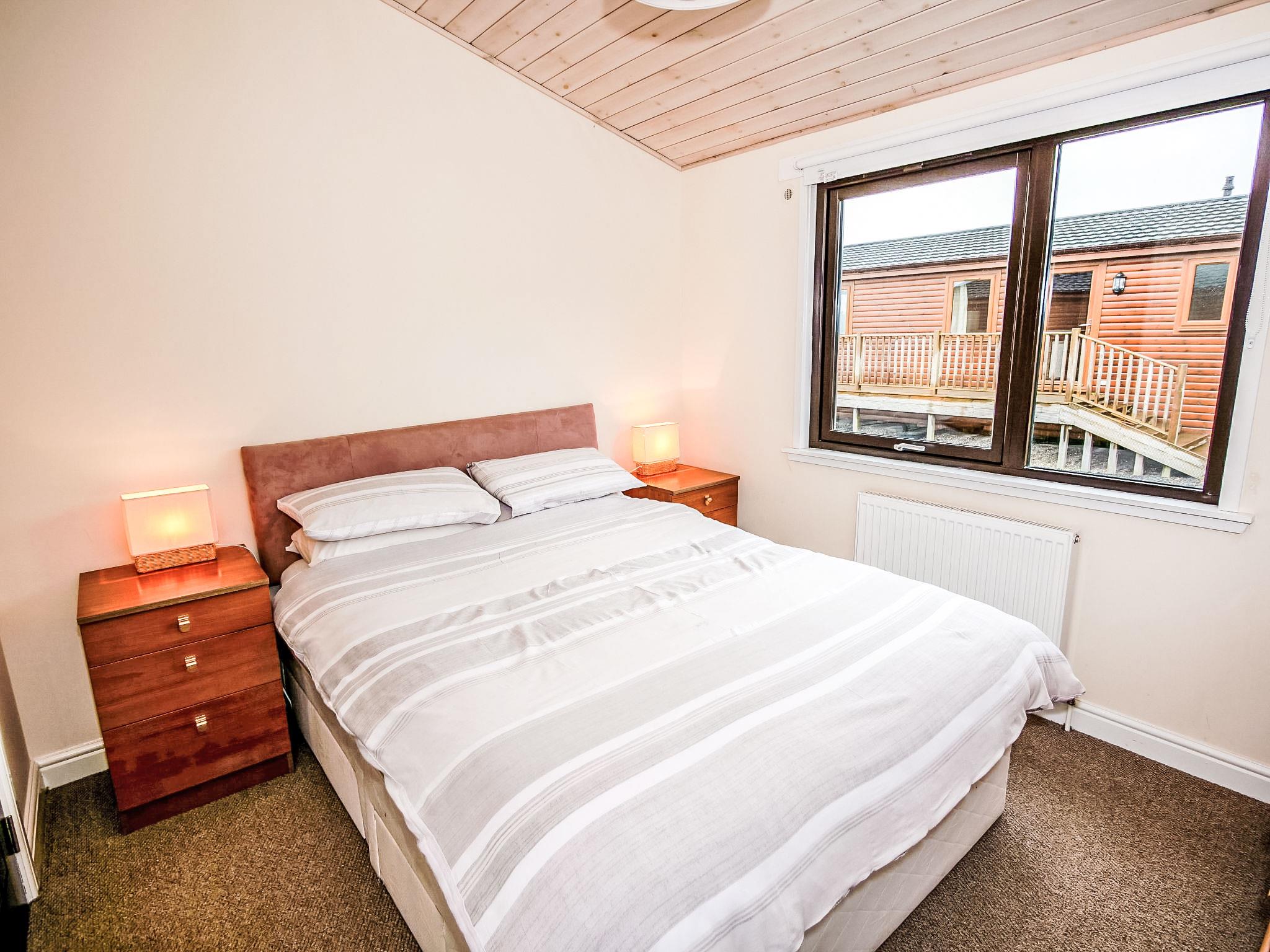 Modern, comfortable chalet "Loch Leven Lodge", detached. In the district of Kinross, 20 m from the lake. In the house: WiFi, bicycle rental. (extra). Parking. Shop 9 km, grocery 9 km, supermarket 9 km, restaurant 9 km, café 200 m, bus stop "Kinross Park and Ride" 9 km. Golf course (18 hole) 5 km. Nearby attractions: Edinburgh 40 km, Perth 27 km, Stirling 37 km, St Andrews 46 km, Gleneagles 28 km.