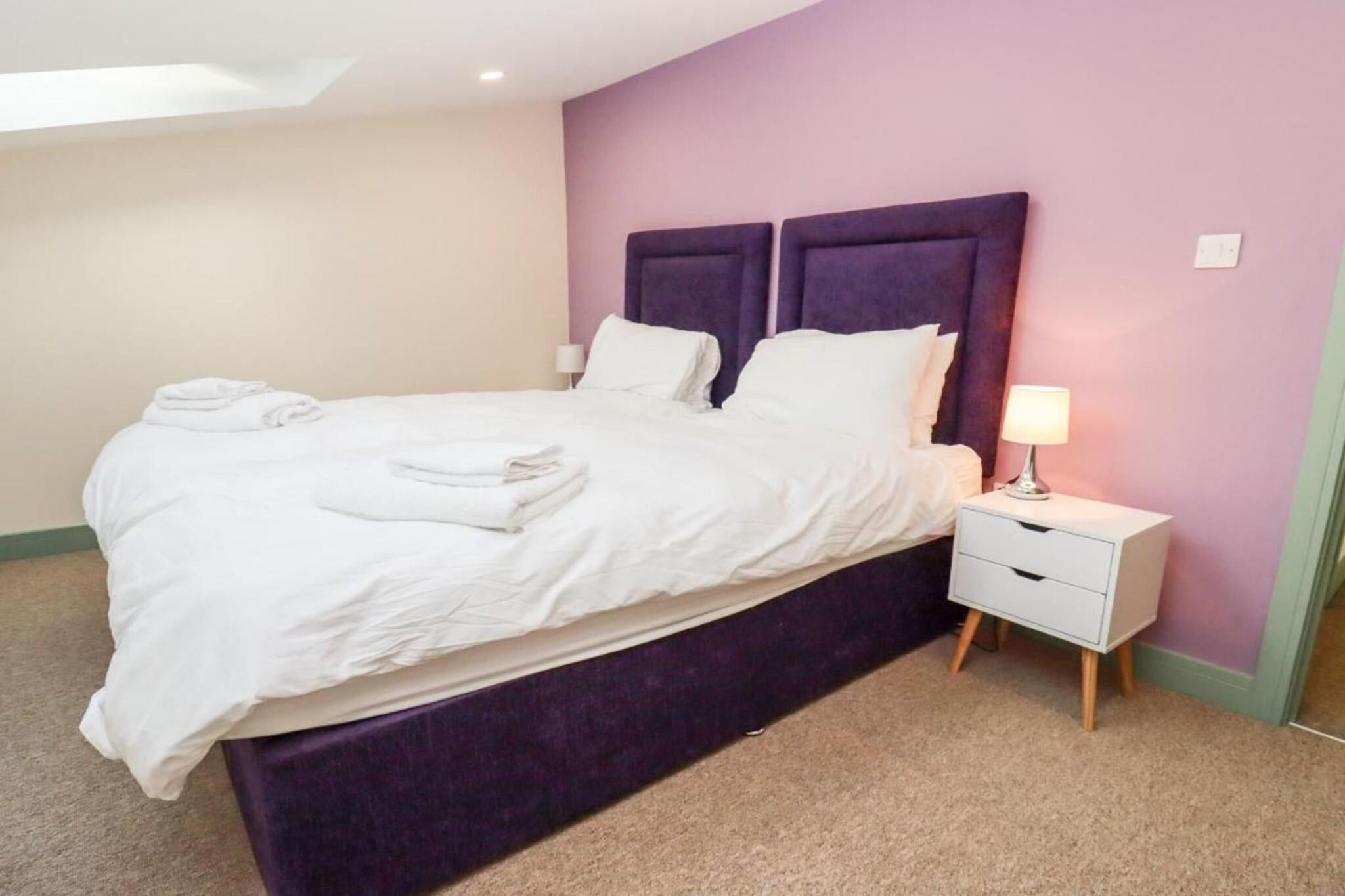 Beliggende i den charmerende landsby Little Rissington i Cotswolds, tilbyder denne stilfulde staldombygning et komfortabelt og moderne tilflugtssted perfekt for familier, venner eller par. Med en blanding af moderne bekvemmeligheder og naturskønne omgivelser er det en ideel base for at udforske skønheden i Cotswolds. Opholdsstuen i åbent plan er designet til afslapning og bekvemmelighed og byder på et smart-tv, Wi-Fi og dobbelte døre, der åbner til en privat have. Det fuldt udstyrede køkken omfatter en elektrisk ovn, kogeplader, mikroovn, køleskab, fryser, opvaskemaskine og en tankevækkende velkomstpakke. En spiseplads giver plads til fælles måltider, mens et bryggers med vaskemaskine og tørretumbler sikrer ekstra bekvemmelighed. Det store soveværelse i stueetagen har en kingsize seng og en-suite med brusekabine. Ovenpå finder du et dobbeltværelse og et dobbeltværelse med lynlås-og-link-senge, hvilket gør det til et alsidigt valg for familier eller grupper. To slanke badeværelser sikrer komfort og privatliv for alle gæster. Laden har en privat have med spabad, udendørs siddepladser og naturskøn udsigt - perfekt til at slappe af efter en dag med udforskning. Placeringen er ideel til at opdage nærliggende attraktioner såsom Bourton-on-the-Water, kendt som "Cotswolds Venedig", og Bibury, berømt for sin ikoniske Arlington Row. Nyd vandrestier, cykelruter og familievenlige attraktioner som Birdland Park and Gardens.