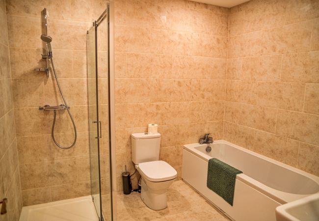 On the ground floor, there is a shower room with a cubicle shower and toilet. Upstairs, the first-floor features four comfortable bedrooms: Bedroom 1 with a king-size bed and en-suite bathroom with a cubicle shower and toilet; Bedroom 2 with another king-size bed; Bedroom 3 with a double bed; and Bedroom 4 with two single beds. The family bathroom includes a bath, cubicle shower, and toilet, ensuring comfort for all guests.