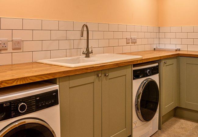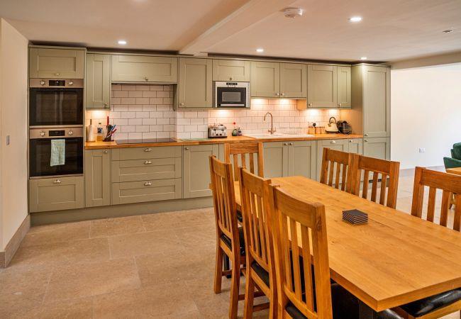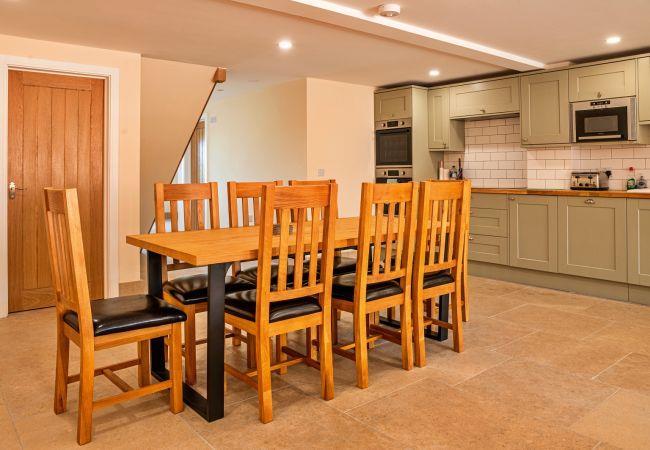 Barn Six, sleeping up to eight guests, offers a spacious open-plan living space with a smart TV and bi-fold doors leading to the private garden. The dining area is perfect for shared meals, while the fully equipped kitchen includes an electric oven, electric hob, microwave, fridge, freezer, dishwasher, and a welcome pack for your convenience. A utility room with a washing machine and tumble dryer makes for an easy self-catered stay.