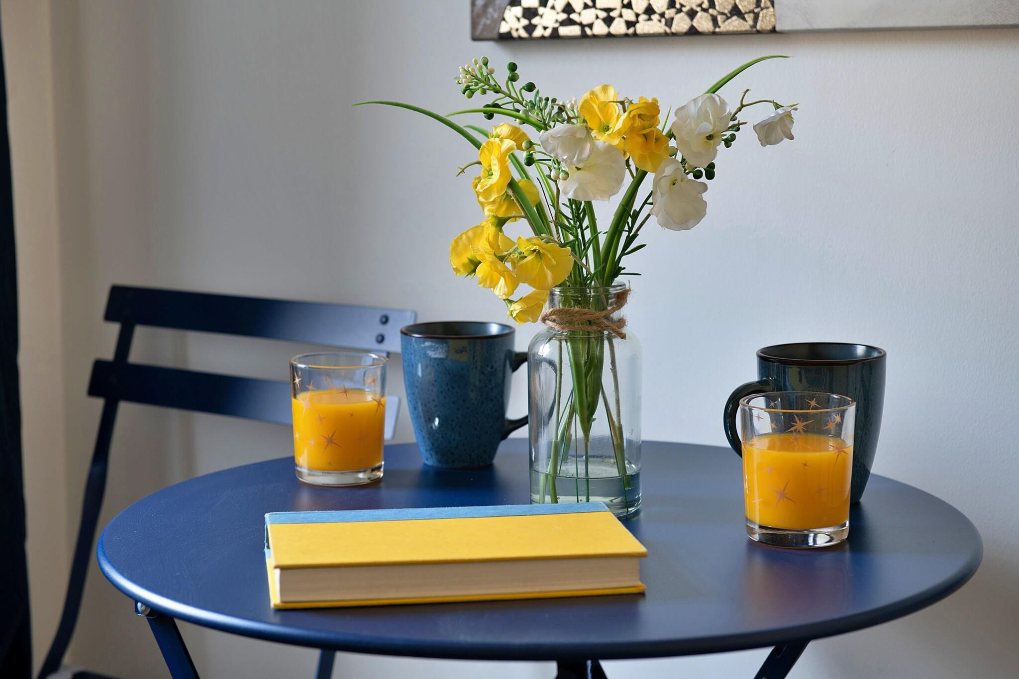 Stue(dobbeltsovesofa, Fjernsyn, spisebord, sofahjørne), Køkken(elkedel, brødrister, ovn, køleskab), soveværelse(dobbeltseng), badeværelse(bruser), Internetadgang, Havemøbler, balkon, varme(central), varme,