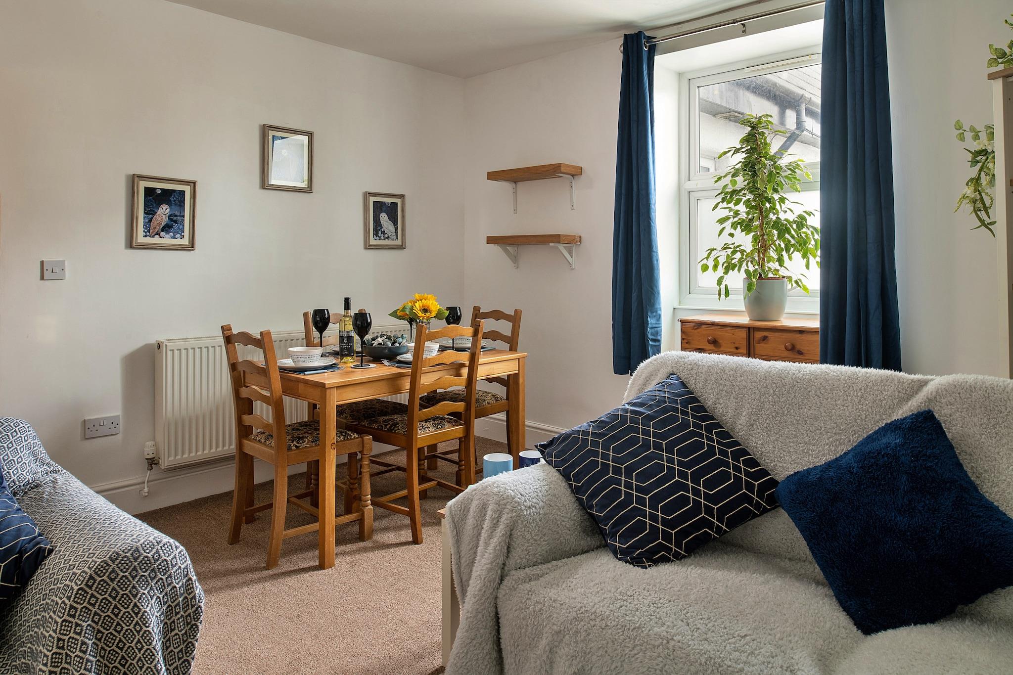 Træd ind i et hyggeligt tilflugtssted i hjertet af Llanberis, hvor charmerende indkvartering og betagende natur samles for at skabe en uforglemmelig ferie. Denne indbydende etværelses lejlighed er designet til par, der søger afslapning eller små grupper på op til fire, takket være det komfortable soveværelse med dobbeltseng og en praktisk sovesofa i loungen. Hver detalje er blevet omhyggeligt sammensat for at sikre en varm og indbydende atmosfære, hvilket gør det til et perfekt hjem væk fra hjemmet. Indenfor finder du et fuldt udstyret køkken, der gør det nemt at piske dine yndlingsmåltider sammen, suppleret med en varm og smagfuldt møbleret stue/spisestue. Tilbring rolige aftener puttet sammen på sofaen, mens du nyder dine yndlingsprogrammer på Smart TV, eller saml dig omkring spisebordet til et lækkert måltid. Træd ud på den charmerende balkon, komplet med astro-græs, hvor du kan nyde din morgenkaffe eller en afslappende aften med dine kære - perfekt til at nyde den fredfyldte stemning i dine omgivelser. Når lysten til at udforske melder sig, vil du være omgivet af Snowdonia National Parks fantastiske skønhed. Majestætiske bjerge og rolige søer lokker til eventyr. Uanset om du vælger at tackle det formidable Mount Snowdon eller tage en afslappet spadseretur rundt i Llyn Padarn, er områdets naturlige vidundere lige ved hånden. Gå ikke glip af chancen for at fordybe dig i den lokale kultur ved at besøge National Slate Museum eller tage en naturskøn tur med damptog på Snowdon Mountain Railway for en spektakulær udsigt over landskabet. Denne fortryllende flugt kombinerer komfort, eventyr og et strejf af historie for en uforglemmelig oplevelse i det fantastiske Wales.