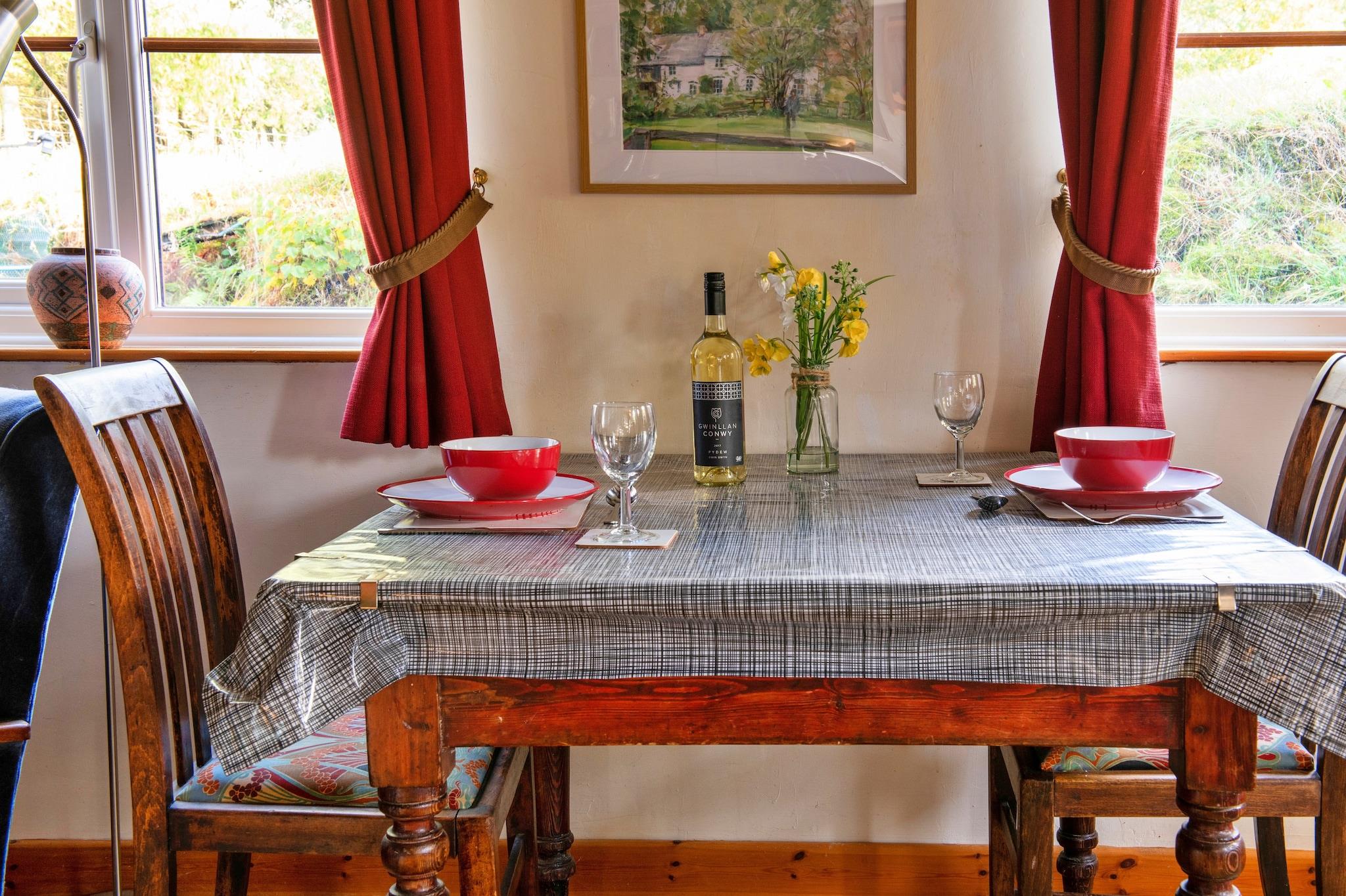 Gemt væk i de fredelige bakker i midt-Wales tilbyder dette historiske 1-værelses sommerhus et roligt landskab, ideelt for par, der søger et roligt tilflugtssted eller naturelskere, der ønsker at udforske den omkringliggende vildmark. Ejendommen var engang en victoriansk kornbutik for Great Cantal Mill fra det 17. århundrede, og ejendommen er blevet sympatisk omdannet for at bevare originale træk såsom synlige bjælker og rustikke stenvægge, alt imens den tilbyder komforten ved en moderne livsstil. Indenfor vil gæsterne finde et hyggeligt åbent køkken, stue og spisestue med udsigt ud til det fredfyldte landskab, et brusebad i stueetagen og et charmerende soveværelse ovenpå med en dobbeltseng og en ekstra enkelt sovesofa - ideel til en tredje gæst, hvis det er nødvendigt. Hytten er kæledyrsvenlig og tillader op til to velopdragne hunde, hvilket gør det perfekt til dem, der ønsker at udforske med deres firbenede ledsagere. Beliggende kun 30 minutter fra den berømte Hay Festival og nær kurbyen Llandrindod Wells, er ejendommen omgivet af vandreruter, herunder Glyndwr's Way og tæt på fredede områder såsom Beacon Hill Common og Tylcau Hill naturreservat. Med parkering på stedet (begrænset til én bil), rolige omgivelser ved floden og nærliggende muligheder for fuglekiggeri og dyreliv, er denne hytte en vidunderlig base for at genskabe forbindelsen til naturen i naturskønne, etagers omgivelser.