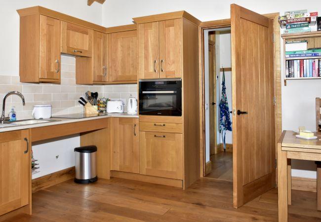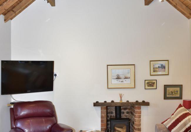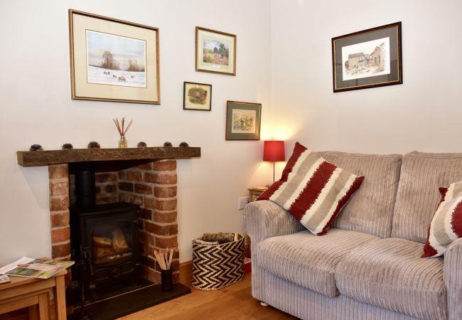 The living room comes with a log-burner perfect for cosy nights in, which combined with the exposed beams make Cheese Room Cottage a characterful and comfortable place to enjoy a getaway.