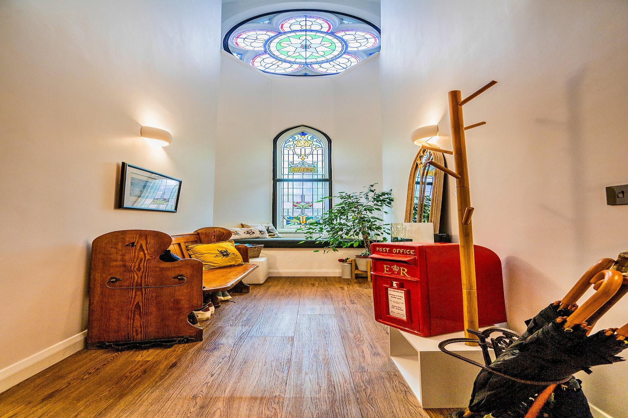 Oplev en fantastisk lejlighed i Matlock, perfekt egnet til op til fire gæster, der søger både en weekendophold og et længere ophold i denne charmerende by. Beliggende inden for de historiske mure af en forvandlet kirke, har denne rummelige to-etagers indkvartering et stilfuldt og moderne åbent tekøkken og opholdsstue. Unik indretning supplerer smukt de originale funktioner, herunder imponerende farvede glasvinduer og hvælvede lofter. Samspillet mellem naturligt lys, der strømmer gennem buevinduerne, skaber en fredfyldt og indbydende atmosfære, hvilket gør det til den perfekte baggrund for afslapning og foryngelse. På første sal finder du to elegant indrettede dobbeltværelser, der lover afslappende nætter, sammen med et velindrettet badeværelse udstyret med bruser over badekarret, toilet og håndvask. Denne lejlighed ligger kun en kort gåtur fra centrum af Matlock, hvilket gør den til en ideel base for at udforske det maleriske Peak District og det fortryllende Derbyshire-landskab. Med sine livlige bygninger langs floden Derwent har Matlock været et elsket turistmål siden slutningen af ??det 17. århundrede, da dens spavand blev opdaget. Gæster kan nyde afslappede gåture gennem Riverside Gardens, tage på naturskønne vandreture langs Lovers Walks og Giddy Edge eller vandre til High Tor for at få en betagende panoramaudsigt. Bemærk venligst, at dette smukke tilflugtssted ikke er egnet for børn under 10 år, og vi er ikke i stand til at rumme kæledyr eller polterabend-grupper. Mens gæster har adgang til et tekøkken, skal du være opmærksom på, at det ikke inkluderer et fuldt udstyret køkken.