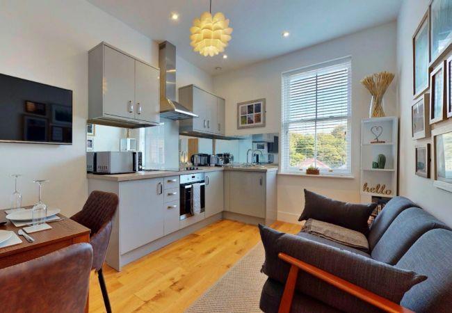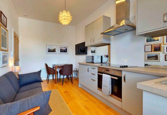 Layout of the furniture is absent of clutter but not minimalistic. The contemporary style has been designed to provide comfort and a sense of order. Peak Dale is located on the first floor and is fully equipped with all amenities guests expect from a highly rated accommodation, including Wi-Fi, HDTV and induction cooker.