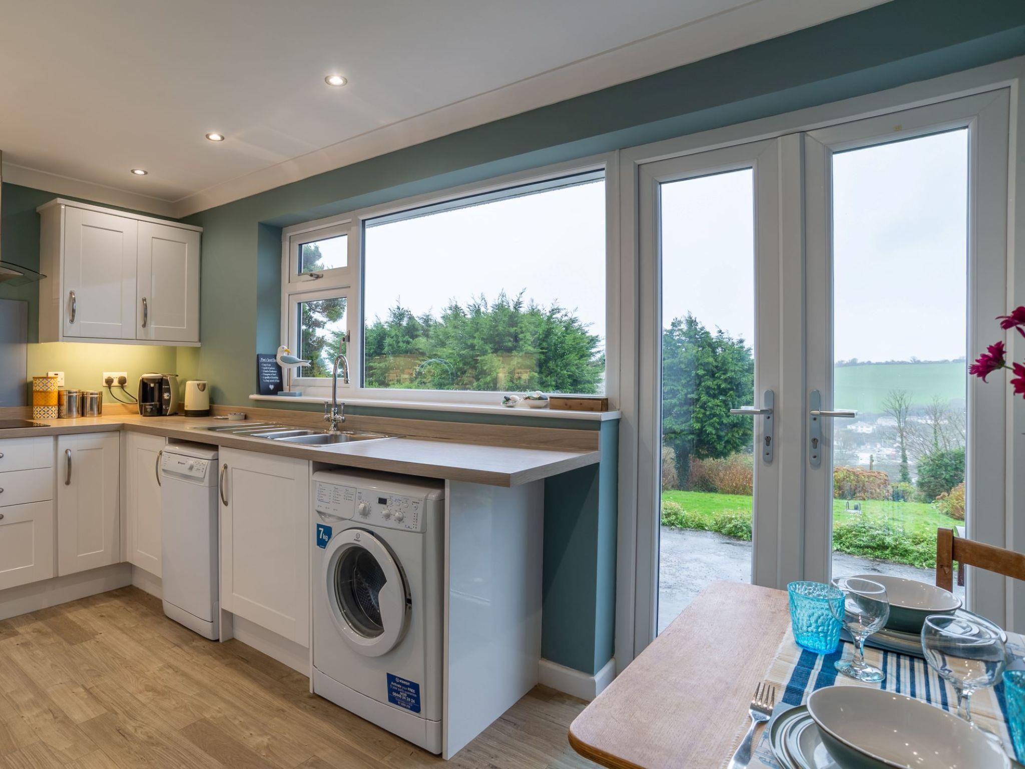 Modern, cosy bungalow "Valley View", detached. In the resort Portmellon, on the outskirts Mevagissey, in a quiet position, 200 m from the edge of the forest, 200 m from the sea, 200 m from the beach, in a cul-de-sac. Private: large garden, lawn for sunbathing. Patio, garden furniture, fireplace. In the house: WiFi, central heating system, washing machine, tumble dryer. Parking (for 2 cars) at the house. Shop 1 km, grocery 6 km, supermarket 6 km, restaurant 1 km, bar 200 m, bakery 1 km, café 1 km, bicycle rental 4 km, pub garden 200 m, bus stop "Portmellon" 500 m, railway station "St Austell" 6 km, sandy beach "Portmellon" 200 m pebble beach "Chapel Point" 500 m, park "Mevagissey" 1 km. Golf course (18 hole) 6 km, tennis 1 km, sports centre 1 km, walking paths from the house 100 m, fishing possibilities 200 m. Nearby attractions: The Lost Gardens of Heligan 3 km, Charlestown Historic Harbour 8 km, The Eden Project 16 km, Mevagissey Harbour 1 km, Caerhayes Beach 10 km, Lanhydrock House & Garden 36 km. Well-known lakes can easily be reached: Silbyback Lake 46 km. Hiking paths: South West Coast Path 100 m, Saints Trail 12 km, Kingswood Pentewan 4 km. Please note: baby equipment on request. Loading and unloading of baggage is possible at the holiday house.