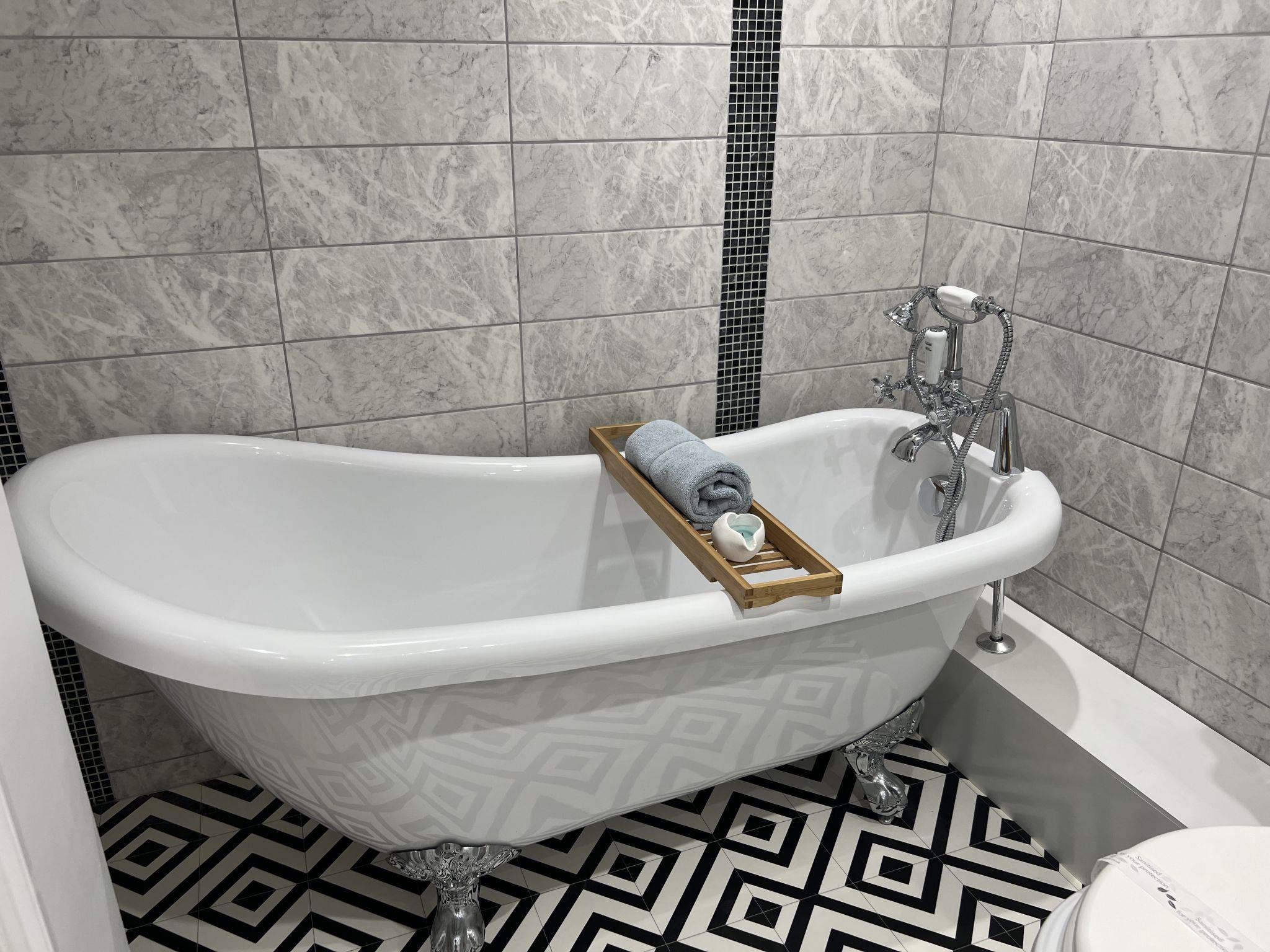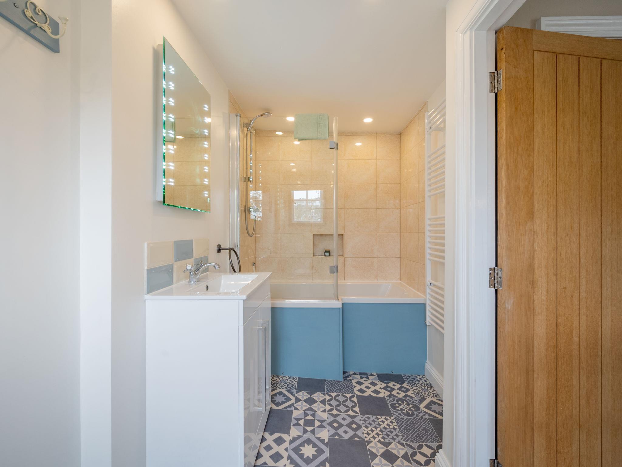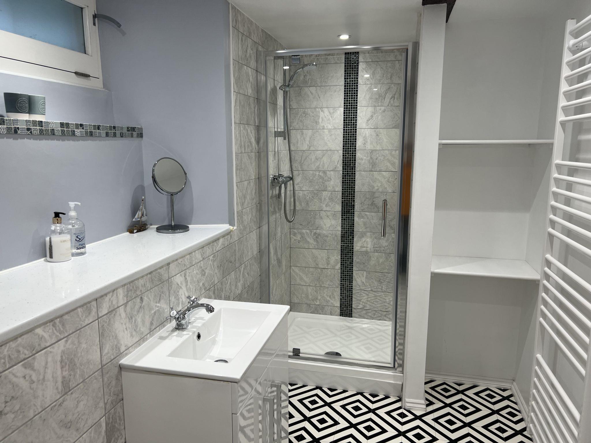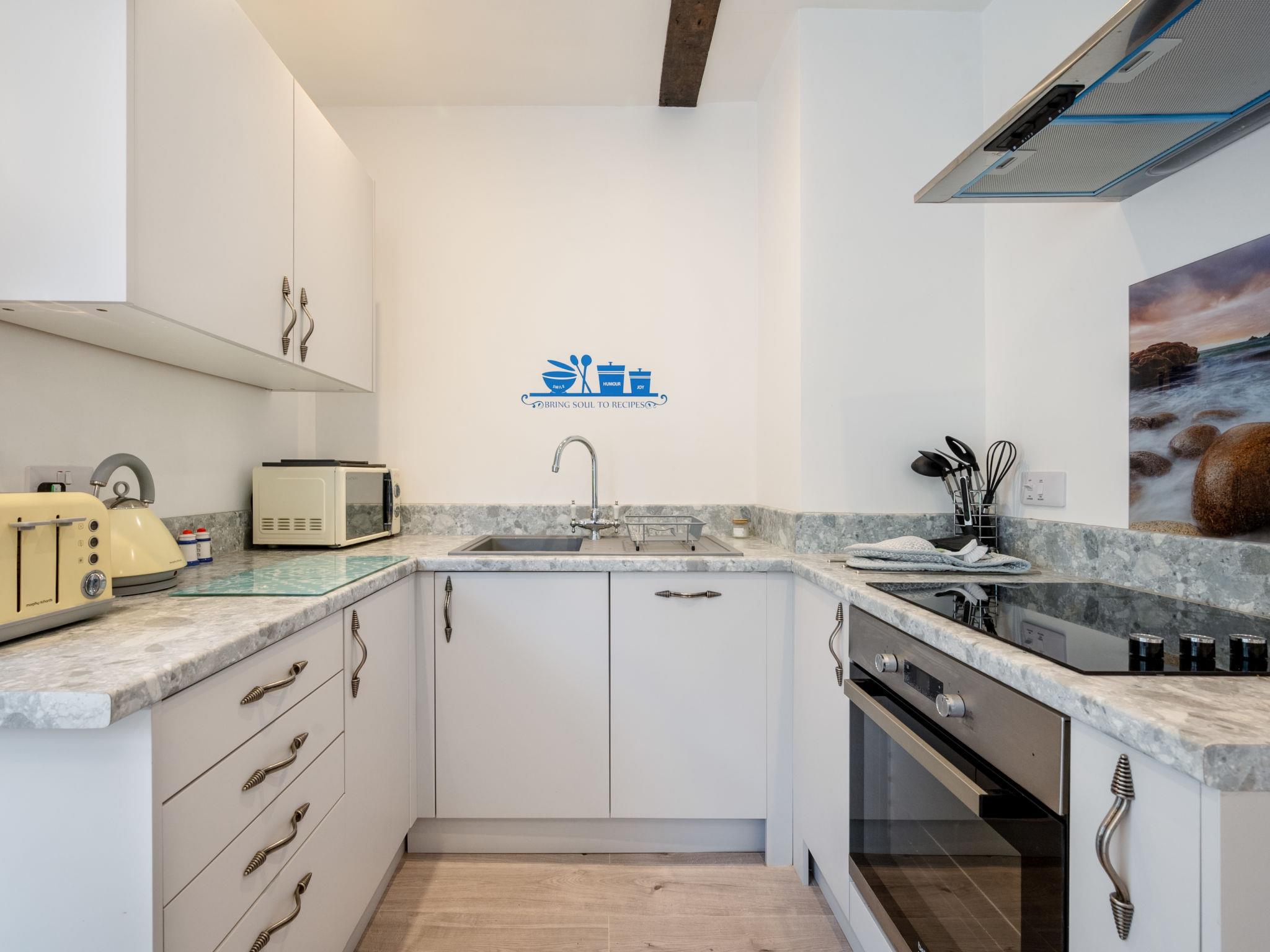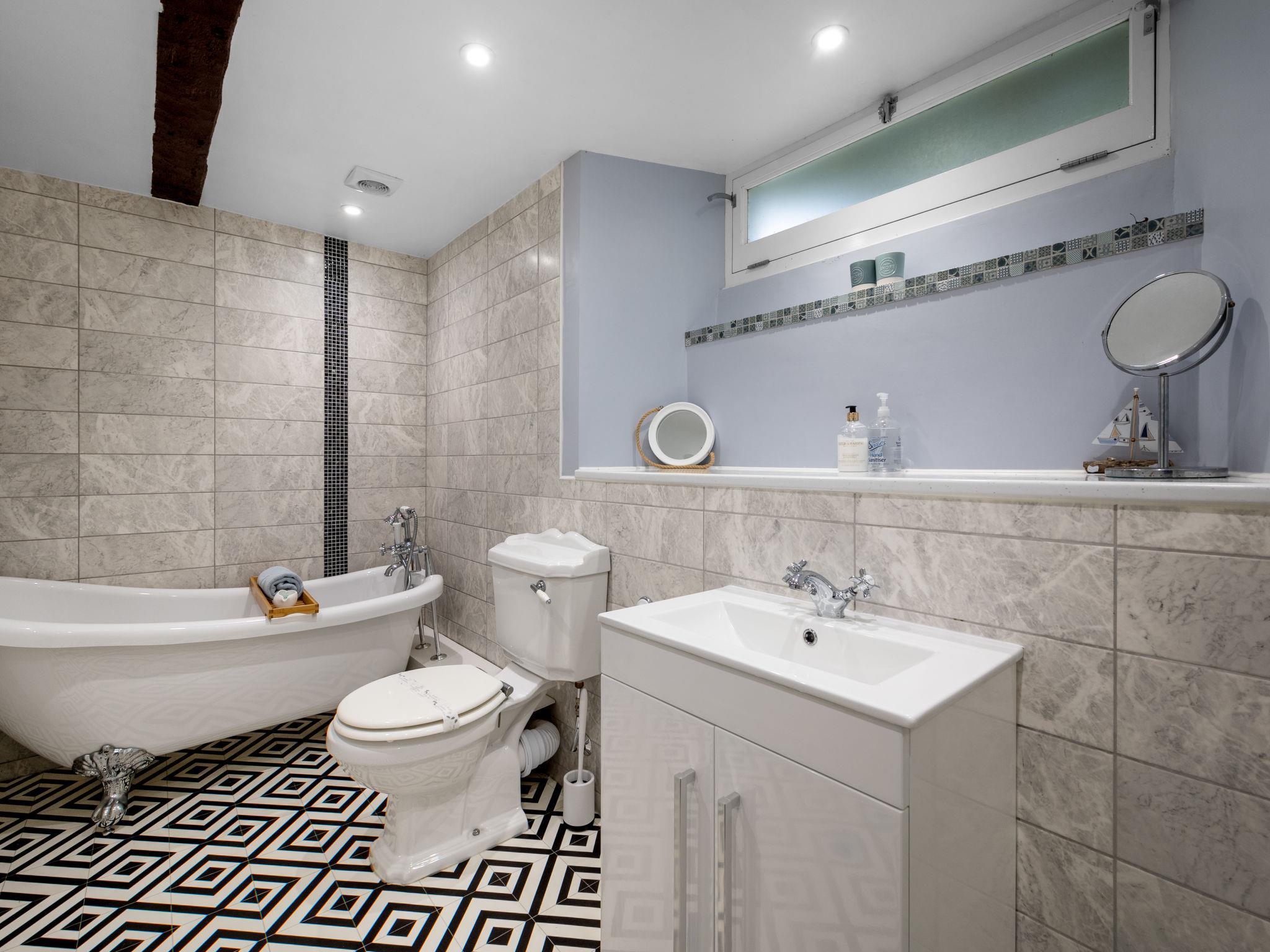 "Cherry Orchard Cottage", 3-room cottage on 3 levels. Fully renovated in 2020, beautiful and tasteful furnishings: open living/dining room with digital TV and electric heating. Open kitchen (oven, dishwasher, 4 ceramic glass hob hotplates, toaster, kettle, microwave). On the lower ground floor: 1 double bedroom with 1 double bed and bath/shower/WC. Exit to the garden. Upper floor: 1 double bedroom with 1 double bed and TV. Bath/shower/WC. Facilities: Internet (WiFi, free). Please note: smoke alarm, fire extinguisher. Beautiful 3 storey cottage in the heart of the village with parking and a garden.