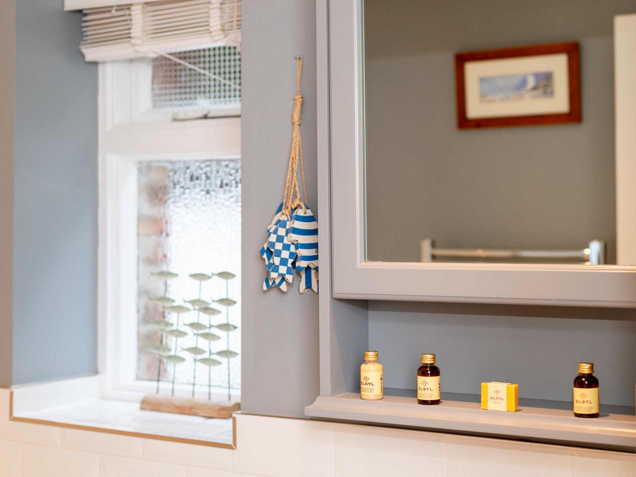 "Elm Cottage", 4-room cottage. Beautiful and stylish furnishings: open living/dining room with dining table, TV, DVD and electric heating. Kitchen (oven, 4 ceramic glass hob hotplates, toaster, kettle, microwave). Exit to the patio. Upper floor: 2 double bedrooms, each room with 1 double bed. 1 double bedroom with 2 beds (90 cm, length 190 cm). Bath/shower/WC. Partial view of the town. Facilities: washing machine. Internet (WiFi). Please note: TV only EN.