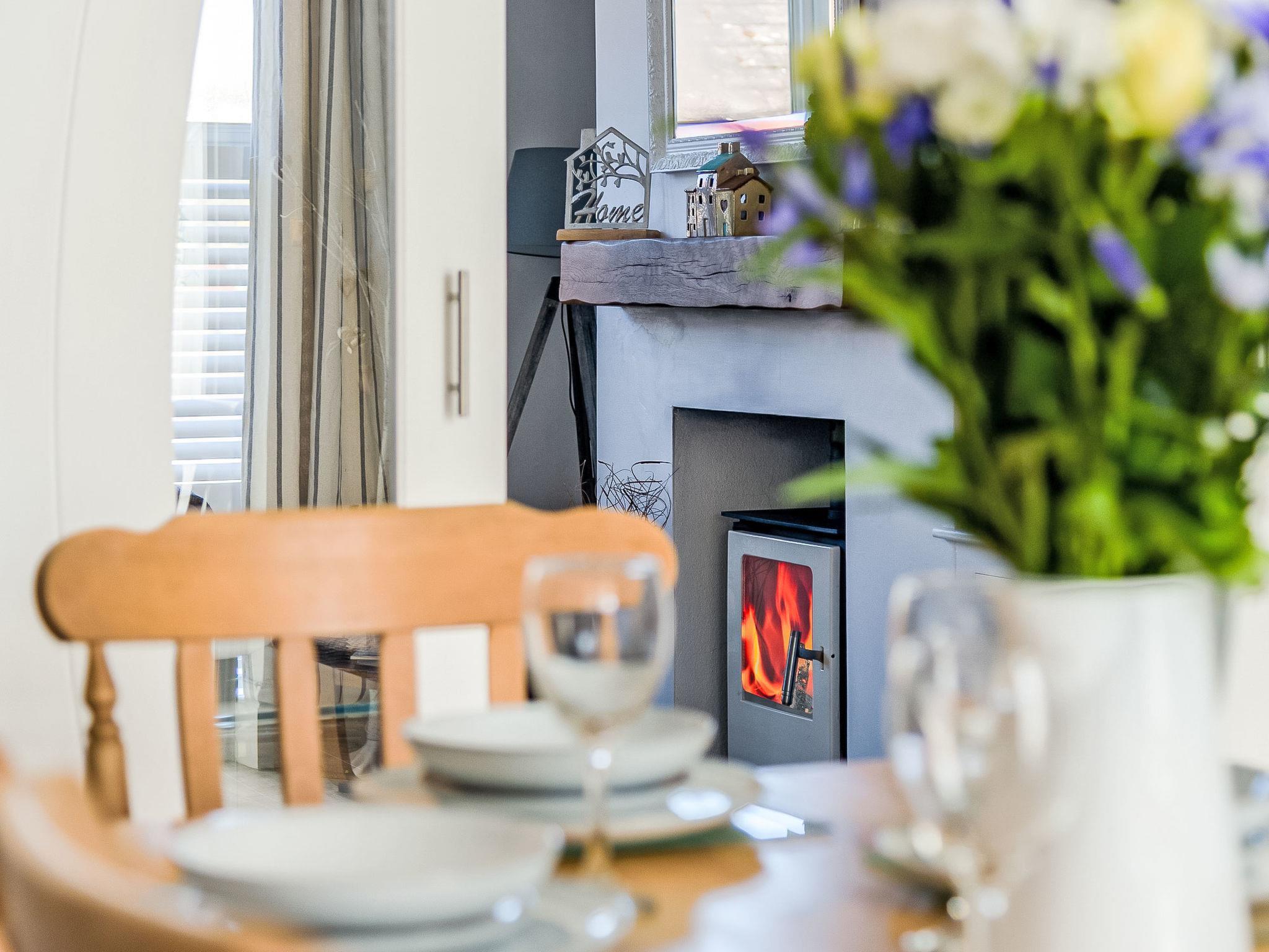 "Lighthouse Watch", 5-room house. Spacious and bright, modern and stylish furnishings: living room with TV (flat screen), wood-burning stove. Large kitchen (oven, dishwasher, 4 ceramic glass hob hotplates, toaster, kettle, microwave, freezer). Exit to the terrace. Sep. WC. Upper floor: 1 double bedroom with 1 double bed. Exit to the balcony. 1 double bedroom with 1 double bed. Shower/WC. 2nd upper floor: 1 large double bedroom with 2 beds (90 cm, length 190 cm), TV (flat screen). Large terrace, small terrace. Terrace furniture. Beautiful view of the sea and the town. Facilities: washing machine, dryer, children's high chair, baby cot. Internet (WiFi, free). Parking. Please note: suitable for families. Maximum 1 pet/ dog allowed. TV only EN. Smoke alarm, fire extinguisher.