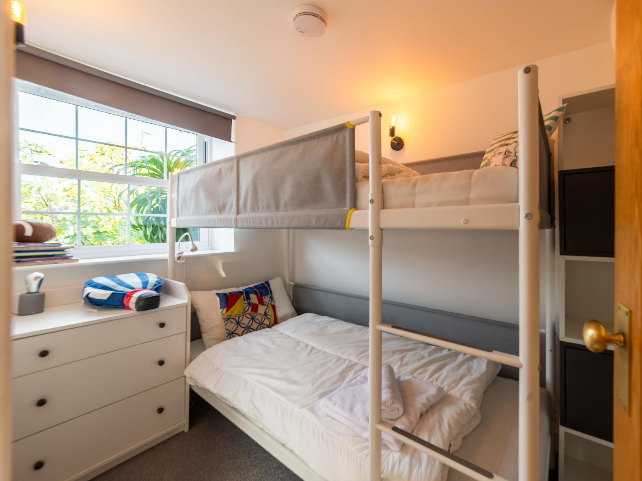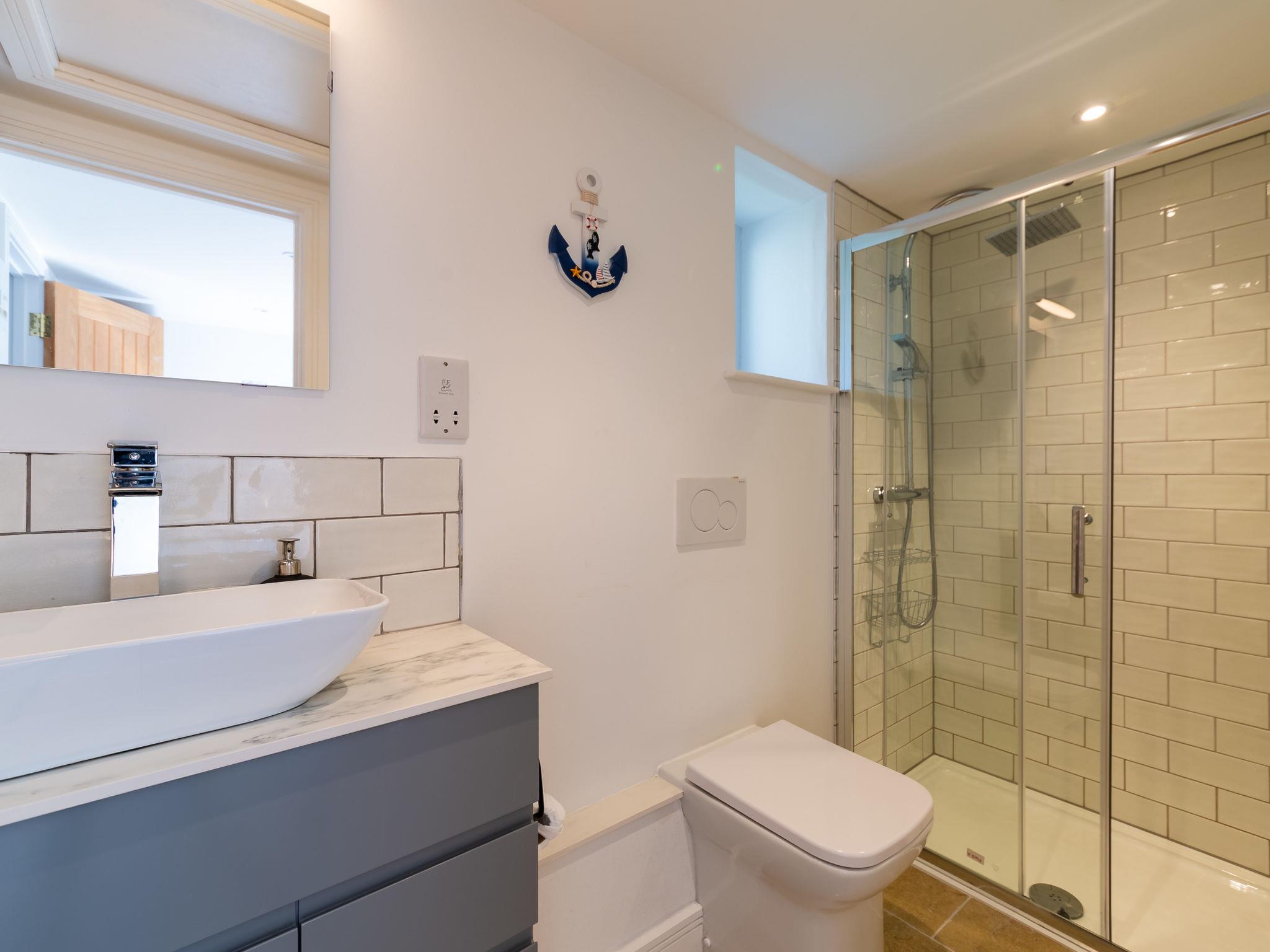Mevagissey: Please note this property is pedestrian access only. May not be suitable for persons with mobility issues due to the historic cobbled lane. Beautiful house "Shanty Cottage", 2 storeys, renovated in 2022. In the centre of Mevagissey, 750 m from the edge of the forest, 150 m from the sea, 300 m from the beach. Private: small garden. In the house: air conditioning, washing machine, tumble dryer. Steep footpath to the house. Public car park at 400 m, extra. Shop 120 m, grocery 150 m, supermarket 9 km, shopping centre 9 km, restaurant, bar 59 m, bakery 100 m, café 150 m, pub garden 130 m, bus stop "Mevagissey Trevarth" 450 m, railway station "St Austell" 9 km, sandy beach "Polstreath" 800 m pebble beach "East Wharf" 350 m (small). Golf course (18 hole) 7 km, tennis, sports centre 750 m, walking paths from the house 400 m, children's playground 750 m, fishing possibilities 650 m. Nearby attractions: The Lost Gardens of Heligan 4 km, Eden Project 14 km, Caerhays Castle & Beach 7 km, Fowey Harbour 20 km, Tregargus Valley 14 km, Knightor Winery 13 km. Hiking paths: South West Coast Path 150 m.