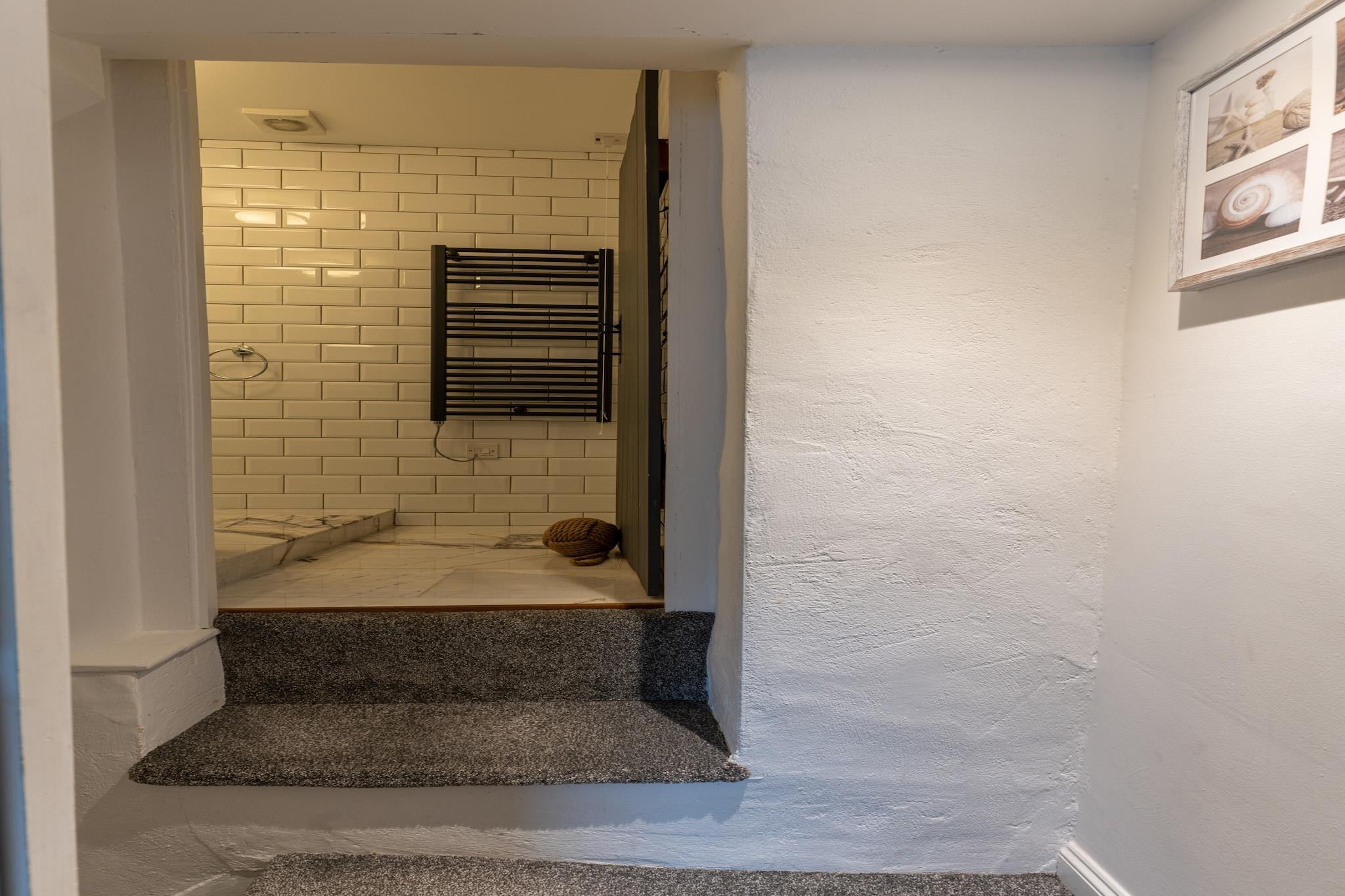 Beliggende i hjertet af den charmerende landsby Mevagissey, er Old Harbour Cottage et stilfuldt og indbydende tilflugtssted, kun få minutter fra havnefronten. Med sit smukt dekorerede interiør og avancerede finish tilbyder denne hytte den perfekte blanding af luksus og komfort til en afslappende ferie ved havet. Ideel til familier eller par, køkkenet og spisestuen i åbent plan er udstyret med moderne apparater, perfekt til at tilberede måltider, som du kan nyde i den hyggelige, velindrettede stue. Et luksuriøst brusebad fuldender dette niveau. Ovenpå finder du to smukt dekorerede soveværelser, hvor masteren tilbyder en kingsize seng og udsigt over byen. Det andet soveværelse, med to singler i fuld størrelse, der kan omdannes til en super-konge, inkluderer et en-suite brusebad. Hytten byder også velkommen til kæledyr, hvilket sikrer, at dine lodne venner kan være med på dit kysteventyr. En højstol er også tilgængelig, hvilket gør den ideel til familier med små børn. Mevagissey byder på et vidunderligt udvalg af uafhængige butikker, caféer og restauranter, og med fantastiske strande som Pentewan Sands og Vault Beach tæt på, vil du aldrig løbe tør for steder at udforske. The Lost Gardens of Heligan og Eden Project er kun en kort køretur væk, hvilket sikrer, at der altid er noget at lave. Selvom der ikke er nogen udpeget parkeringsplads, tilbyder en nærliggende betalings-og-display parkeringsplads praktiske muligheder. For større grupper kan du overveje at booke det tilstødende Porthole Cottage for at rumme op til fire flere gæster.