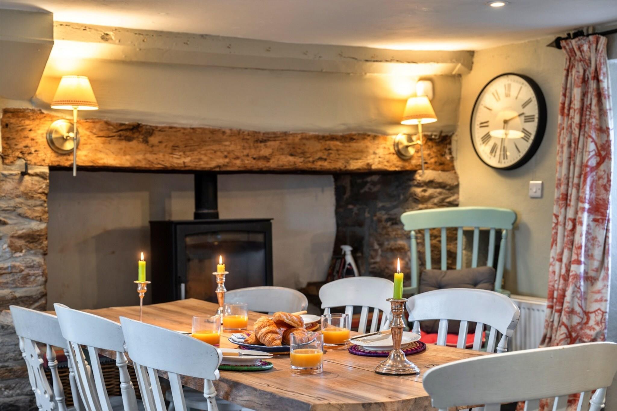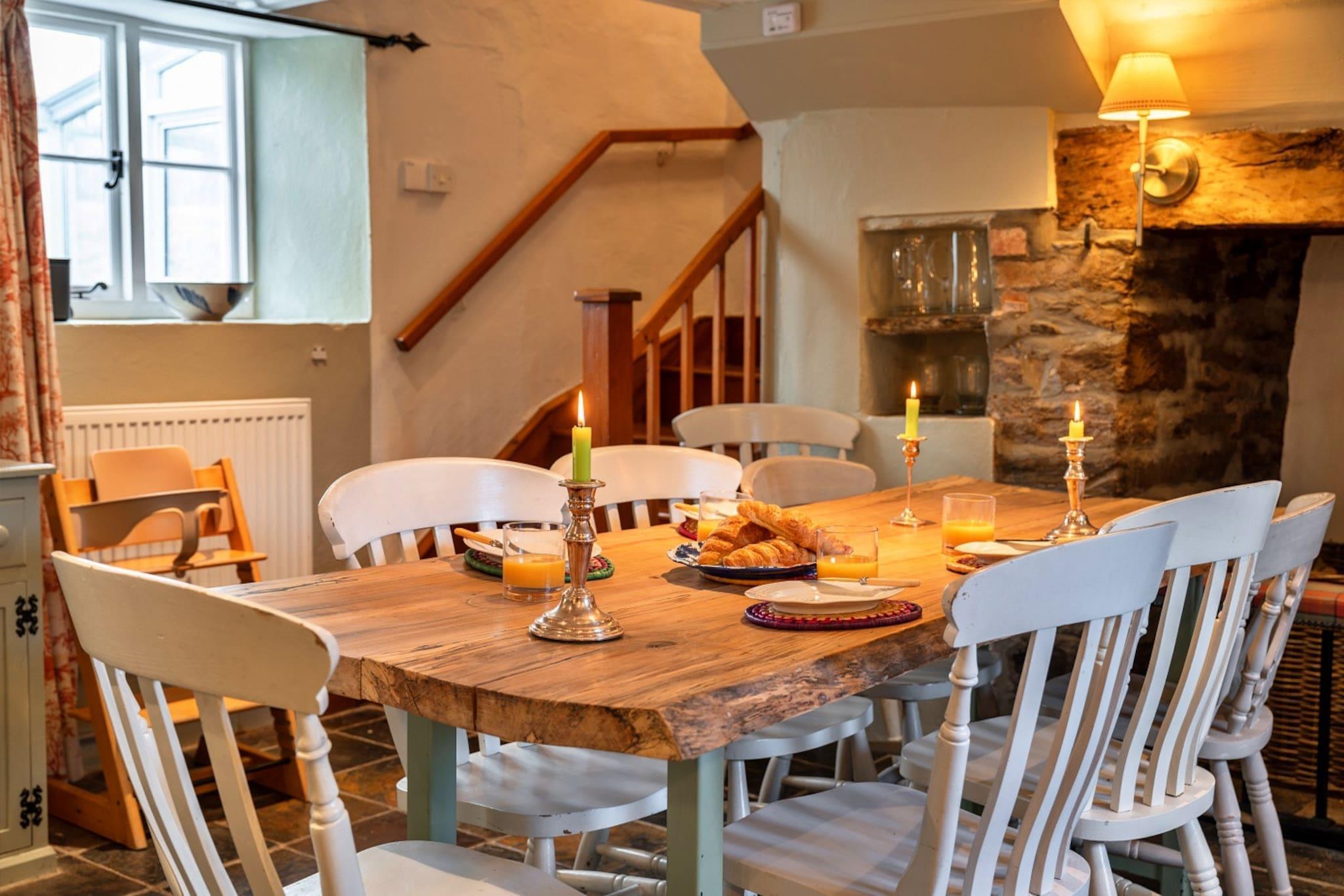 I maleriske omgivelser fungerer dette tilflugtssted som den perfekte tilflugtssted for familier eller grupper, der ønsker at slappe af. Den rummelige ejendom er designet til komfort og bekvemmelighed og kombinerer karakter med moderne bekvemmeligheder. Den hyggelige lounge, med en stor pejs med brændeovn, inviterer dig til at krølle sammen med en bog eller dele historier ved bålet. Det fuldt udstyrede køkken i landlig stil, komplet med et køleskab med fryser i amerikansk stil, ovn, kogeplader og vaskemaskine, gør tilberedning af måltider til en leg. I tilknytning til køkkenet skaber den charmerende spisestue, opvarmet af endnu en brændeovn, den ideelle stemning til at nyde måltiderne sammen, mens den lyse udestue tilbyder en fredelig udsigt over haven, perfekt til afslapning. Stueetagen indeholder et soveværelse med 2 enkeltsenge for gæster, der foretrækker at undgå trapper, ledsaget af et praktisk brusebad. Ovenpå venter fire smukt indrettede soveværelser, med en luksuriøs master med en super-kingsize-seng, to ekstra kingsize-værelser og et dejligt enkeltværelse komplet med en barneseng. Familiebadeværelset er veldesignet til komfort og tilbyder både badekar og separat bruser. I de køligere måneder er en kurv med brænde tilvejebragt for en indbydende atmosfære omkring brændeovnene. Dette kæledyrsvenlige tilflugtssted byder velkommen til op til to velopdragne hunde. Beliggende inden for næsten en hektar af private haver, komplet med en dam og en fantastisk udsigt over hede, kan gæsterne nyde adskillige gåture fra deres dørtrin. Landsbyen Molland, lidt over 1,6 km væk, byder på en lokal pub, mens købstaden South Molton ligger en kort køretur derfra, og byder på uafhængige butikker, restauranter og et pulserende marked med friske lokale råvarer. Perfekt til at udforske det fri eller blot slappe af, dette charmerende hjem sikrer en mindeværdig ferieoplevelse.