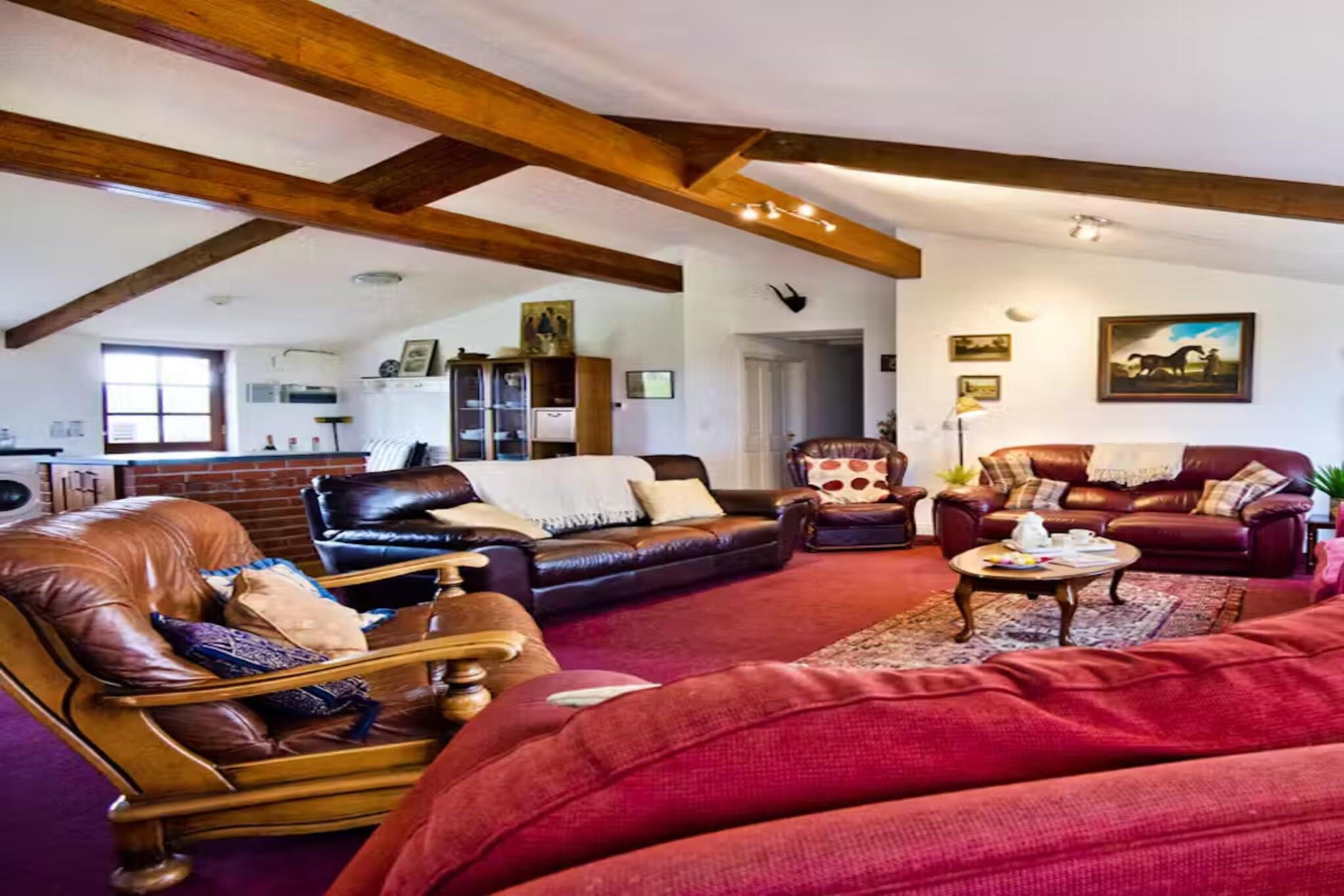Beliggende højt oppe i de bølgende walisiske bakker, tilbyder dette afsondrede gemmested på 13 hektar en sjælden blanding af privatliv, eventyr og tidløs charme. Ejendommen, der engang var opdagelsesrejsende og forfatter Christina Dodwells tilflugtssted på en bakketop, er fyldt med kort, bøger, artefakter og en følelse af rejselyst, der inspirerer fantasien. Omgivet af skov, marker og en storslået udsigt over Raglan Castle og Sugarloaf Mountain, er det et idyllisk sted for familiesammenkomster med flere generationer. Ejendommen er perfekt designet til store grupper og kombinerer et rummeligt bondehus og en smukt ombygget lade med plads til op til 24 gæster fordelt på 10 soveværelser. Du finder tre fuldt udstyrede køkkener, en stor spiseplads og flere opholdsstuer, hvor alle kan slappe af. Udendørs sikrer en opvarmet swimmingpool (sæsonbestemt), spabad, solterrasser, kroketplæne og græsklædte boldspilsområder, at der er noget for enhver alder. Vandrestierne og løbestierne på stedet, der snor sig gennem frugtplantagen og skoven, bringer landskabet lige til din dør. Ejendommen er ideel for dem, der søger både komfort og eventyr, og den passer til storfamilier, vandregrupper og kæledyrsejere, der leder efter åbne vidder at udforske. Bemærk: Prisen inkluderer varme, vand, sengelinned, håndklæder og slutrengøring. 25% depositum ved booking, restbeløb forfalder 8 uger før ankomst. Maks. 24 gæster plus 2 spædbørn. Op til 3 kæledyr tilladt (50 £ pr. person). Indtjekning kl. 16.00, udtjekning kl. 10.00. Kaution på £500 kræves. Ingen polterabender, fyrværkeri eller udendørs musik. Spabad kun kl. 9.00-22.00. Opladning af elbil mulig. Gæster hæfter for skader eller ekstra rengøring. Priserne er kun gyldige indtil den 17. december 2026. Tilbud vil ikke være tilgængelige efter denne dato.
