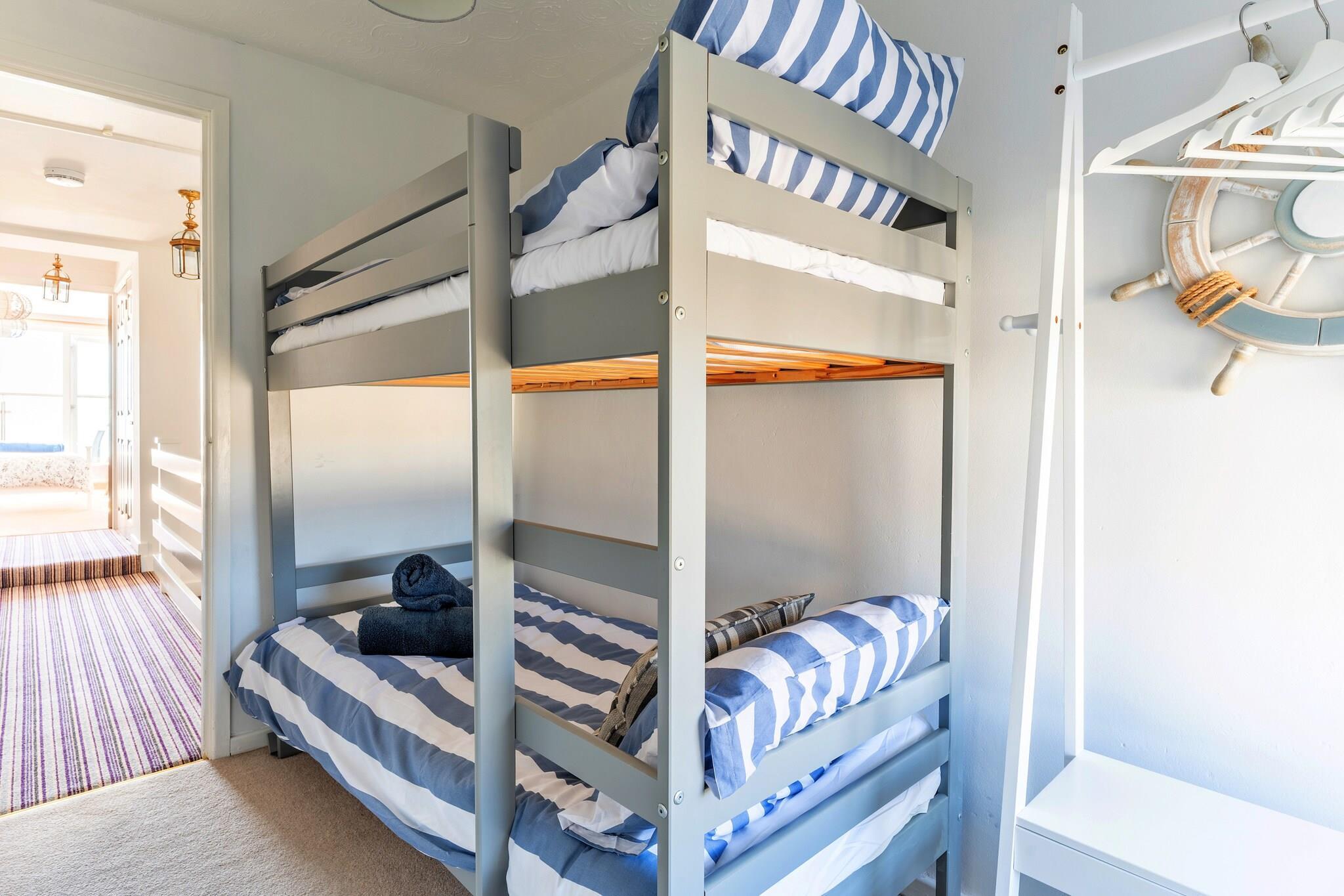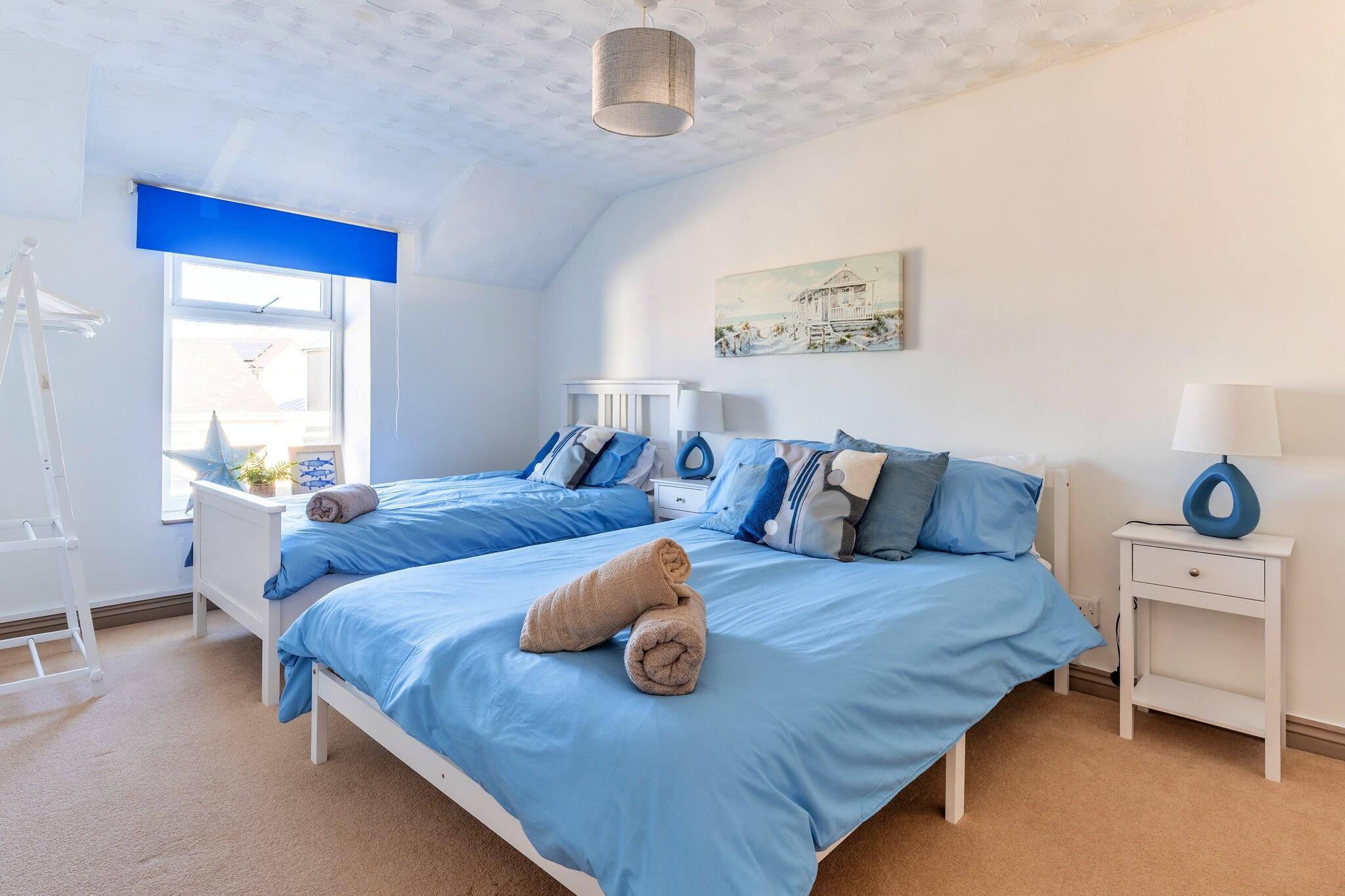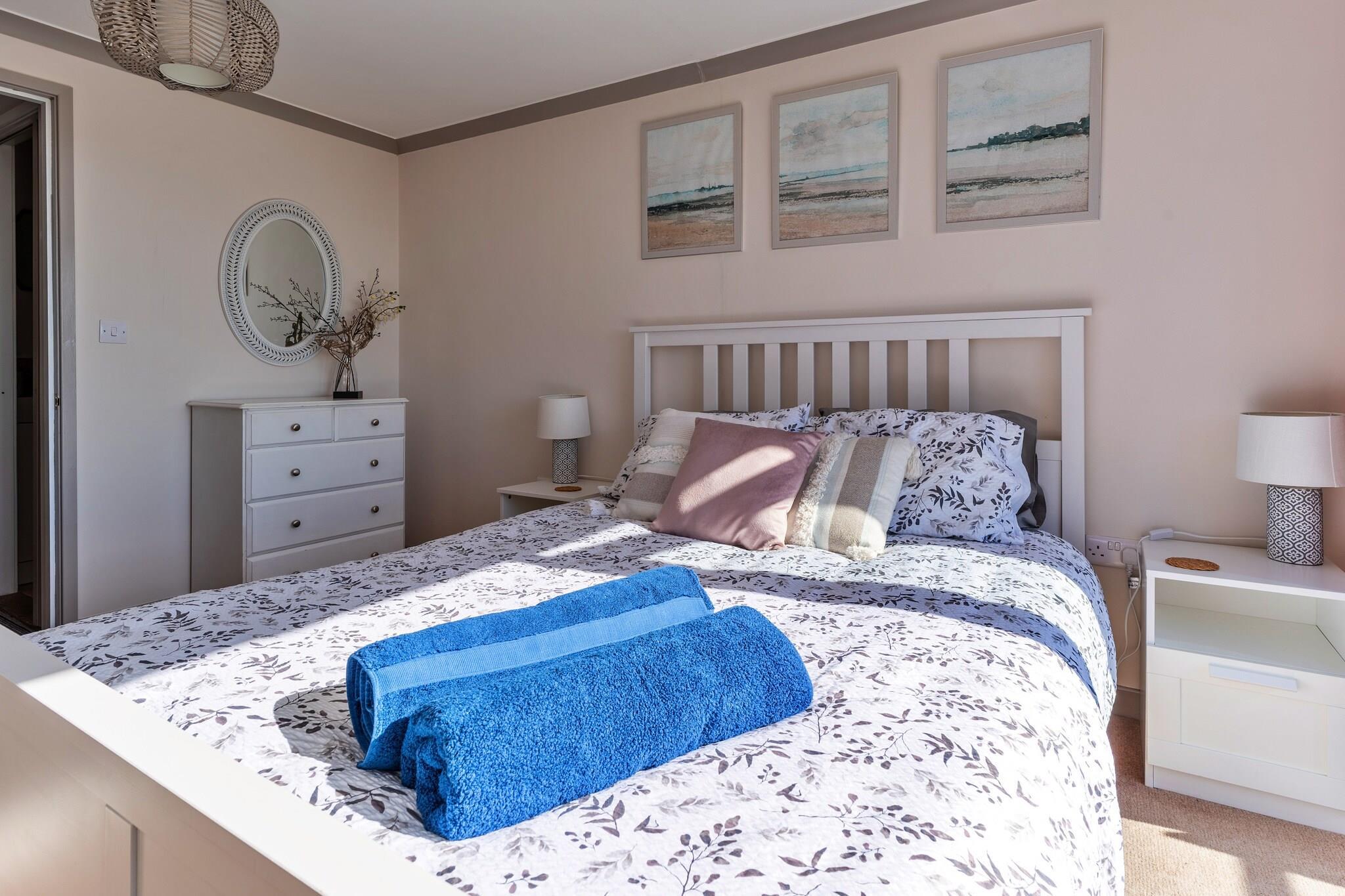 Dette dejlige hus, beliggende i den fredelige landsby Mynytho, kan rumme op til syv gæster fordelt på tre velindrettede soveværelser. Det rummelige soveværelse byder på en king-size seng og en privat balkon med betagende havudsigt. Et andet soveværelse har en dobbeltseng og en enkeltseng, mens det tredje værelse er indrettet med køjesenge, ideel til børn. Hjemmet er kæledyrsvenligt og tager imod en lille til mellemstor hund mod et ekstra gebyr. Gæsterne kan slappe af i solstuen, som åbner direkte ud i haven og giver et roligt udendørsområde til at slappe af. Mynytho, der ligger i det nordlige Wales, tilbyder den perfekte kombination af fredfyldt landskab og nem adgang til fantastiske kystattraktioner. Ejendommen har panoramaudsigt over Cardigan Bay og Snowdonia-bjergkæden, hvilket gør den til en perfekt base for udendørsaktiviteter. Vandre- og cykelstier er lige uden for døren, og de nærliggende strande, herunder Porthdinllaen, byder på muligheder for strandelskere at udforske. Lokale faciliteter, såsom butikker og caféer, er kun en kort gåtur væk, hvilket giver bekvemmelighed under dit ophold. Det fuldt udstyrede moderne køkken sikrer en behagelig selvforplejning, med alle nødvendige apparater til din rådighed. Den hyggelige stue med sin brændeovn tilføjer et varmt og indbydende touch, perfekt til at slappe af efter en dag med eventyr. Hjemmet har også Wi-Fi for at holde gæsterne forbundet. Familiebadeværelset, komplet med separat badekar og brusekabine, sikrer bekvemmelighed, mens et ekstra toilet tilføjer praktisk. Denne ejendom tilbyder et rummeligt og behageligt miljø for gæster, der søger både afslapning og eventyr.
