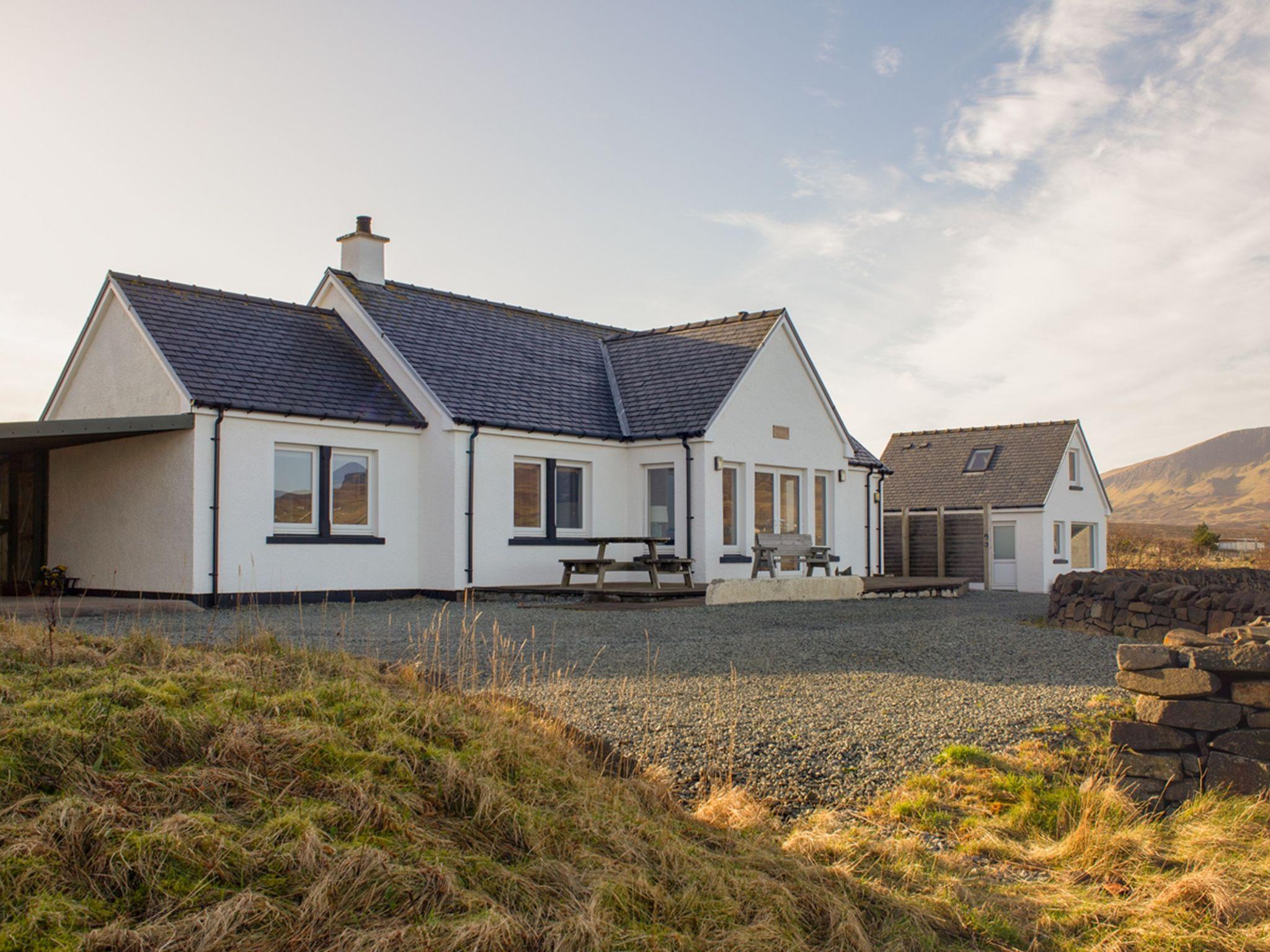 Very beautiful, comfortable cottage "solas Alainn", detached. In the district Staffin, in a secluded, quiet position, 1 km from the sea. For shared use: large garden, natural garden. Garden furniture. In the house: lounge with TV, internet access, WiFi, laundry, washing machine, tumble dryer. Parking (for 2 cars). Shop 1 km, grocery 1 km, supermarket 1 km, restaurant 1 km, bar 6 km, bus stop "junction" 5 km. Nearby attractions: Quirrang 5 km, Corran beach 2 km, Mealt Falls 5 km, The Old Man of Storr 18 km. Please note: car recommended. Baby equipment on request. Additional accommodations can be booked. Property ref. GB8826.353.1 is situated on the same property.