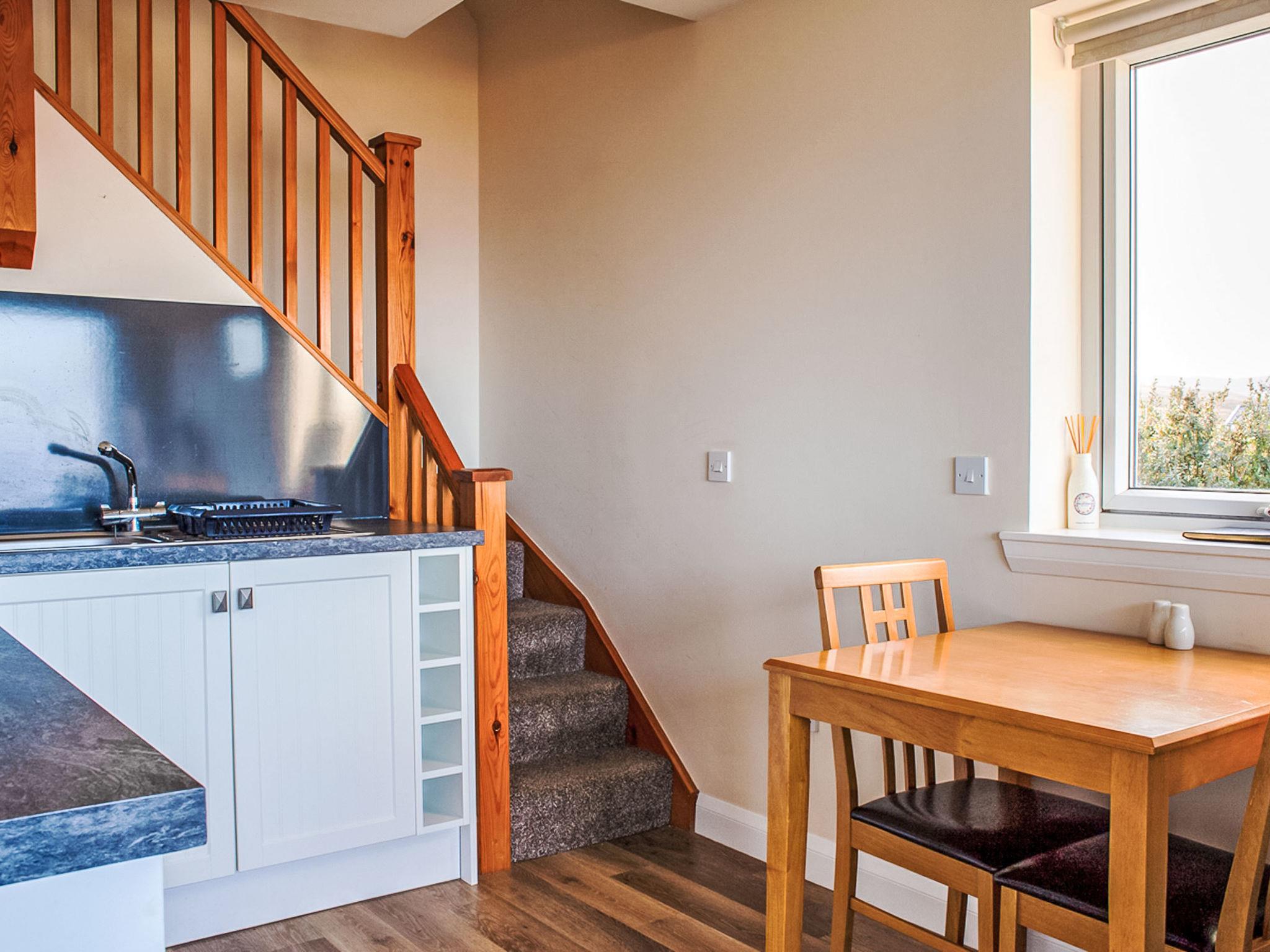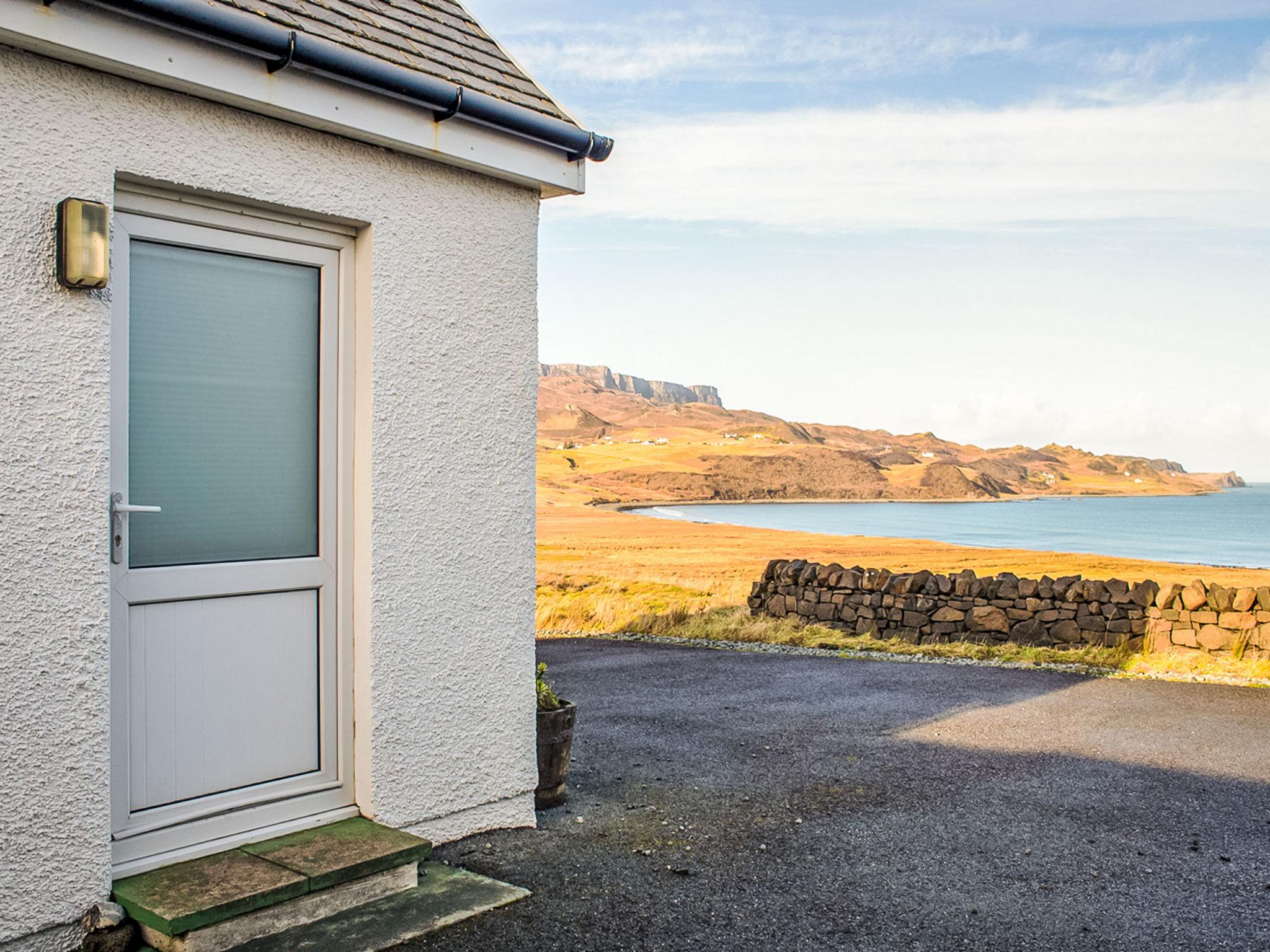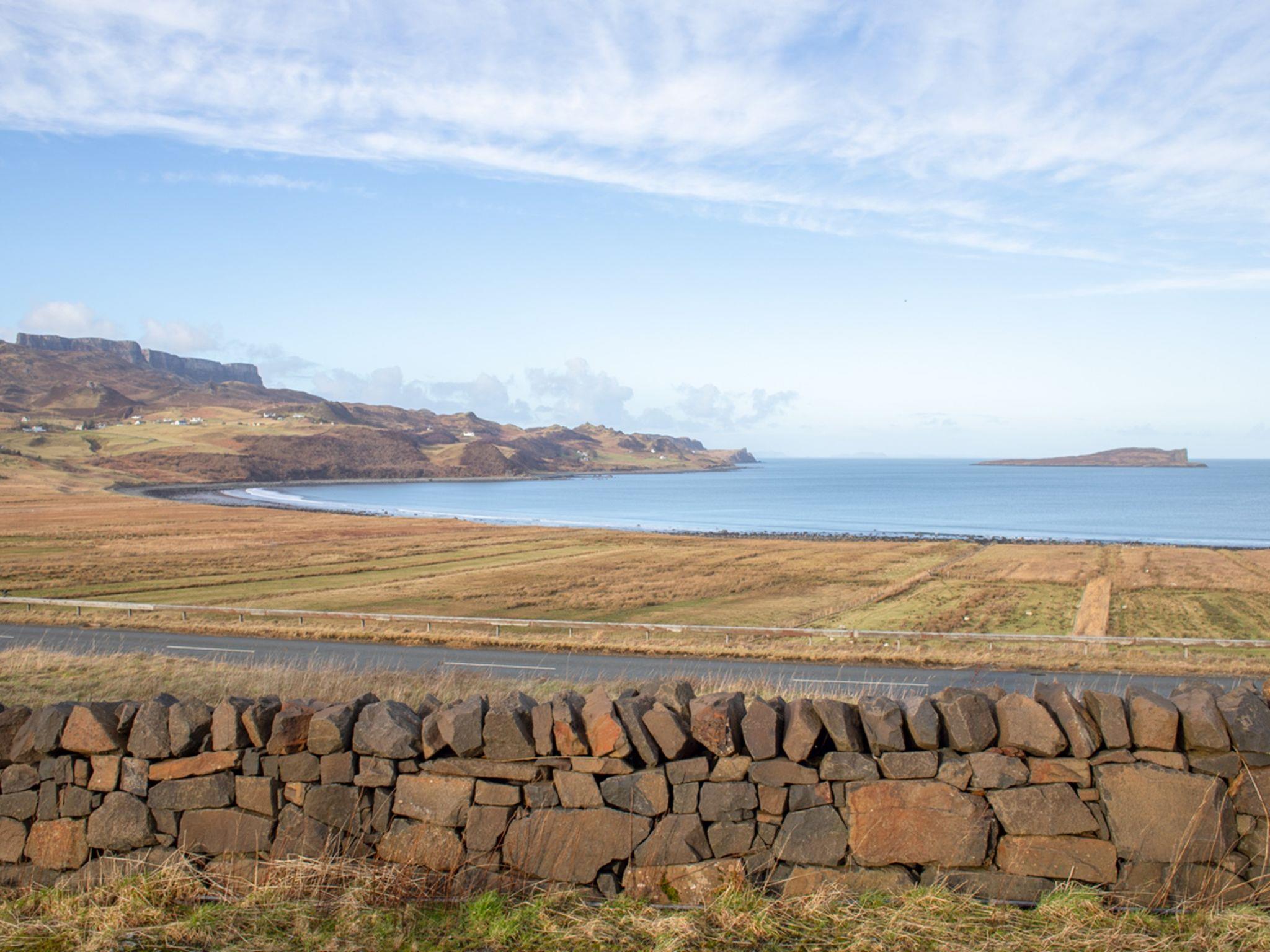 Very small, beautiful, cosy chalet "Solas Alainn Chalet". In the district Staffin, in a secluded, quiet position, 1 km from the sea. For shared use: terraced garden (fenced). In the house: internet access, WiFi, central heating system, laundry, washing machine. Parking. Shop 1 km, grocery 1 km, supermarket 1 km, restaurant 1 km, bar 6 km, bus stop "junction" 5 km. Nearby attractions: Quirrang 5 km, Corran beach 2 km, Mealt Falls 5 km, The Old Man of Storr 18 km. Please note: car recommended. Baby equipment on request. Additional accommodations can be booked. Property ref. GB8826.352.1 is situated on the same property.