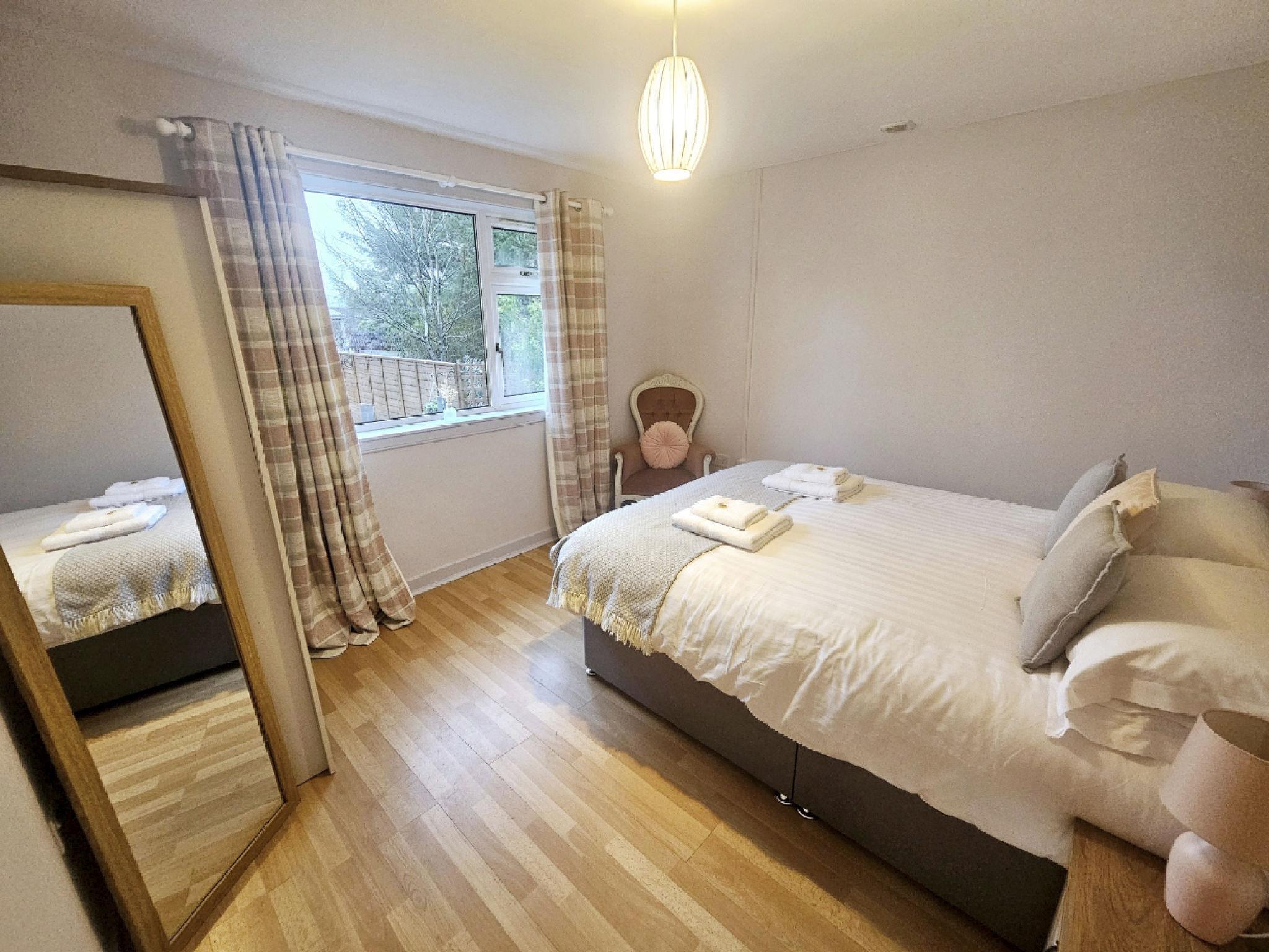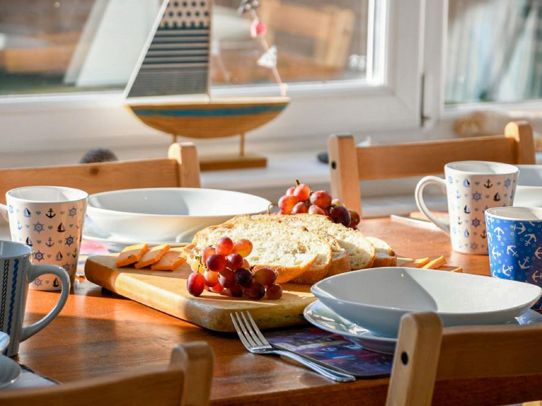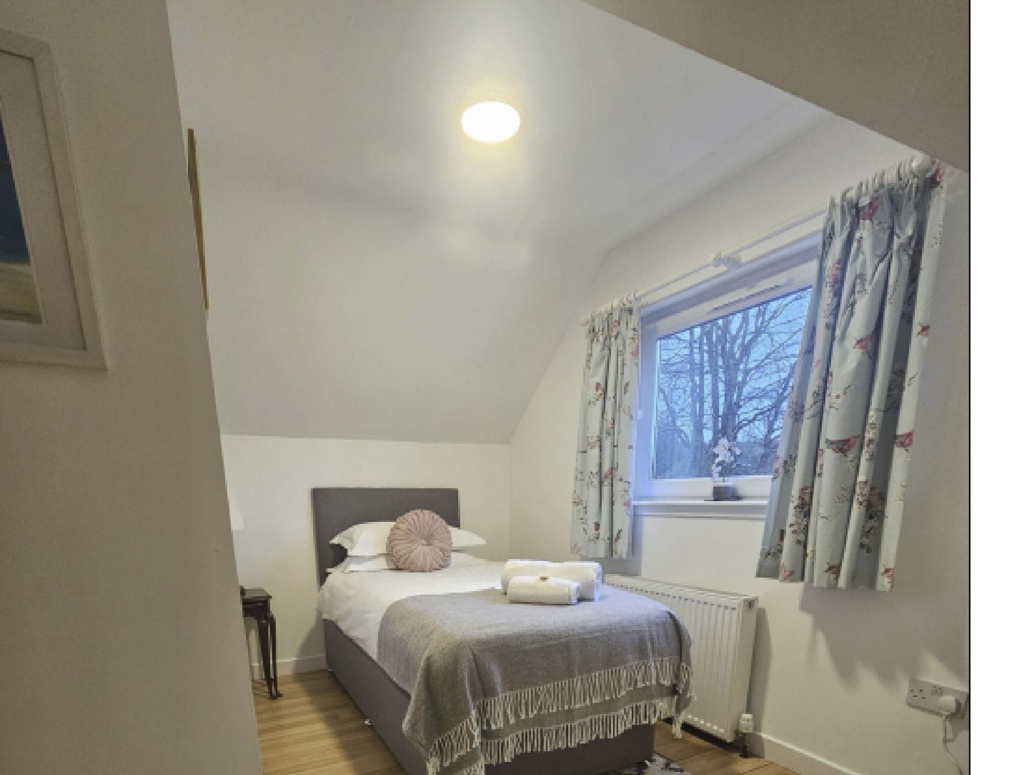 "Tigh na Sith", 6-room house 129 m2 on 2 levels. Modern and tasteful furnishings: living/dining room with dining table and TV (flat screen), wood-burning stove. Exit to the garden, to the terrace. 2 double bedrooms, each room with 1 double bed. 1 small room with 1 bed. Kitchen (4 hot plates, oven, dishwasher, microwave, freezer). Bath/shower/WC. Upper floor: 1 double bedroom with 1 double bed and shower/WC. 1 small room with 1 bed and bath/shower/WC. Heating. Large terrace. Terrace furniture, barbecue. Facilities: washing machine. Internet (WiFi, free). Parking at the house. Please note: suitable for families. Non-smoking house. Maximum 1 pet/ dog allowed. TV only EN. Independent Private Chef available to cater for Special Occasion.