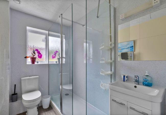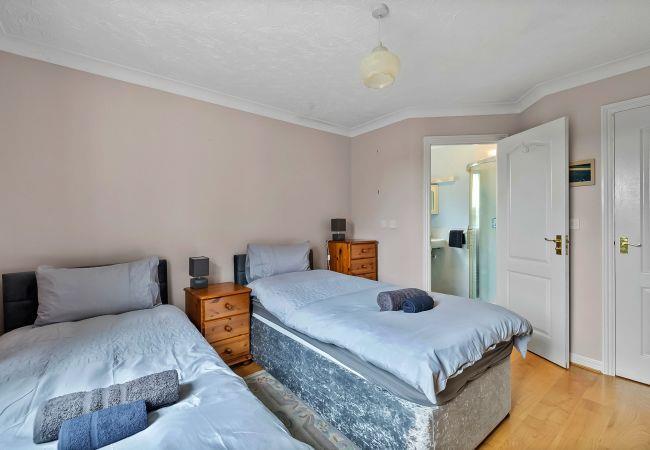 The property features two comfortable bedrooms: a double-sized master, and a bright twin room with a private en-suite bathroom. A second family bathroom provides added convenience for all guests.