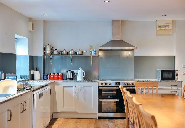 The expansive kitchen, dining, and living area is perfect for entertaining, with a large dining table that can accommodate up to 12 guests. You'll also find top-of-the-line appliances, including a fridge/freezer, two dishwashers, a cooker, and three ovens, to cater to all your culinary needs.