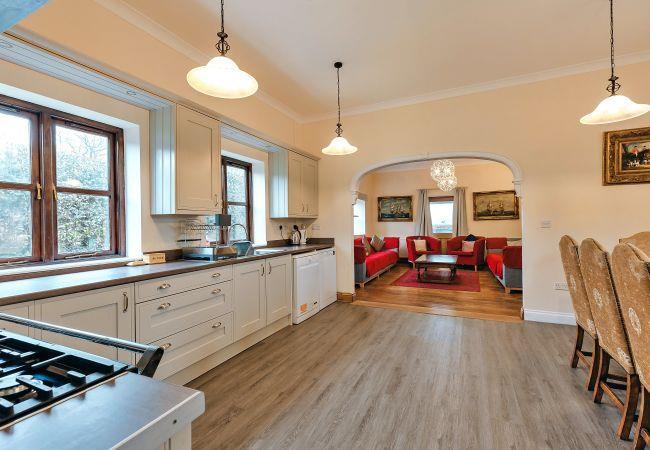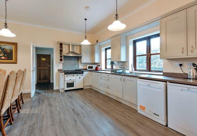 The heart of the home, the kitchen/diner, features two electric ovens, a gas hob, a microwave, a fridge/freezer, and two dishwashers, making it the ideal space for culinary enthusiasts to create memorable meals. For entertainment, there is a TV equipped with Sky, a DVD player, and seamless WiFi connectivity.