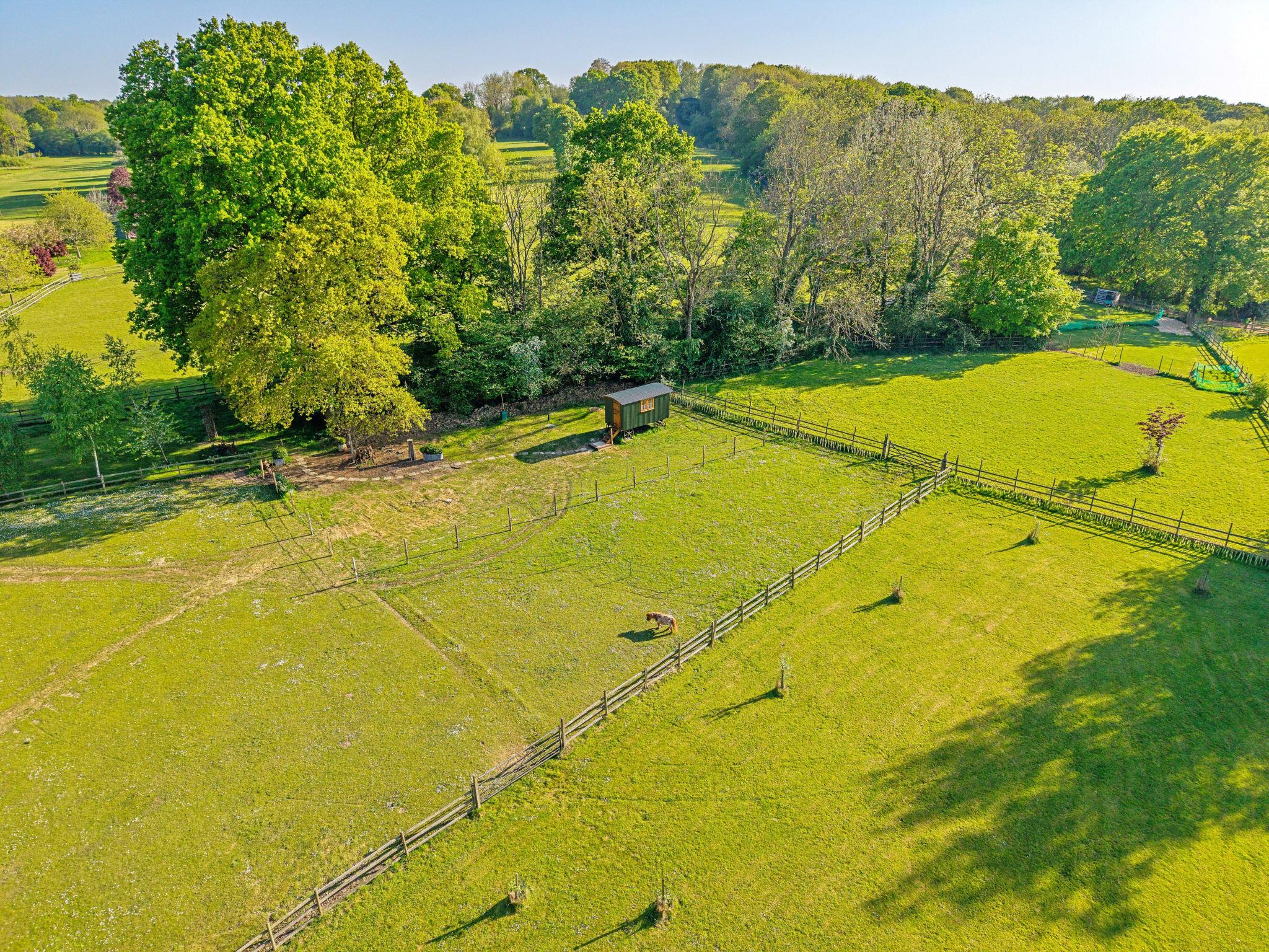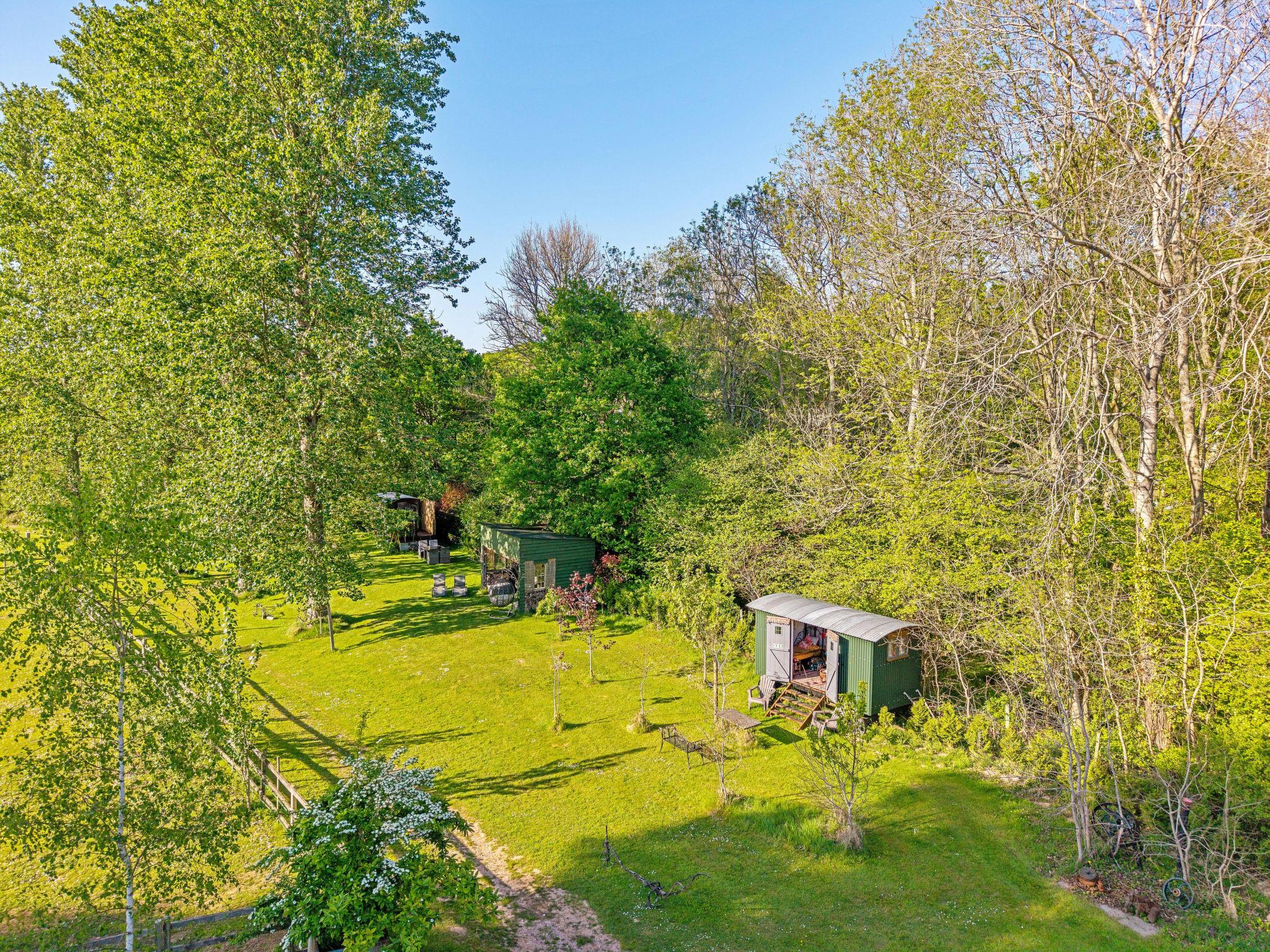 "Shepherd's Hut at Hilltop Farm", 3-room chalet 75 m2. Object suitable for 4 adults. Living room. 1 room with 1 double bed. 1 room with 1 double bed. Kitchen (kettle, microwave). Shower/WC. Parking (2 cars) at the house. Please note: non-smokers only. 1 pet/ dog allowed. Smoke alarm.