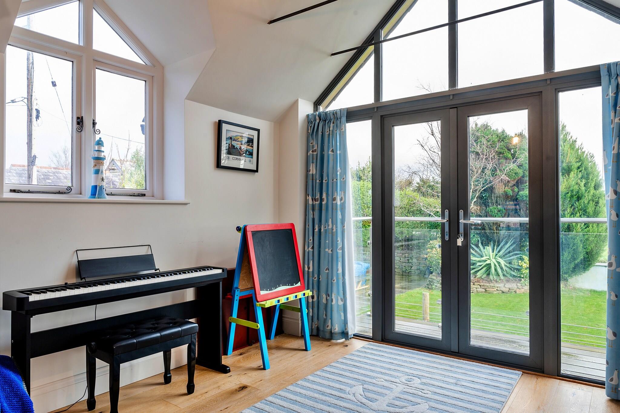 Dette charmerende familiehus i Cornwall tilbyder et perfekt tilflugtssted for både afslapning og eventyr, beliggende på den naturskønne Roseland-halvø, tæt på den maleriske by St Mawes. Ejendommen kan prale af vidstrakt havudsigt og rigelig plads til familier med et anneks spillelokale med bordtennis, dart, fitnessudstyr og et legerum for børn komplet med bøger, spil og en PlayStation. De voksne vil elske den rummelige stue på første sal, som omfatter et fuldt udstyret køkken, en stor spiseplads og en komfortabel lounge med en brændeovn, Smart TV og Wi-Fi. Sommerhuset har plads til op til 6 voksne og 2 børn, med fire stilfuldt indrettede soveværelser i stueetagen. Det store soveværelse byder på en overdådig super-king-size seng med en-suite bruseniche og toilet. Der er også to ekstra king-size soveværelser, et med eget brusebadeværelse og et sidste soveværelse med køjesenge, perfekt til yngre gæster Udenfor finder du masser af plads til at slappe af med en balkon med udsigt over baghaven sammen med et udendørs opholdsområde komplet med en bålplads, grill og et stort spisebord. Den maleriske kystlandsby St Mawes byder på en række udendørs aktiviteter, herunder gåture langs næsset, besøg på St Mawes Castle og færgeture til Falmouth og Trelissick Estate. Perfekt til familier, der søger en fredelig, men alligevel eventyrlig ferie, hytten inkluderer parkering til to køretøjer og er designet som et familievenligt tilflugtssted. Bemærk venligst, at kæledyr, polterabender og store arrangementer ikke er tilladt.