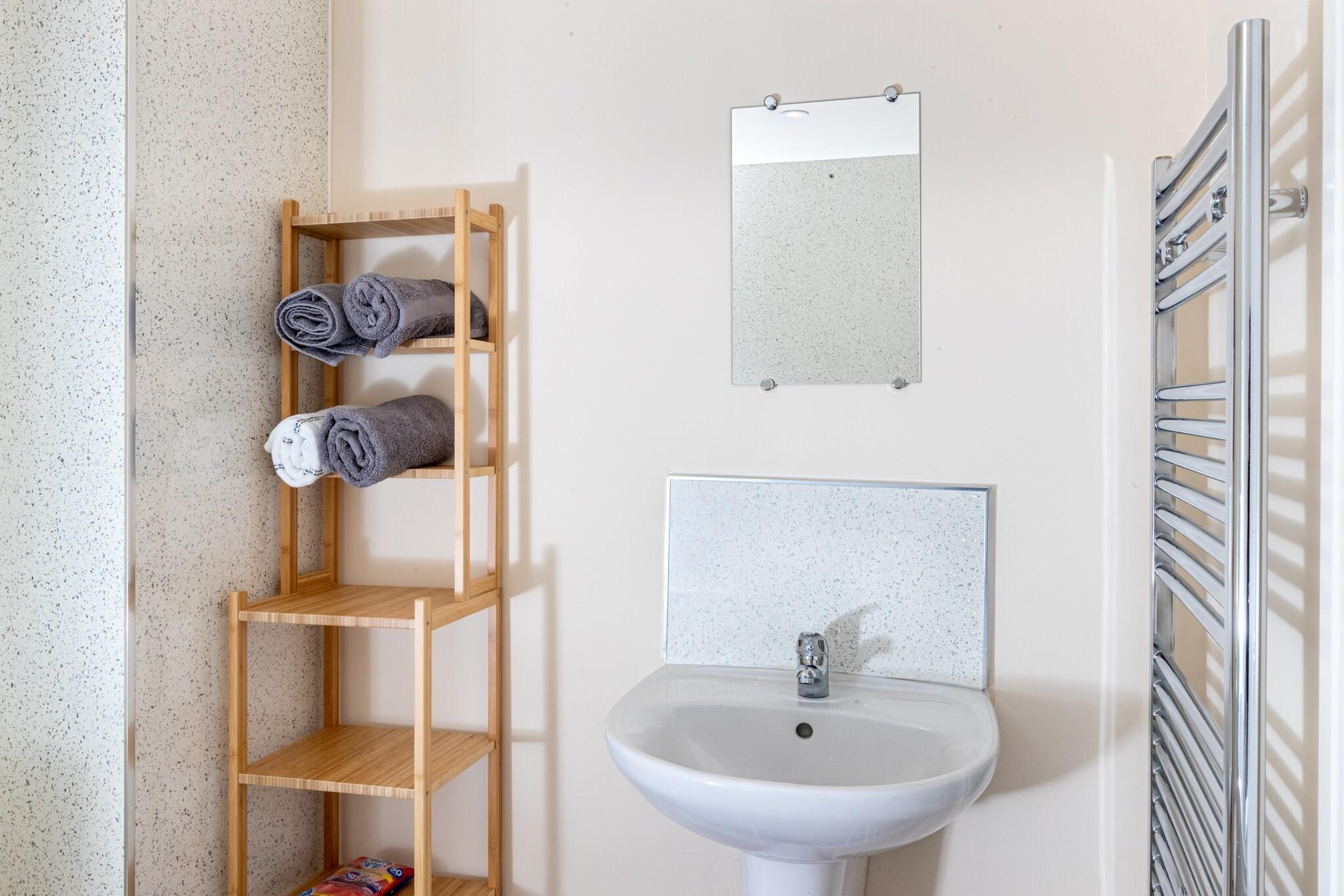 Denne lyse og indbydende to-værelses lejlighed tilbyder en vidunderlig tilflugtssted, beliggende på kanten af ??Leeds og Liverpool kanalen. Blot en kort afstand fra den charmerende by Skipton giver det den perfekte base for et fredeligt tilflugtssted, mens det er bekvemt tæt på lokale faciliteter. Med de fantastiske landskaber i Yorkshire Dales National Park i nærheden, kan gæster nemt fordybe sig i naturen og udforske alt, hvad denne smukke region har at tilbyde. Ved indgangen bliver gæsterne mødt af en rummelig stue, køkken og spiseplads i åbent plan, der udstråler en moderne og frisk stemning. Det indbydende opholdsrum har komfortable siddepladser parret med et fladskærms-tv og et hyggeligt sofabord, hvilket skaber en ideel ramme for afslapning efter en dag fyldt med eventyr. Det veludstyrede køkken kan prale af en række apparater, herunder en komplet ovn og kogeplader, køleskab, fryser, opvaskemaskine og mikroovn, hvilket sikrer, at tilberedningen af ??måltider er en leg. Et stilfuldt spisebord har plads til fire, mens en smart blå kommode tilføjer et markant fokuspunkt til rummet. De generøst store soveværelser er smukt klædt, hvor master tilbyder en hyggelig dobbeltseng, og det andet byder på to enkeltsenge i fuld størrelse, hvilket gør det velegnet til familier eller venner. Familiebadeværelset er udstyret med badekar og bruser, sammen med en stor håndvask og toilet. På varmere dage kan gæsterne nyde den private gårdhave ved kanalen, perfekt til at nippe til morgenkaffe, mens de ser bådene glide forbi. Med en tildelt parkeringsplads og de livlige faciliteter i Skipton kun en afslappet gåtur væk, herunder butikker, pubber og historiske attraktioner som Skipton Castle, sikrer denne lejlighed et mindeværdigt ophold både i komfort og bekvemmelighed. For dem, der er ivrige efter at udforske naturen, venter det betagende landskab i Yorkshire Dales kun en kort rejse nordpå.